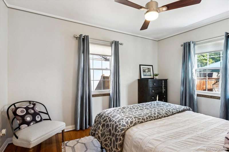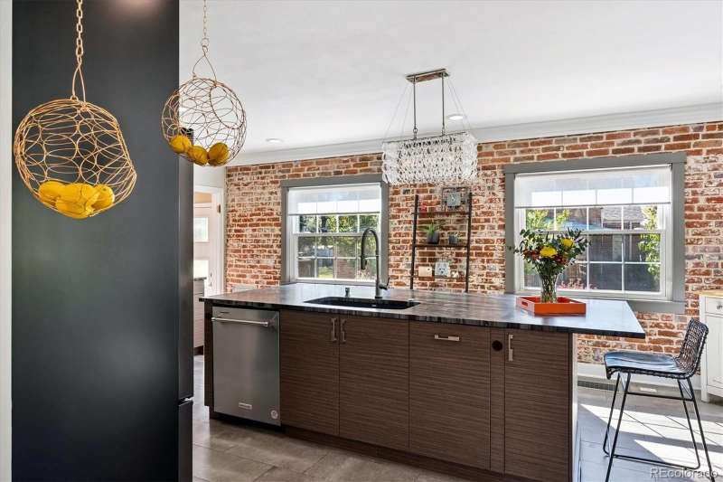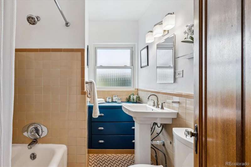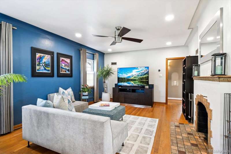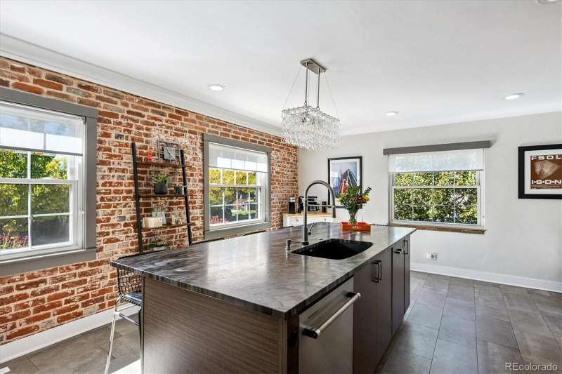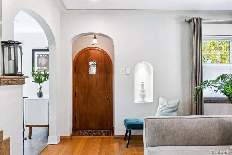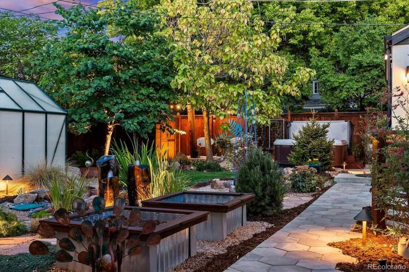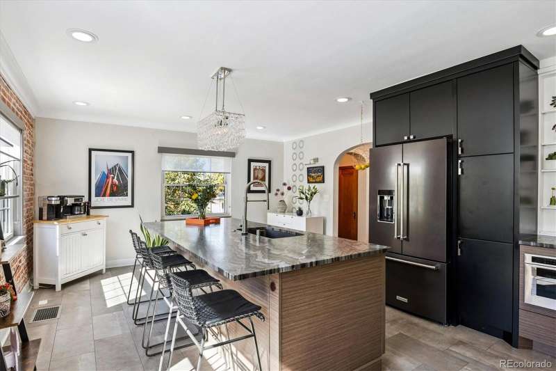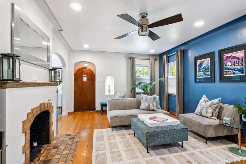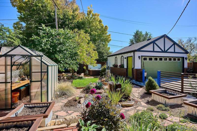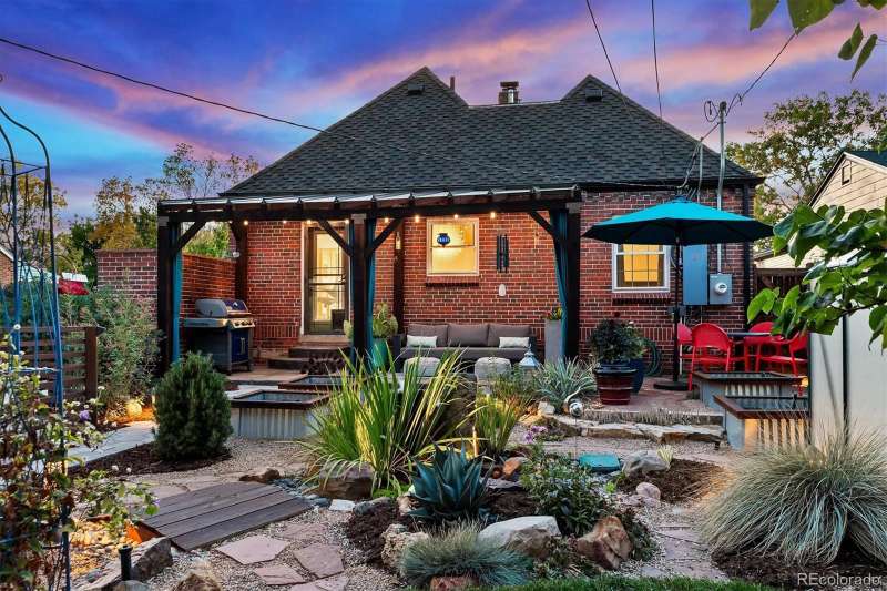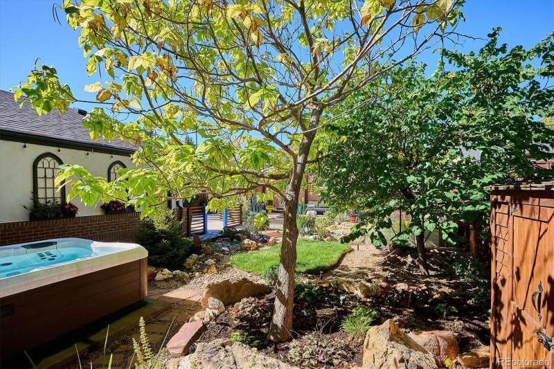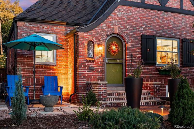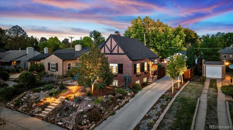 Timeless craftsmanship and modern sophistication define this beautifully restored 1938 Tudor in Denvers highly coveted Park Hill neighborhood. Set on a picturesque lot, this home offers a rare blend of historic charm and contemporary comfort. The newly designed kitchen is a showpiecehighlighted by exposed brick, spacious culinary marble island, custom cabinets, KitchenAid appliances and south facing windows filling the space with warmth and natural light. Vintage details including original doors and hardware, Batchelder tiled fireplace and window sills, arches and wood floors preserve the homes storied character. The expansive primary suite is a true retreat, featuring a spa-inspired bathroom with designer fixtures and 3 closets including a spacious walk-in. The main floor features two bedrooms and an original vintage bathroom that has been refreshed and adds an authentic touch of 1930s charm. Enjoy the Colorado outdoors year-round in the gorgeous serene yard, filled with mature low-water perennials, multiple patios, water features, hot tub and Volt-brand low voltage landscape lighting throughout. Updates include: newer windows with custom window coverings, new paint, new sewer line (including tap), new water line, newer oversized two car garage with an electric driveway gate and Certain Teed Presidential roof. Close to top-rated schools, neighborhood parks, and vibrant local amenitiesthis property embodies the grace and sophistication of Denvers finest historic homes.