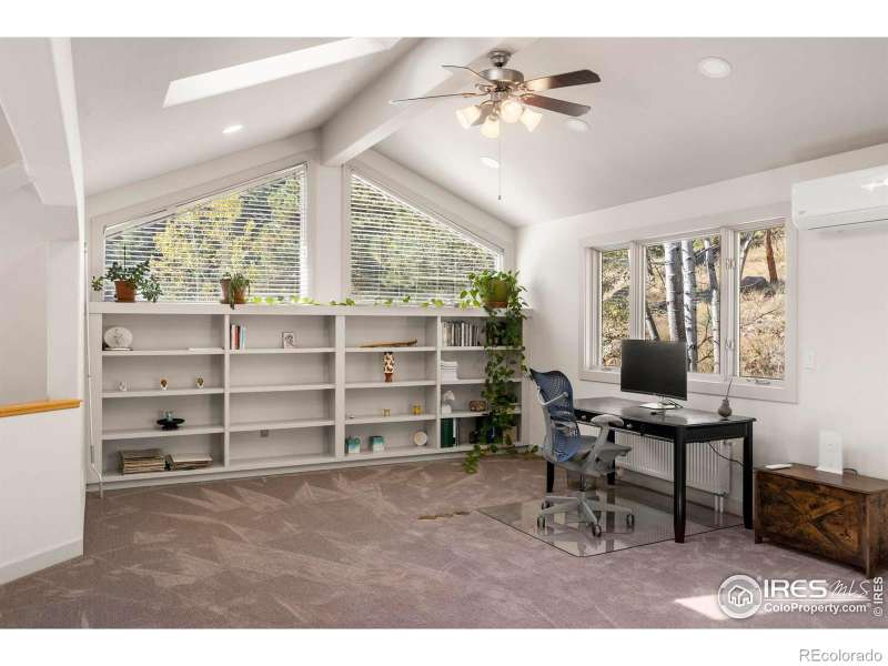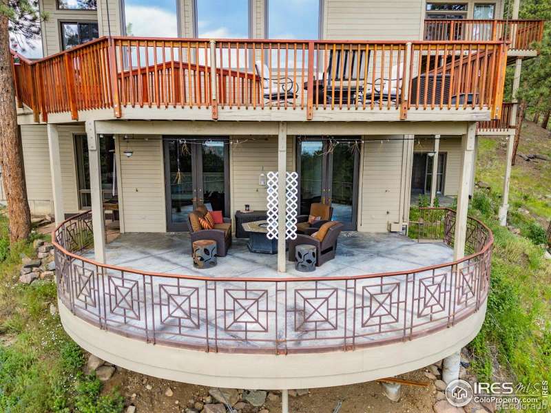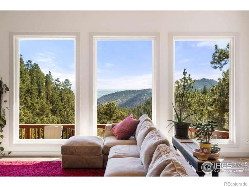 Exclusive Carriage Hills Estates retreat on 30+ pristine acres, just 5 miles from Boulder. This private sanctuary features panoramic mountain views, towering pines, and wind-protected positioning. Interior: 3 spacious bedrooms, lofted office, large gym/potential 4th bedroom, sauna, wine room, and expansive recreation space with floor-to-ceiling bookshelves. Three fireplaces (2 wood-burning, 1 gas) create warmth throughout. Recent Updates: New heating system, flooring, picture windows, remodeled bathrooms, stunning fireplace, fresh paint, backup generator, and refreshed landscaping. Outdoor Living: Soaring windows and multiple decks showcase unmatched views and flood the home with natural light. Listen to seasonal streams and spot wildlife from your deck.This isn't just a home-it's a mountain sanctuary blending modern comfort with timeless charm. Priced below appraisal!