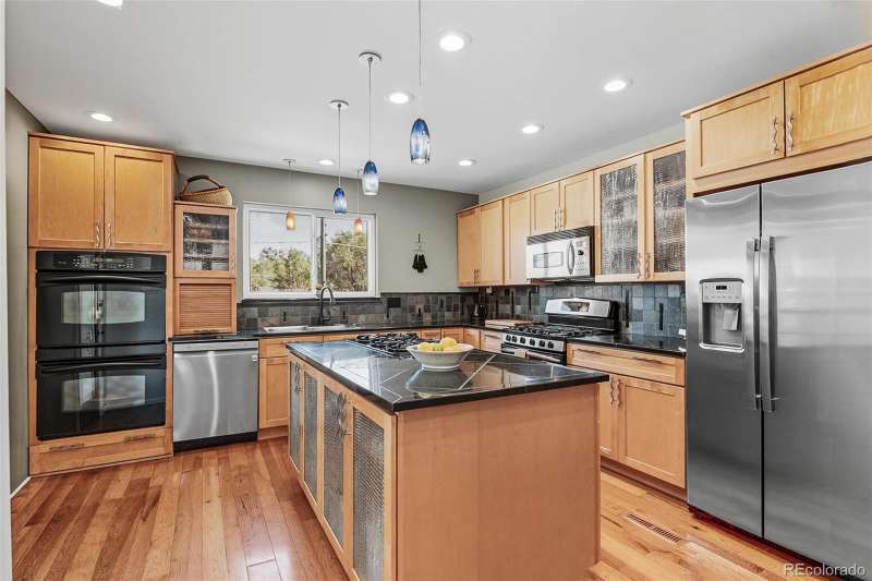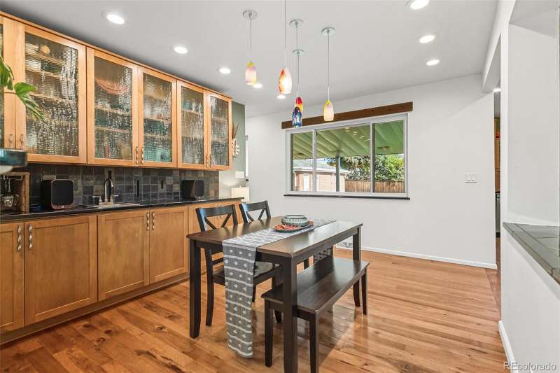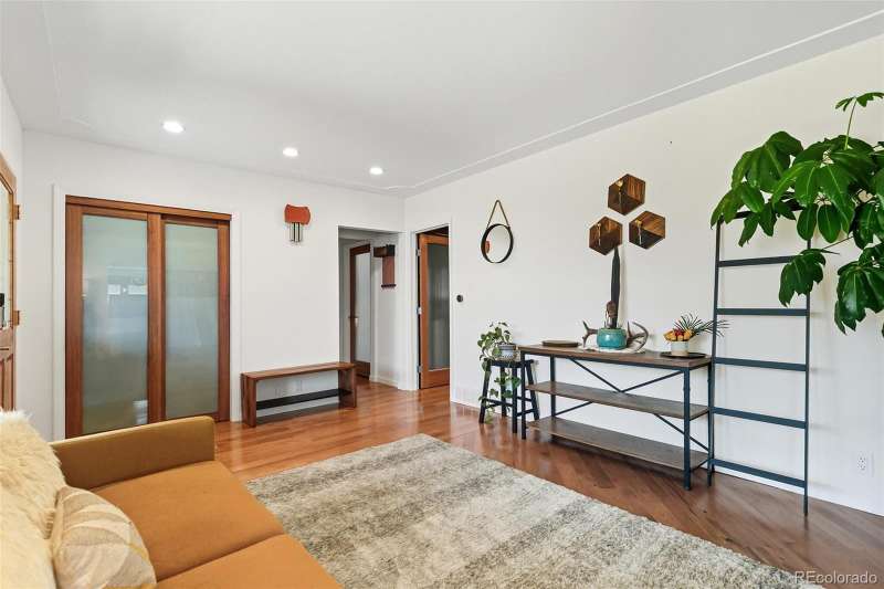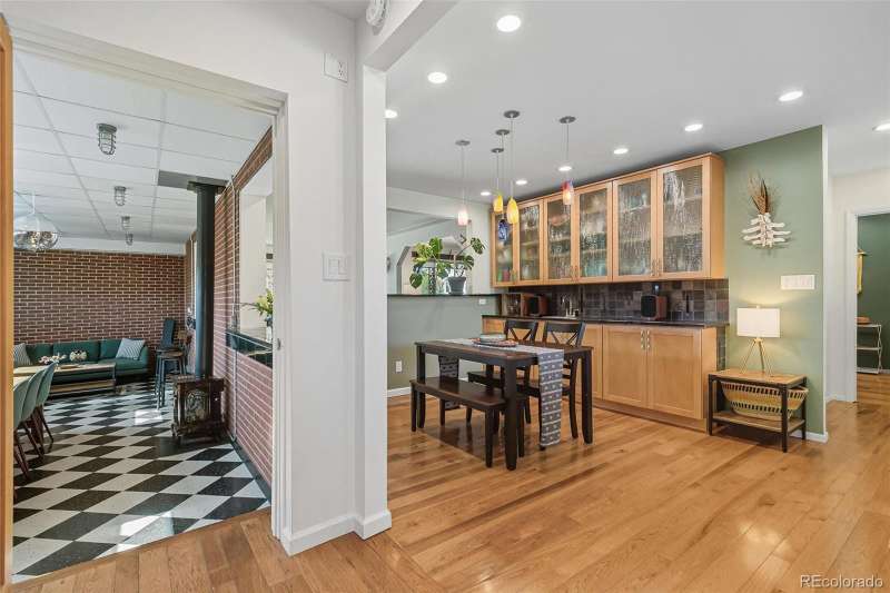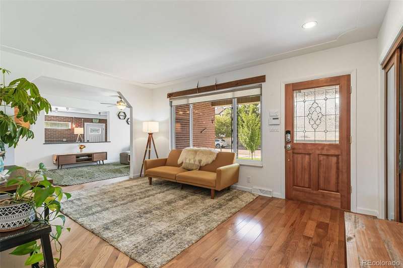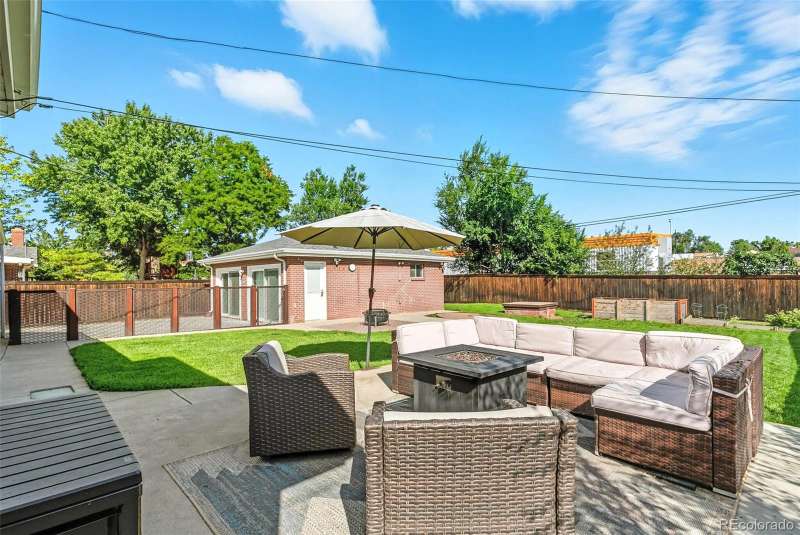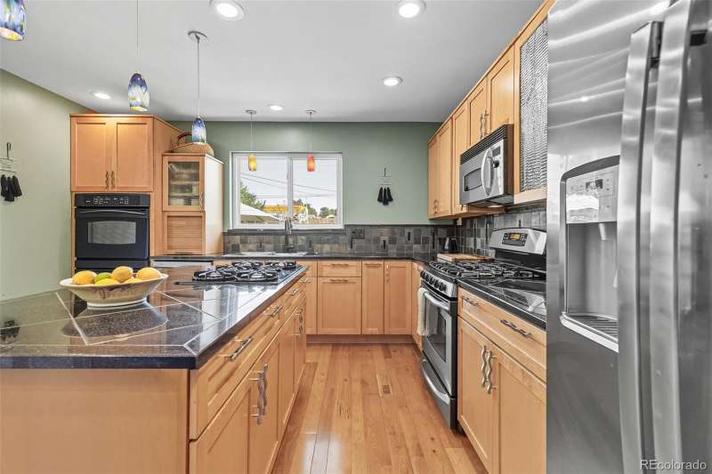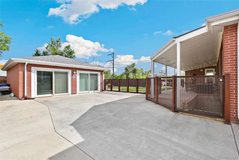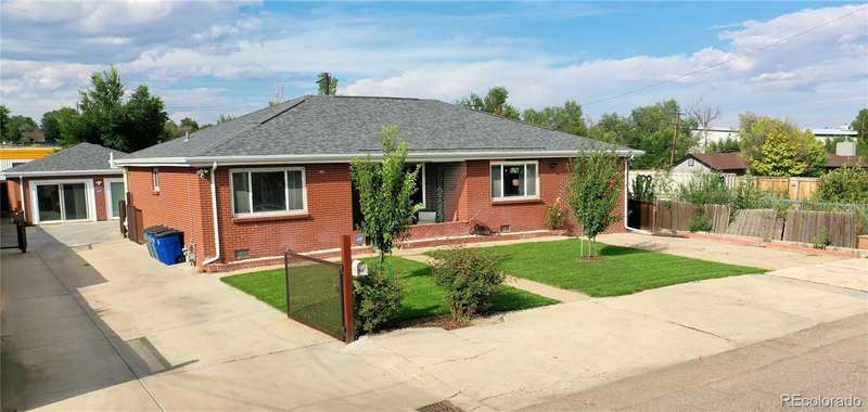 Beautifully Remodeled All-Brick Ranch in DenverThis brick ranch blends timeless character with modern upgrades. Discover newer hardwood floors and a thoughtfully designed kitchen thats an entertainers dream. The chef-inspired kitchen features recessed lighting, custom hand-blown pendant lights, a spacious island with gas cooktop, freestanding 30' range, separate double ovens, granite countertops, cozy eat-in area, and a stone-and-glass backsplash. A true commercial-style setup, its perfectly equipped to host family & friends.Adding to the entertaining appeal, just off the kitchen is a spectacular bonus room with exposed brick wallsan inviting space perfect for larger gatherings, dinner parties, or simply expanding your dining & hosting capabilities.The home offers 3 bedrooms, each with generous closets & custom shelving. Two feature ceiling fans with gorgeous custom glass doors, while the 3rd bedroom is currently styled as a home office. The main bath is a spa-like retreat with a freestanding tub, marble floors, marble wall tile, and a glass-tile shower. The 2nd bath includes an oversized European-style glass shower with a full-size washer and dryer.Enjoy Colorado living in the amazing fully fenced backyardideal for barbecues, gatherings, and play. The detached two-car garage is a standout, with detachable glass sliding doors, rolling steel vehicle doors, & additional space that includes a dry sauna & tanning bed.Smart-home features include extensive security & automation equipment, exterior Ring cameras & lighting, and Schlage remote keyless entry for the garage, basement, & exterior doorsall manageable from your phone add peace of mind.Perfectly located, this home is walking distance to the B-Line Westminster Station & G-Line Clear Creek Federal Station, with access to 3 local bike paths connecting to destinations across the metro area.An ideal location, a terrific neighborhoodthis fully remodeled brick ranch is a must-see.