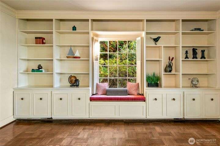 Evergreen Lakeshore Preserve. 3 wooded acres on Medina’s ultra-affluent Gold Coast: 215 ft Lk Washington waterfront, accessed by private hillside tram, with 70-ft dock; 1938 5170 SF main residence; various smaller outbuildings. Panoramic view of boat traffic, vivid sunsets, serene Olympic Mtns. Conservation easement prevents subdivision, protects fragile habitats, creates privacy and peace – minutes from energy and excitement of Bellevue tech, world-class restaurants and retail, fabled mansions of founders and magnates. Erect your dream compound! Provision for renovation/replacement of existing structures within original footprint; city zoning allows vertical expansion. Extensive documentation includes architect’s feasibility study.