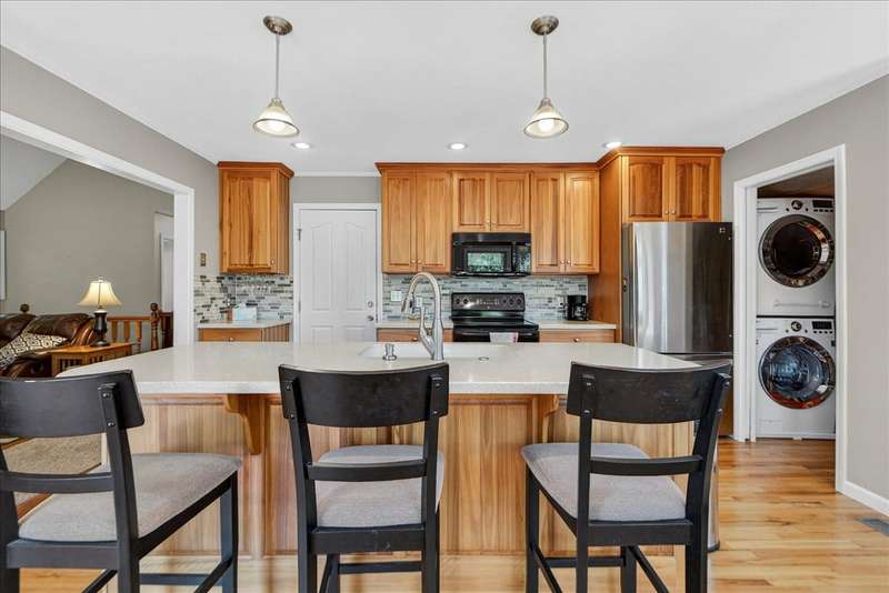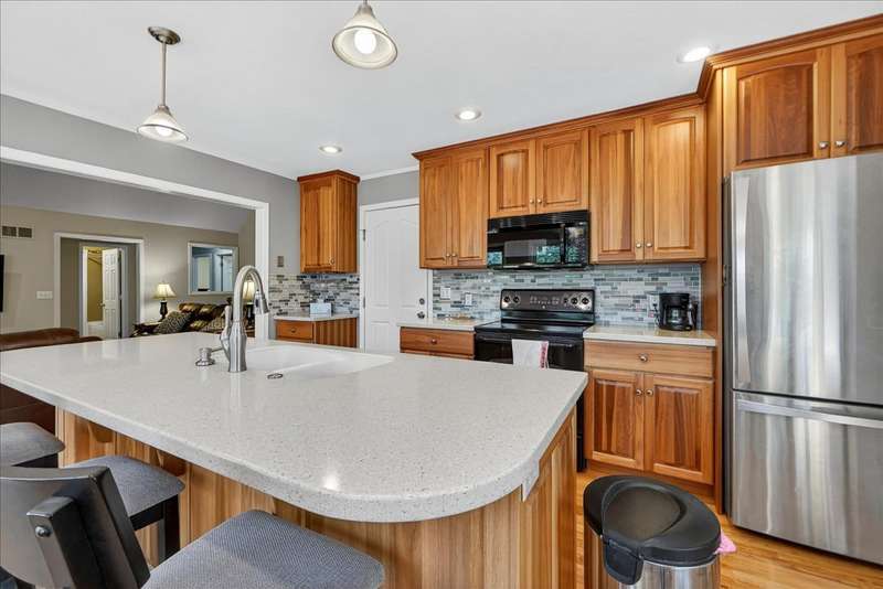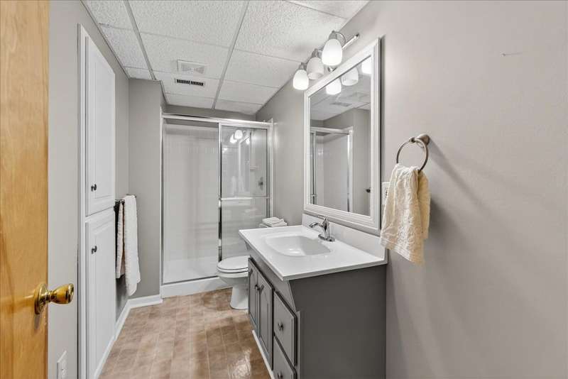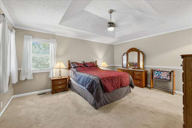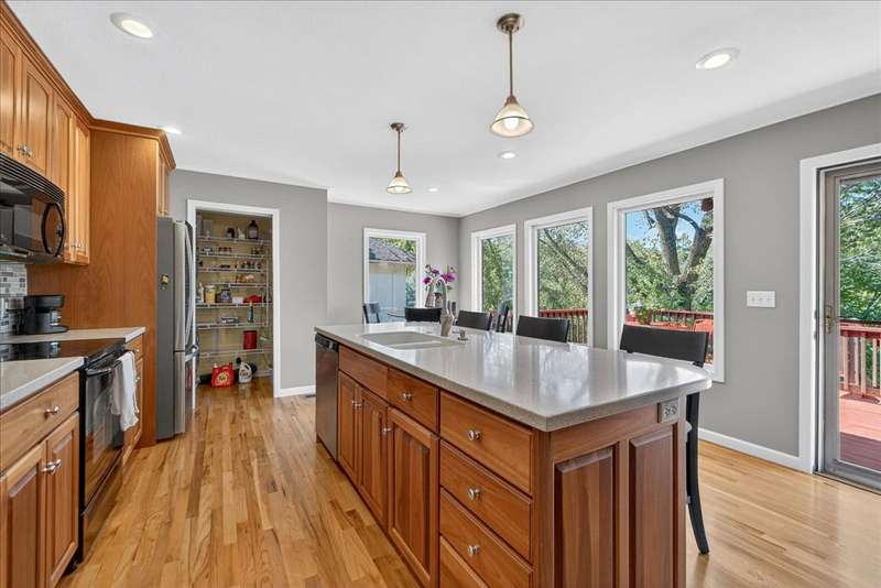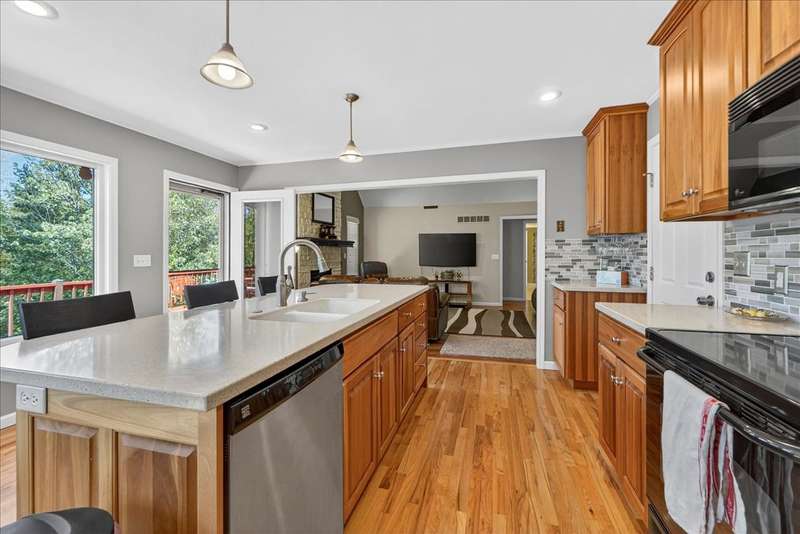 This Gorgeous Home is Nestled in the Desirable Lackman Park Sudiv on a Level Wooded Lot. Lovely Vaulted Great Room with Clean Gas Log FP. Kitchen/Dining area Boasts Sharp Custom Cabinetry with a Wall of Windows that let's in Tons of Natural Light! The Great Room walks out onto the recently re-finished Deck which offers privacy as it backs to the Woods. Just beautiful! The Primary Bedroom is on the main level and has coffered ceiling with ensuite Master Bath! One of the Secondary Bedrooms is being used as an Office. Beautifully finished Walk-Out Lower Level eads you to a patio with Putting Green and Fire Pit! Great extra space for entertaining Family & Friends. Newer Roof, Garage Doors, Furnace & A/C 3 years. Meticulously Maintained Hiking Trail & More! Move In Ready!