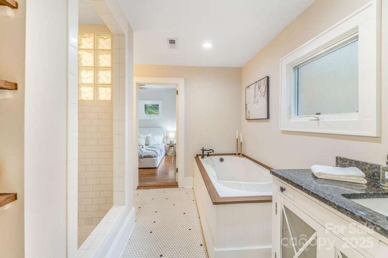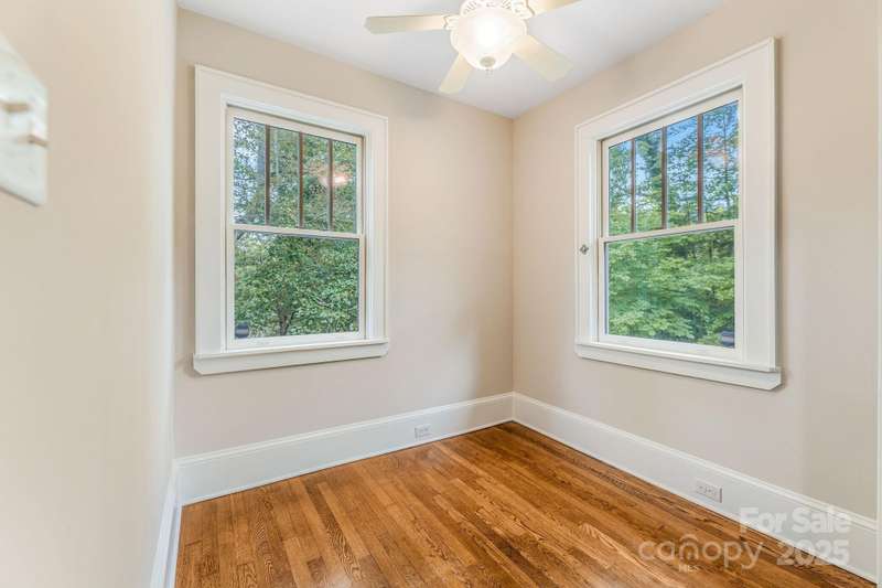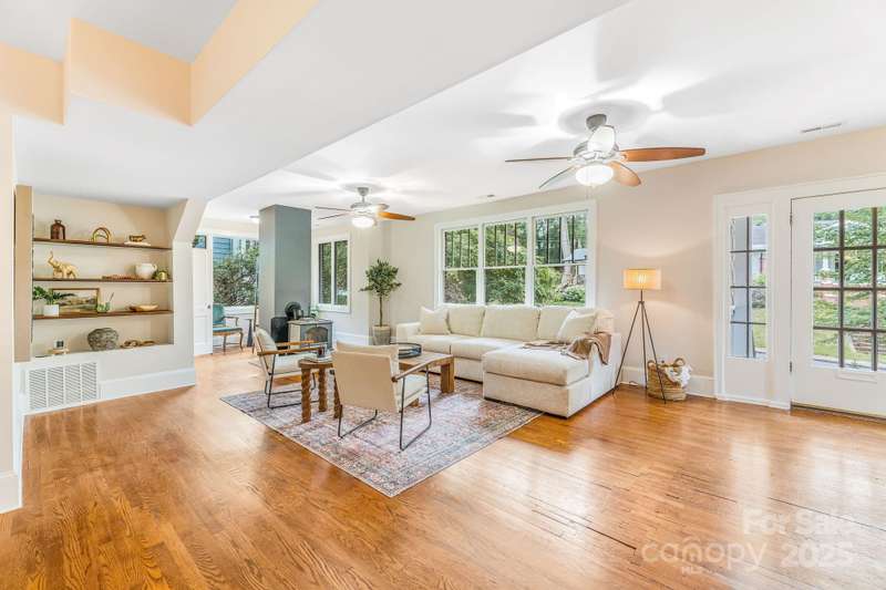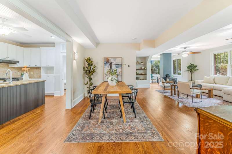 Located in Asheville's historic Kenilworth neighborhood, this corner-lot home offers classic design, thoughtful updates, and an abundance of natural light. The grand, open main level features a seamless flow between living, dining, and kitchen spaces, plus a well-appointed primary suite for comfortable main-level living. A welcoming front porch overlooks the neighborhood, while a covered back patio offers a quiet spot to unwind. Upstairs you'll find three bedrooms, a full bath, and a full laundry for added convenience. The fenced backyard provides space to relax or play, and the spotless basement-with its own ventilation system-offers clean, usable space ideal for a workshop or storage. Fresh interior and exterior paint along with brand-new 2025 appliances bring a clean, modern touch to this classic home. All just minutes from Kenilworth Park, Mission Hospital, Biltmore Village, and downtown Asheville.