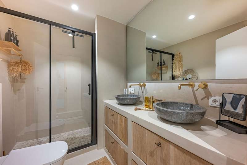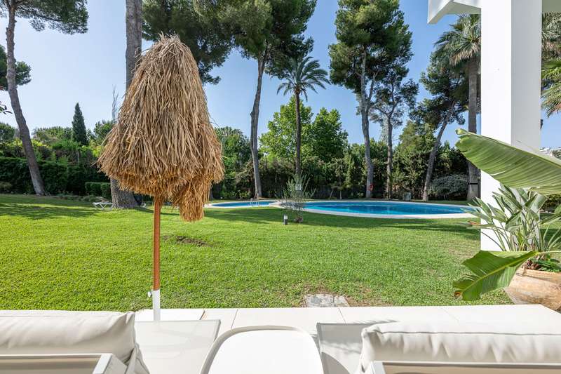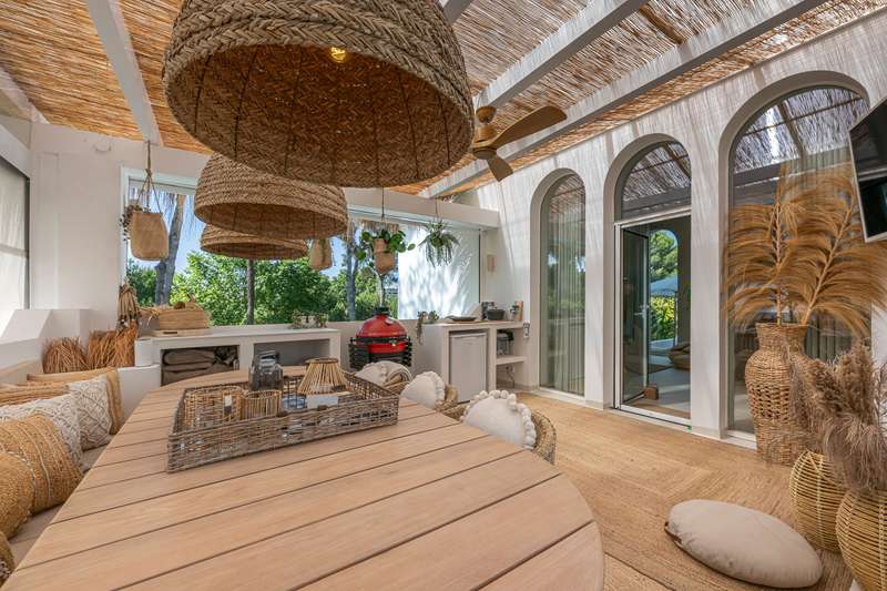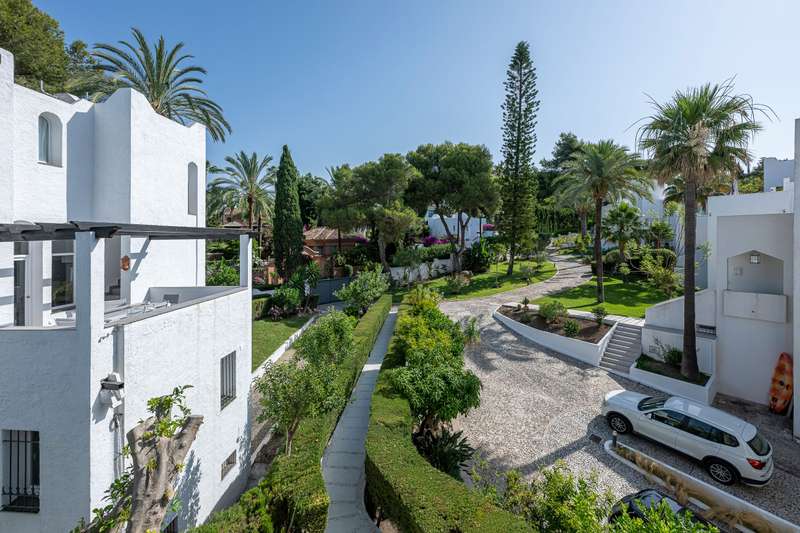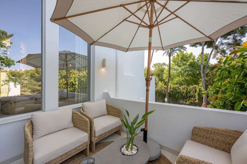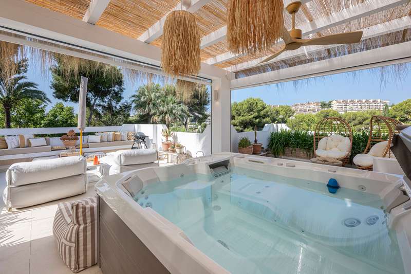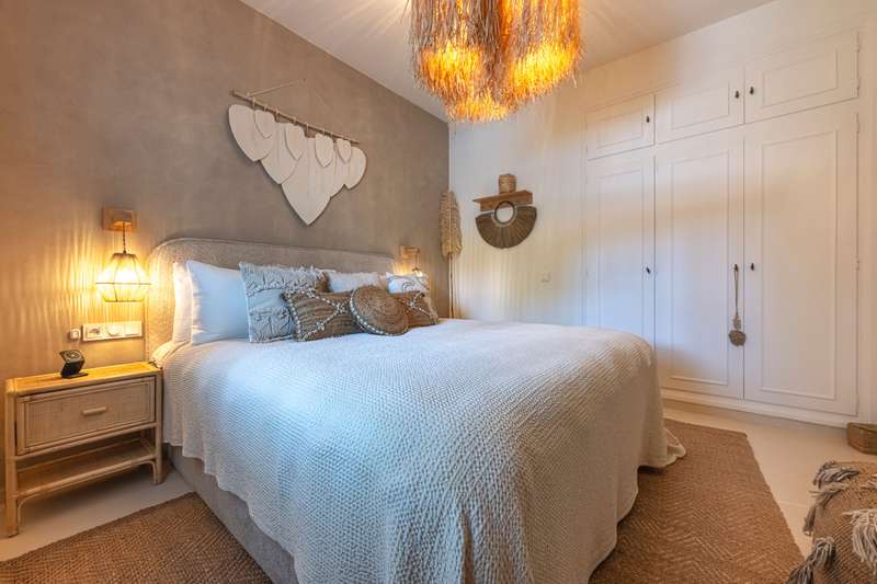 Step into refined Mediterranean living with this stunning four-bedroom townhouse nestled in the exclusive urbanisation of Atalaya de Río Verde, by Puerto Banus. This beautifully renovated home offers 174 m² of sophisticated interior space complemented by a generous 103 m² terrace, perfectly blending indoor comfort with outdoor elegance. Located just minutes from the vibrant Puerto Banús, residents enjoy a tranquil and secure environment while being effortlessly close to golden beaches, gourmet dining, high-end shopping, and the vibrant social life of the Costa del Sol. Golf enthusiasts will appreciate proximity to some of the region’s most prestigious courses, including Real Las Brisas, Aloha, and Los Naranjos. Recently refurbished in 2023, the home showcases a contemporary Mediterranean design with tasteful Boho Chic Ibiza influences. The interior features warm wood accents, sleek ceramic finishes, and luxurious details, creating an inviting and stylish ambiance. The spacious open-