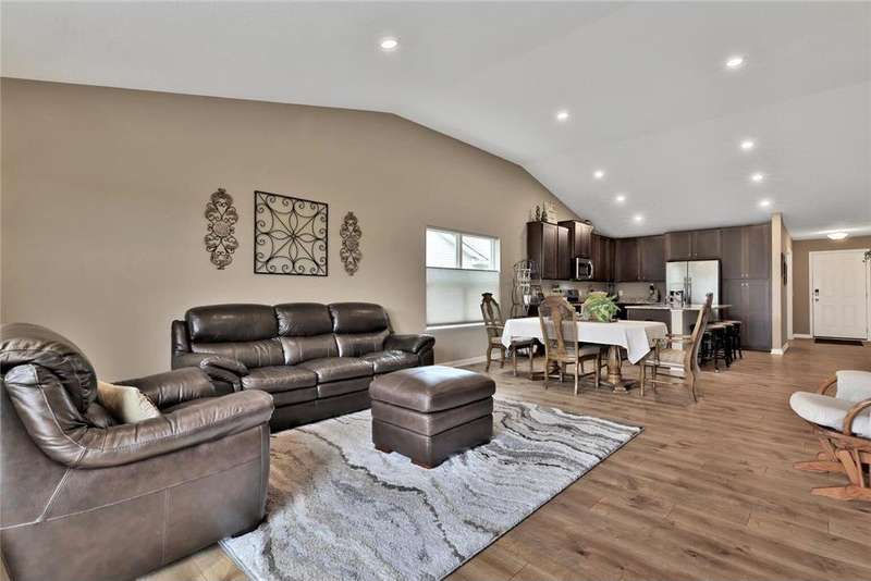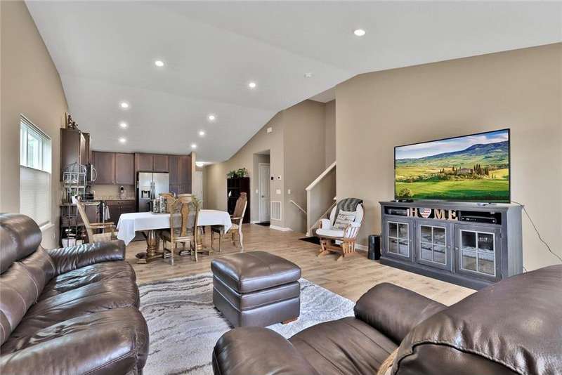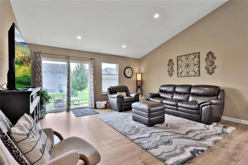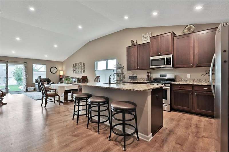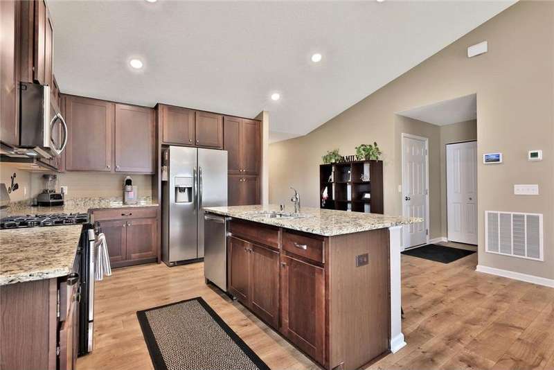Well-kept D. R. Horton Express Everett featuring a vaulted, open main level and an oversized kitchen with stainless appliances {including gas range and vented microwave), large island, and pantry . Upstairs offers 3 bedrooms and 2 baths including a private ensuite for the vaulted primary. The finished lower level adds a second family room, 4th bedroom, and full bath-ideal for guests, hobbies, or a home office. Outside, the sellers have added a fully fenced backyard and a poured concrete patio for easy outdoor living. Spacious 3 car garage plus in-ground sprinkler and shed for extra storage .