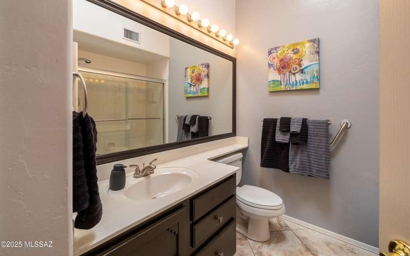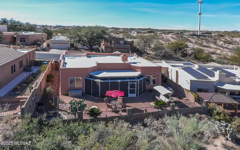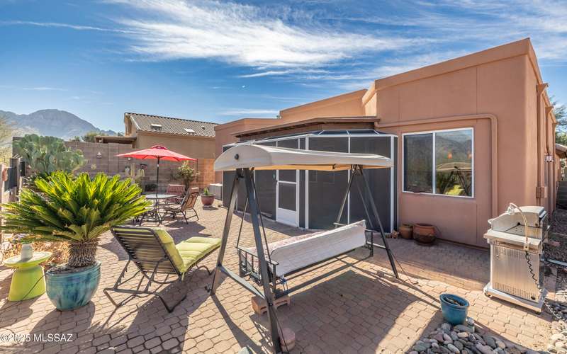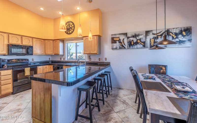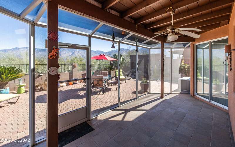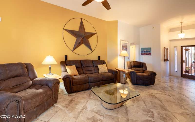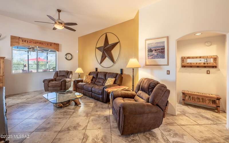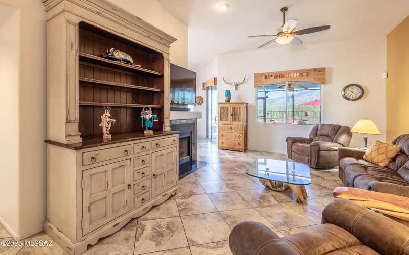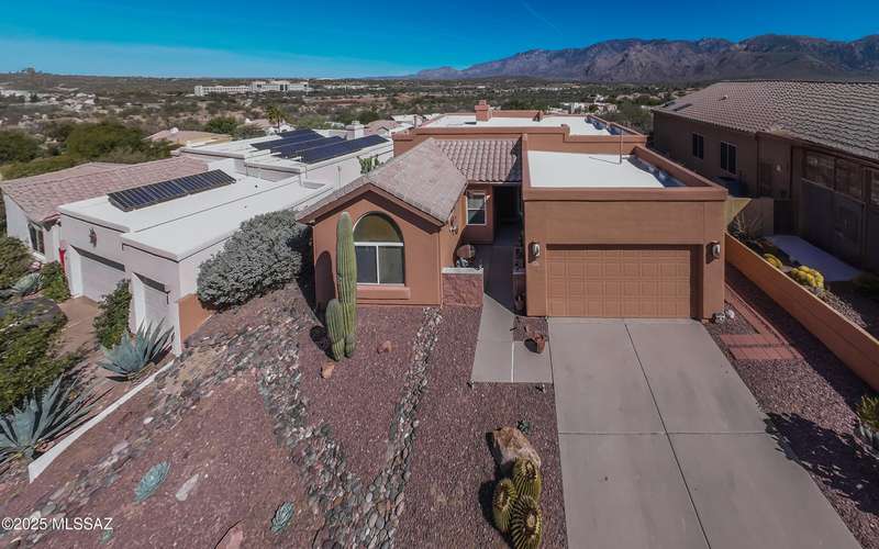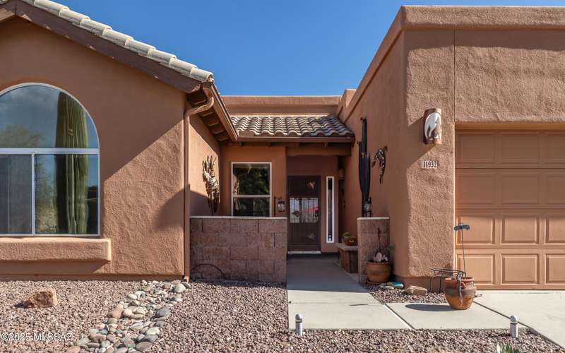 Welcome to this inviting 3-bedroom, 2-bath residence in Catalina Shadow Estates, thoughtfully positioned on an elevated lot to take full advantage of the surrounding landscape. From the moment you arrive, the home conveys a sense of care and comfort, with its private setting and unobstructed east-facing views of the Catalina Mountains. Inside, nearly 1,700 square feet of living space is arranged with a split floor plan that balances openness with privacy. Angled ceramic tile runs throughout the main areas, creating a natural flow from room to room. The oversized kitchen and dining area are centrally located, offering plenty of space for everyday meals as well as larger gatherings. The living areas are designed to feel connected yet distinct, with natural light enhancing the warmth