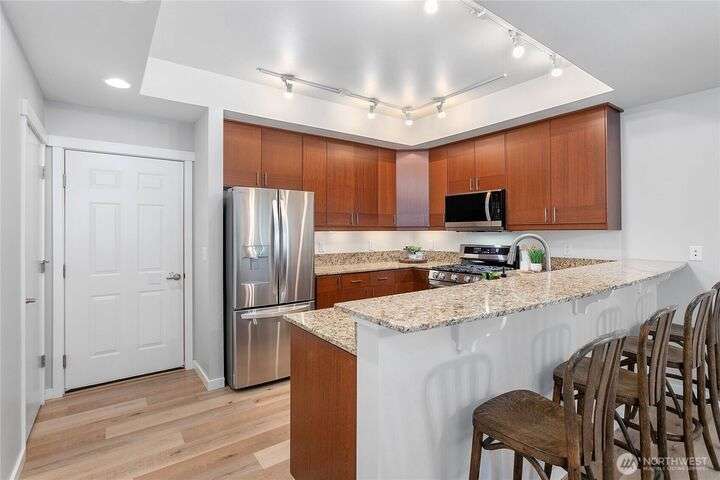 Bright and spacious 3 bed/2.5 bath townhome main floor condo in the peaceful Cordata neighborhood. Featuring open kitchen with granite counters, maple flooring, 9ft vaulted ceilings, large windows, coverd patio and a gas fireplace. Upstairs, enjoy a primary with ensuite, guest bath, and laundry. You'll be steps away from nearby trails, parks, medical and shopping at the new Trader Joe's, Costco & more. Must see in person!