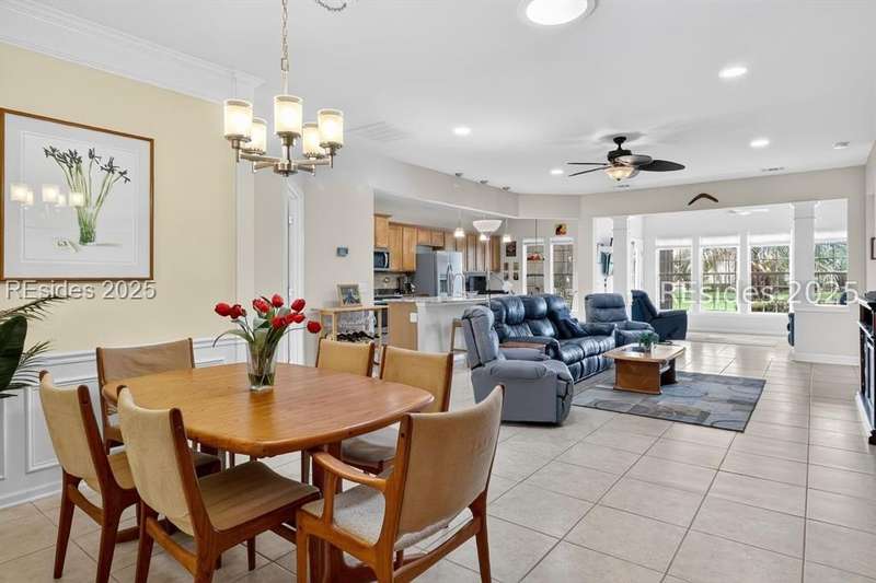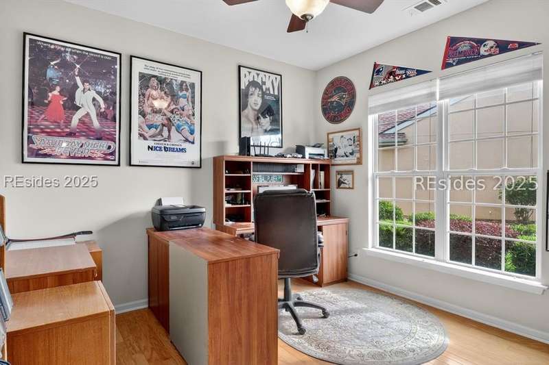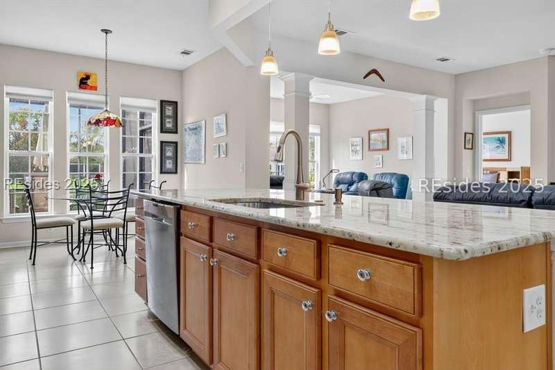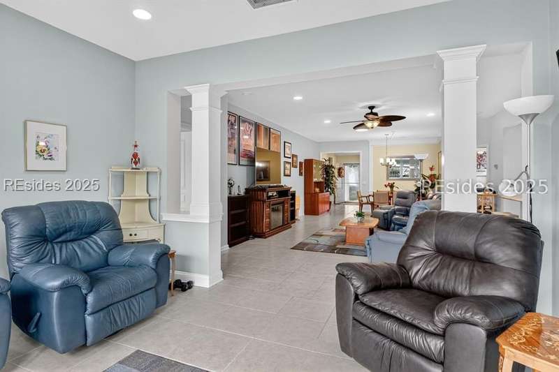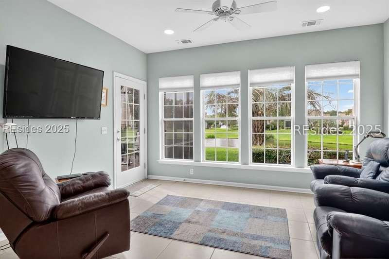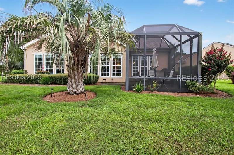 This beautifully cared-for Vernon Hill model in Sun City Hilton Head sits on a lovely cul-de-sac lot and offers exceptional value, peace of mind, and timeless upgrades throughout. This home stands out amongst other homes in Sun City because it offers NOT two, but THREE bedrooms PLUS an office and an inviting sunroom! Enjoy watching the wildlife on the lagoon from your spacious screen porch. This home is fabulous for entertaining with its open floor plan with an eat-in kitchen, large breakfast bar and additional dining area. There is ceramic tile in the entry, kitchen, family room, dining room, sunroom, and bathrooms. Hardwood floors in all other areas. Recessed lighting and ceiling fans throughout the home. Newer granite countertops in kitchen and both bathrooms. Updated Appliances (many under warranty). With major systems updated and high-quality finishes inside and out, this is a move-in ready opportunity not to be missed. The roof was replaced with Owens Corning Architectural Shingles (6/18/20) with transferable warranty. Full stucco replacement completed (12/15/21) with warranty. Anderson storm door installed in June 2017. Garage door opener (Chamberlain, 4/15/19) and new springs (5/5/25). Central vacuum system brand new unit installed January 2025. Energy-Efficient Comfort Systems: Trane HVAC system (installed March 2016): A/C: XV18 High-Efficiency 4.0 ton, Heat: XC80 High-Efficiency. Includes 10-year all parts warranty and 12-year compressor warranty. Marathon 80-gallon hot water heater (January 2015). Three solar tubes to enhance natural lighting. You don't want to miss this one! This home is a true gem! Just move in and start enjoying the fun and active Sun City Life Style!