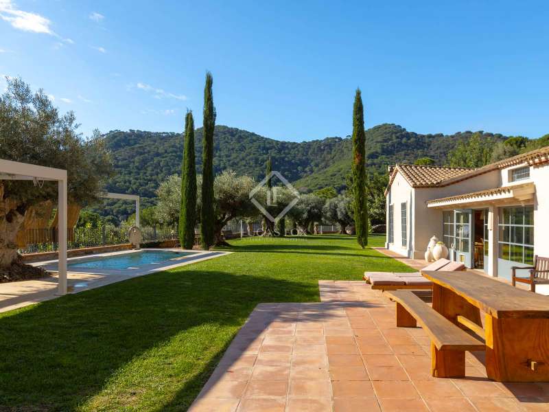 Set in the exclusive surroundings of Cabrera de Mar, this impressive villa offers an unparalleled lifestyle on the Maresme coast. With an expansive 5,400 m² garden and breathtaking panoramic views of the sea, mountains, and city, this property is a true sanctuary of luxury, combining comfort, privacy, and elegance. The main residence features a spacious, light-filled layout, including a refined living room with a fireplace opening to scenic views, a formal dining room, and a fully equipped kitchen with a cosy breakfast area. The sleeping quarters comprise a sophisticated main suite with a dressing room and full bathroom, three additional double bedrooms, a single bedroom, and a dedicated office, ideal for remote work. Three additional bathrooms and a laundry room complete this level. Outdoors, the exquisite garden offers top-tier amenities, including two swimming pools, one heated, a gym, paddle-tennis court, basketball court, and a relaxing chill-out area surrounded by nature. The barbecue and outdoor kitchen area is perfect for entertaining in a luxurious, natural setting. With additional features such as air conditioning, alarm system, private garage, and storage spaces, this villa is fully equipped for a life of comfort and exclusivity. Its proximity to international schools and excellent transport links makes this property ideal for families who value both privacy and accessibility. Experience serenity and luxury in this unique Cabrera de Mar villa, where every detail has been carefully designed to offer an incomparable living experience in one of the most desirable destinations on the Catalan coast.