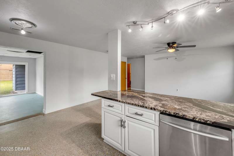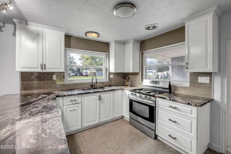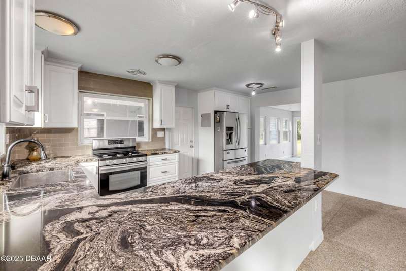 Welcome to 719 Jane, start your next chapter in this cozy 3-bedroom, 2-bath gem brimming with potential and charm. Perfectly positioned in a central location, you'll enjoy effortless access to schools, vibrant shopping districts, and a variety of dining options. Whether you're planning a sun-soaked afternoon on the Indian River or a relaxing day on the pristine Atlantic beaches, this home places you right in the heart of it all. Crafted from durable and energy-efficient concrete block, the home offers peace of mind with a newer roof overhead and fresh carpeting in the bedrooms. Stainless appliances in the easy to work in kitchen complement the recently updated cabinets and modern tile and granite countertops. The inviting living and dining room combo is anchored by timeless terrazzo flooring, creating a cozy and functional space for everyday living. Step outside to a fully fenced backyard with a gated entry, offering privacy and security. There's tons of room to add a garage or workshop, build a sparkling pool to create the ultimate outdoor retreat. Whether it's weekend cookouts, garden projects, or simply unwinding under the stars, this space is ready to make your vision a reality. Whether you're a first-time buyer, a seasoned investor, or looking to simplify and downsize, this property checks all the boxes. Priced to sell and full of promise, this home won't last long. Submit your offer today and make it yours before someone else does!