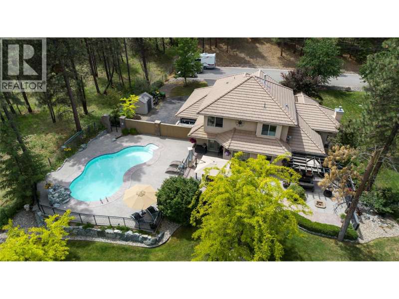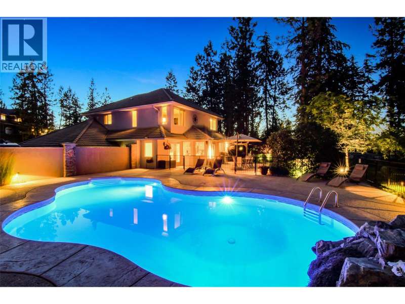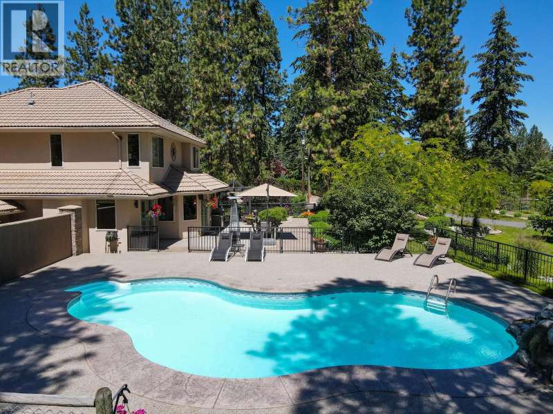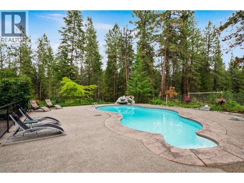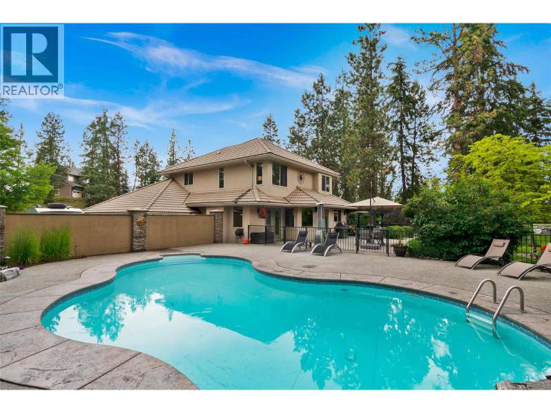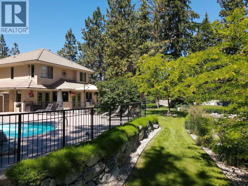 PRIVATE PARK-LIKE SETTING WITH POOL + LEGAL SUITE IN SOUTH EAST KELOWNA! Surrounded by nature on a 0.99-acre lot, this immaculate family home offers the perfect blend of indoor-outdoor living close to golf courses, wineries & recreation! Built for entertaining & ideal for families, the open floor plan includes 3 bedrooms upstairs, featuring a primary retreat with a 4-pc ensuite & walk-in closet. The main level has a spacious home office, a formal dining room, living room (high ceilings) & a cozy family room—both with gas fireplaces. The kitchen features a large island, SS appliances & a breakfast nook that opens up to a private back patio with a pergola, gas BBQ hookup, lounging spaces & ambient night lighting for magical evenings under the stars! Soak up the sun & enjoy the saltwater kidney-shaped pool with a waterfall feature overlooking your own private sanctuary with custom rock work & mature landscaping adjacent to ALR land! With infrastructure for an outdoor kitchen/change room, this property also offers RV parking & potential for a detached shop, complementing the massive 3-car garage + workshop area. Downstairs, a large rec room, storage area & legal 1-bedroom suite (over $100k in value!), is perfect for in-laws or rental income. Find peace & quiet in a secluded setting while being close to local amenities, golf courses, 2.9km to Elementary School. Fast Possession Possible! The Seller is downsizing, and may consider a smaller home on trade + cash difference. (id:7434)