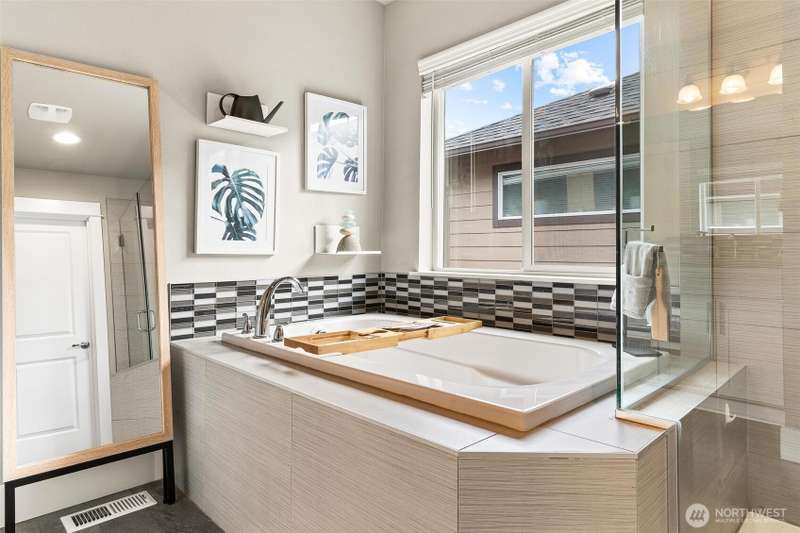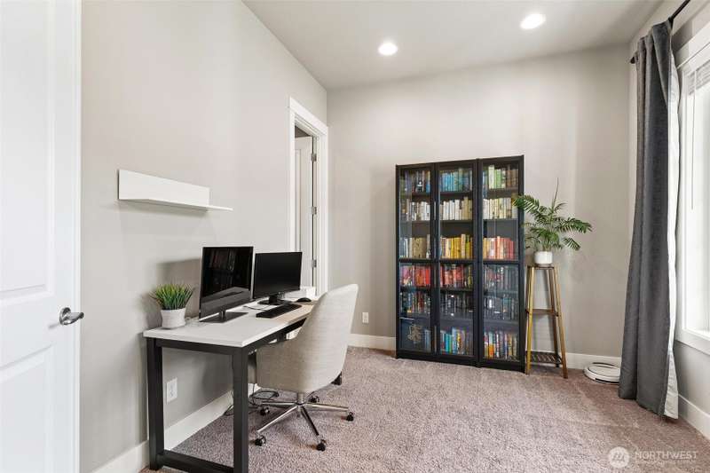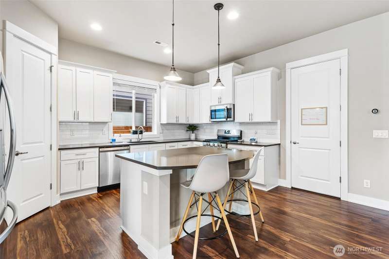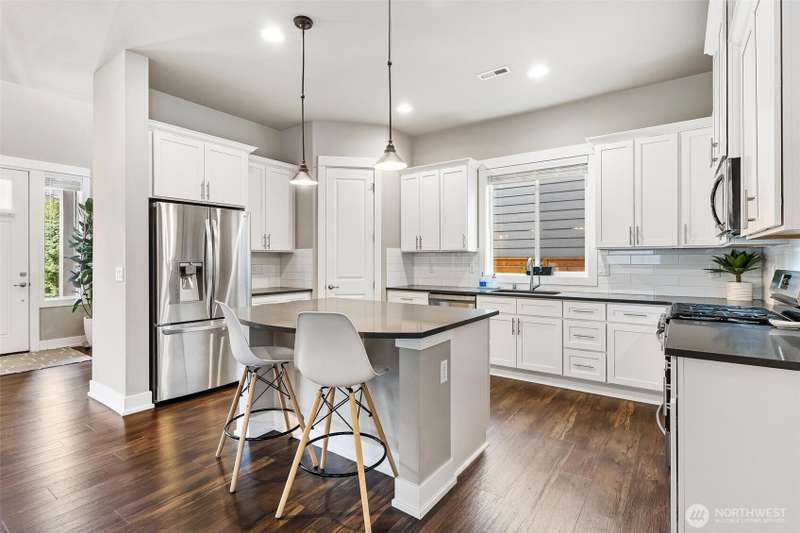 Welcome to Tehaleh, where modern living is surrounded by natural beauty. Hitting the resale market for the first time, this Azure Northwest Homes Barlow Point floor plan is a rare find. A soaring entry & grand foyer lead to bright, open-concept living w/ a spacious island kitchen, stainless steel appliances, and abundant natural light. A main-level den with closet offers flexible use, while upstairs the primary suite features a sleek ensuite and custom walk-in closet. Bedrooms are located near the utility room. Outside, relax on the covered patio overlooking the fully fenced, landscaped backyard. Complete with a two-car tandem garage and just moments from parks, trails, schools, shops, and sweeping mountain views, this home has it all.