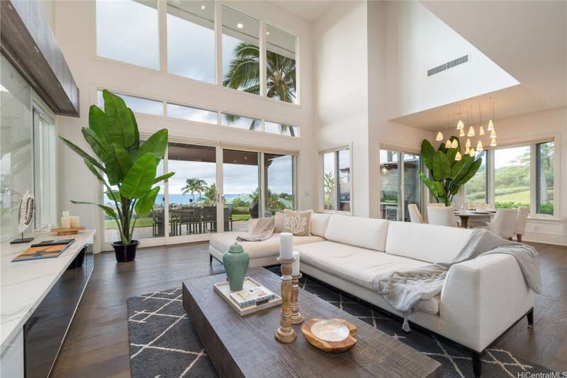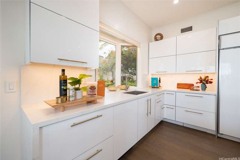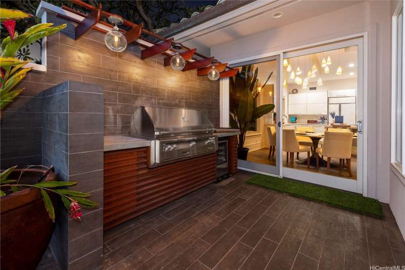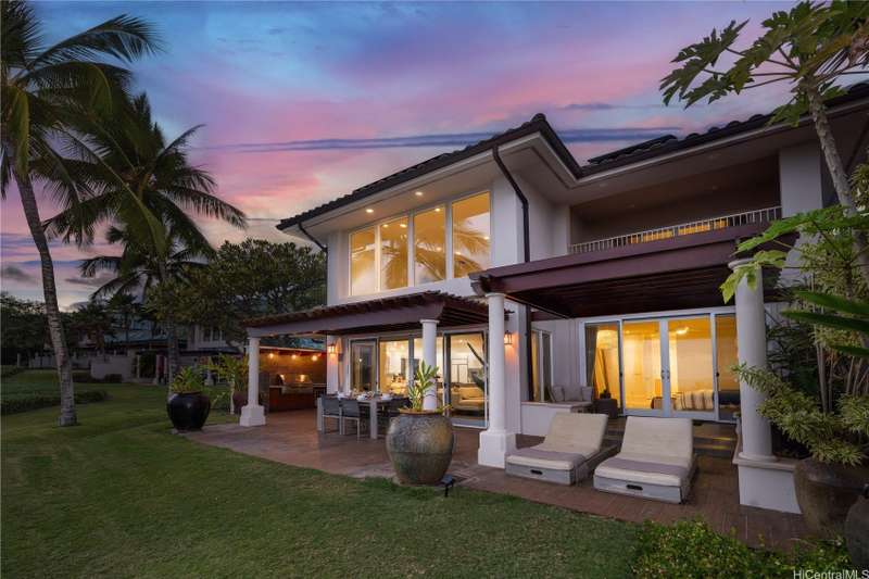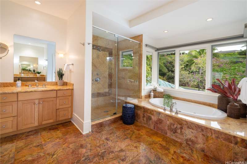 Located moments from the Four Seasons at Manele Bay this masterfully renovated 3-bed, 3.5-bath with 2-car garage offers elegance at its finest. Unique courtyard with water features, lush trees, plants and entertaining area. Expansive ceilings and abundant natural light throughout. High end appliances along with thoughtfully designed custom built-ins. Two distinct family areas-upstairs and down-with integrated TV spaces and a custom-built desk. Oversized closets maximize storage potential. Stunning metal handrails guide you to the Primary Suite upstairs, which boasts a private outdoor patio overlooking the ocean. Jacuzzi tub, glassed-in shower, and automatic bidet. Downstairs Primary suite provides additional private lanai, Jacuzzi tub, glassed-in shower, automatic bidet ,and access to an outdoor shower. The second downstairs bedroom features its own outdoor area and ensuite bathroom. Spacious outdoor lanai with built-in BBQ and smoker. Spectacular sunrises viewings and whale & dolphins sightings in the bay from private balconies and outdoor living spaces. Owned solar system. Island Club membership available for purchase granting access to the two Four Seasons Resorts