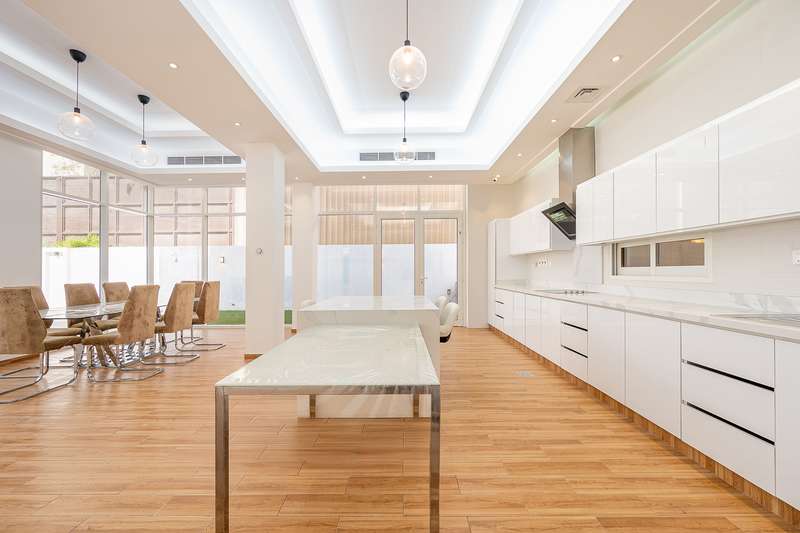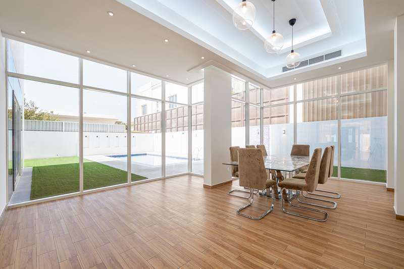 7 Bedrooms Modern Villa in Al Barsha 3. Features: Built up area 8000 Sq.Ft 2 Bedroom on the ground floor 4 Rooms on the first floor 1 Room on the roof floor Maids and Drivers rooms with bathroom Villa Description: Ground Floor Master room on the ground floor, with master bathroom (Can be converted to Majlis) Double-height hall on the ground with bathroom and beautiful view of the pool and garden Hall with an internal garden and a beautiful fountain on the ground floor with seating area Dining room with an internal kitchen, fully equipped (oven, microwave, electric cooker, dining table for six people with bar table for four people with hidden lighting Main kitchen (Outdoor) Laundry room for four large appliances Outdoor swimming pool, fully equipped with garden, fountain and beautiful landscape First Floor Four (4) spacious master bedrooms with dressing room Lounge overlooking the ground floor Pantry Area Roof Floor Bedroom/Study with Bathroom Villa Key Features: The villa is located in Al Barsha 3, in a quiet area, easy access to Sheikh Zayed, Hessa & Al Khail Road All curtains are motorized Central air conditioning (Carrier) CCTV surveillance system with mobile connection Smart entry system with code is available for the house House contains smart intercom system with cameras (on the ground, 1st floor & main kitchen, all connected) Central internet receiver system & booster for the entire villa Garage works with remote control & phone access Beautiful and distinctive night lighting Bathroom sets from Grohe The Villa is semi furnished Gym equipment on the first floor Indoor and outdoor parking spaces Company Name: Betterhomes LLC RERA ORN: 97 Address: Vision Tower, 42nd Floor Business Bay, Dubai Customer Care: +971600522233 Email: customercare@bhomes.com Website: www.bhomes.com
