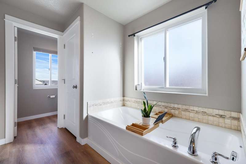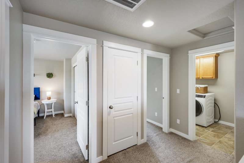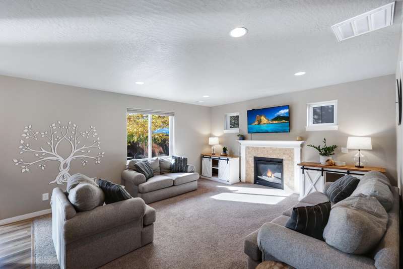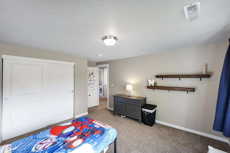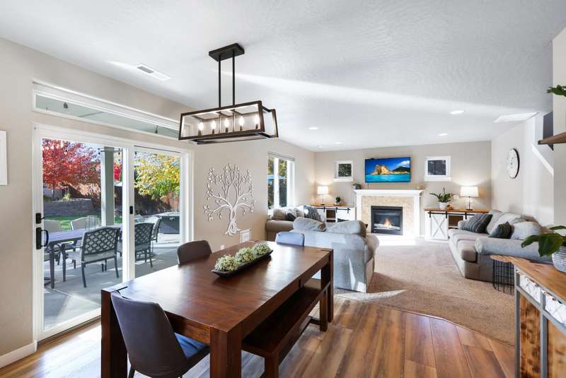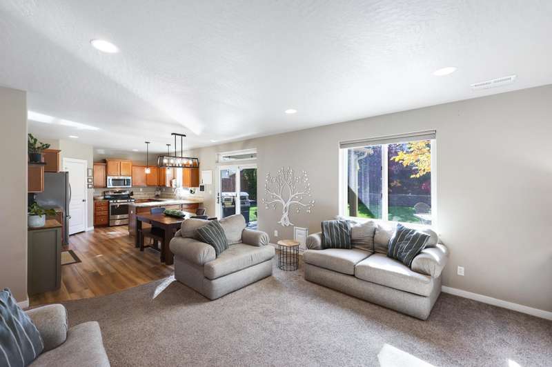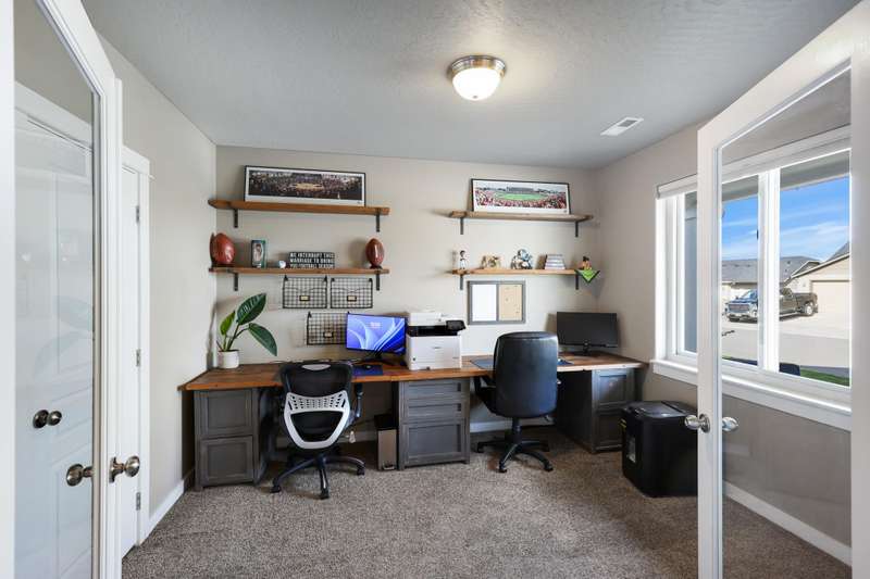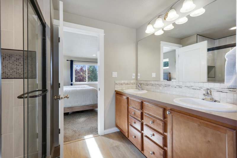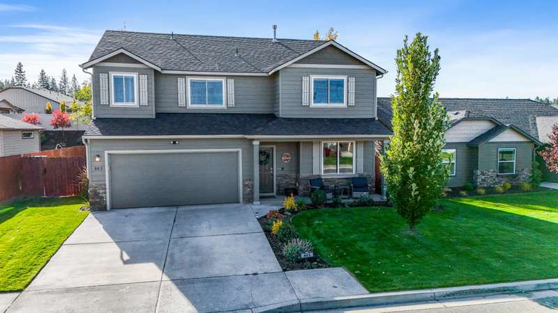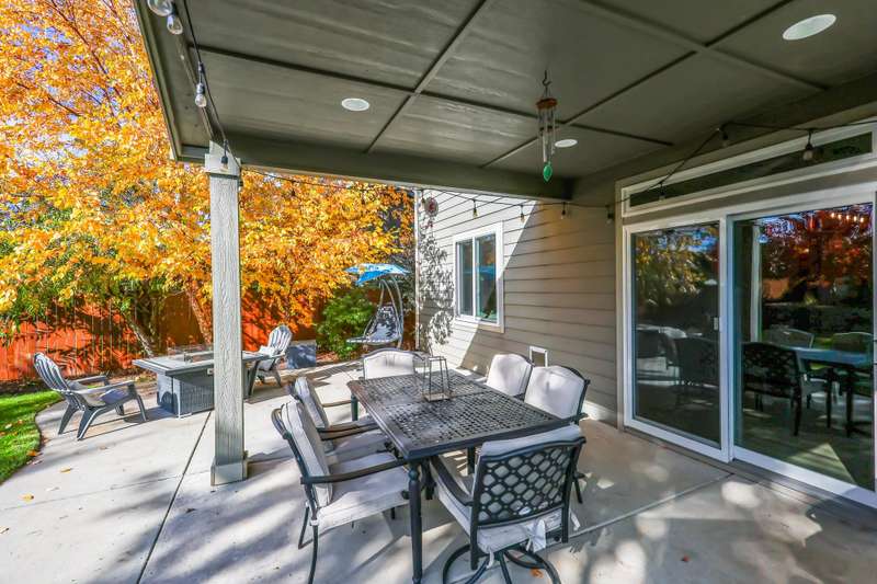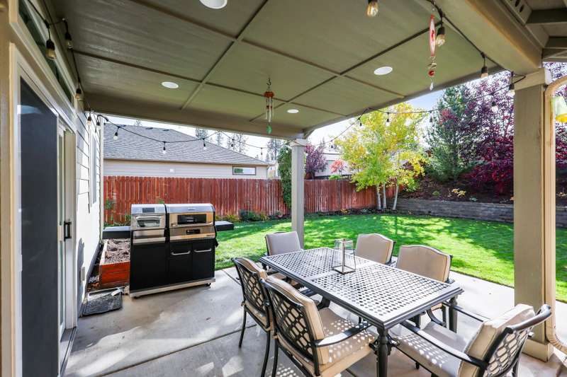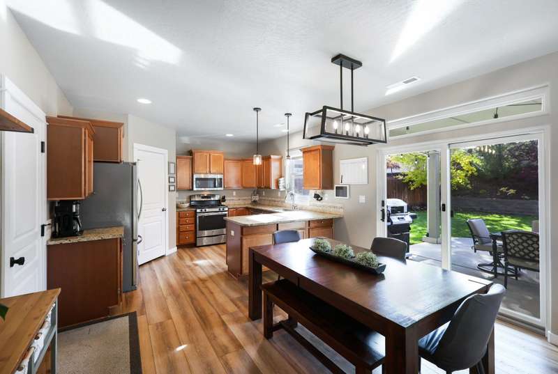 This beautifully updated 5-bedroom, 2.5-bath home combines modern upgrades with a spacious, open-concept layout. Built in 2016 and remodeled in 2025, this home showcases thoughtful improvements throughout, including new Andersen windows (2024), energy-efficient solar panels (2023), and a luxuriously remodeled master bathroom. The great room concept connects the living, dining, and kitchen areas ideal for entertaining and everyday living. The kitchen features granite countertops, stainless steel appliances, updated LVP flooring, and ample cabinetry for storage. Upstairs, four generous bedrooms provide flexibility for family or guests. Downstairs bedroom currently used as an office with custom built desk. The primary suite offers newly remodeled ensuite bathroom with custom-built shower featuring modern finishes and high-end details. Enjoy your spacious backyard, complete with a covered patio, perfect for relaxing or hosting gatherings. Just a blocks from neighborhood park, makes this home a must see.