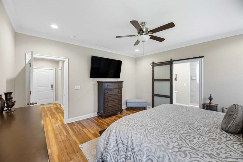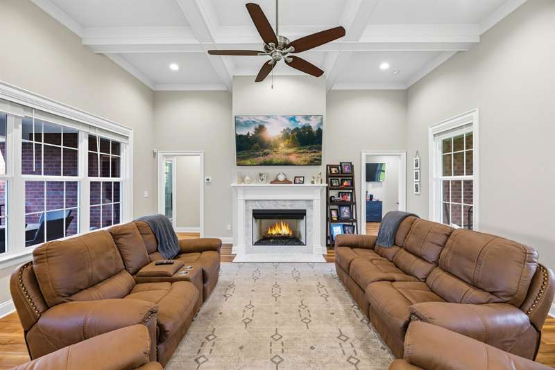 This beautifully crafted custom-built home combines timeless design with modern convenience.From the classic brick construction, with designer touches like a coffered ceiling in the family room, and an impressive 8-foot stained front door. The beautiful kitchen is open to the family room so one does not miss a sports play or movie episode. The split-bedroom floor plan offers privacy and function, with open living areas designed for both everyday comfort and entertaining.From the moment you step through the door, you'll notice the high ceilings throughout, creating an open and inviting feel. The covered front and rear porches make the perfect spaces to relax and enjoy the outdoors in comfort.Inside, the home is filled with quality details, including tiled baths and large walk-in tiled showers designed for both style and function. The tankless water heater ensures endless hot water and energy efficiency.Whether you're hosting gatherings or enjoying quiet evenings at home, this thoughtfully designed property offers comfort, style, and durability in every detail.The attached oversized double garage provides convenience, while the detached 28x30 fully finished garage is a true showstopper?complete with a half bath and a walk-up attic for incredible storage or workshop potential.If you're looking for quality craftsmanship, thoughtful design, and space to match your lifestyle, this home checks every box!