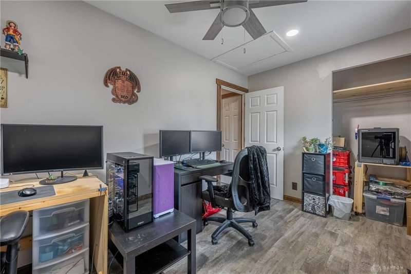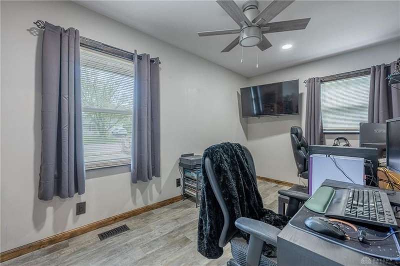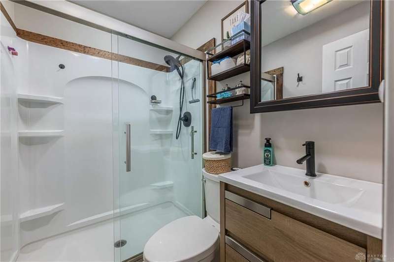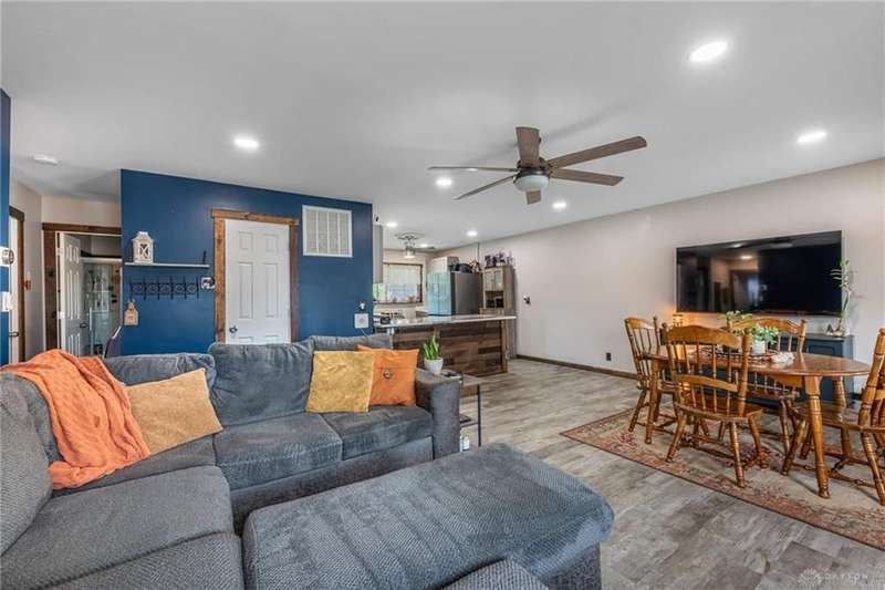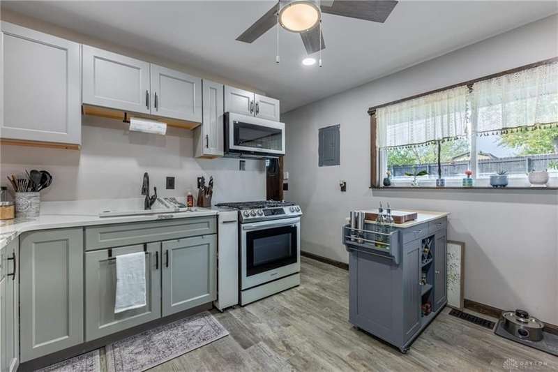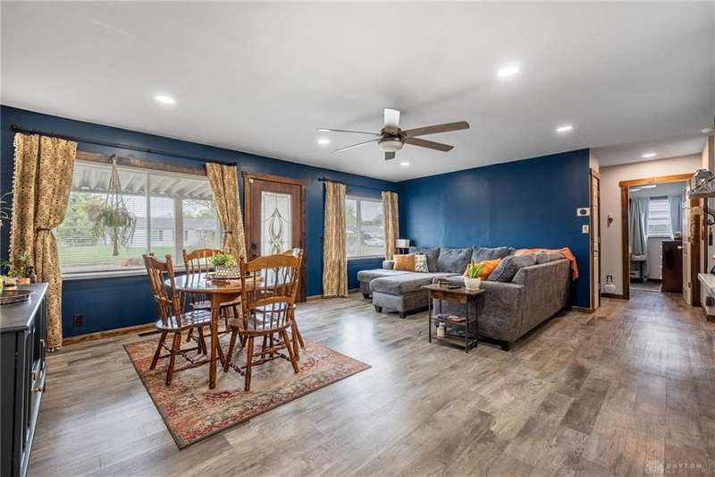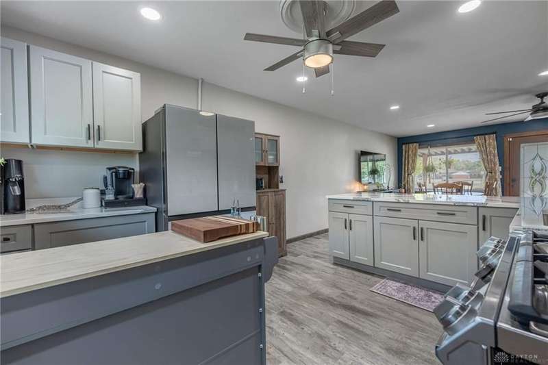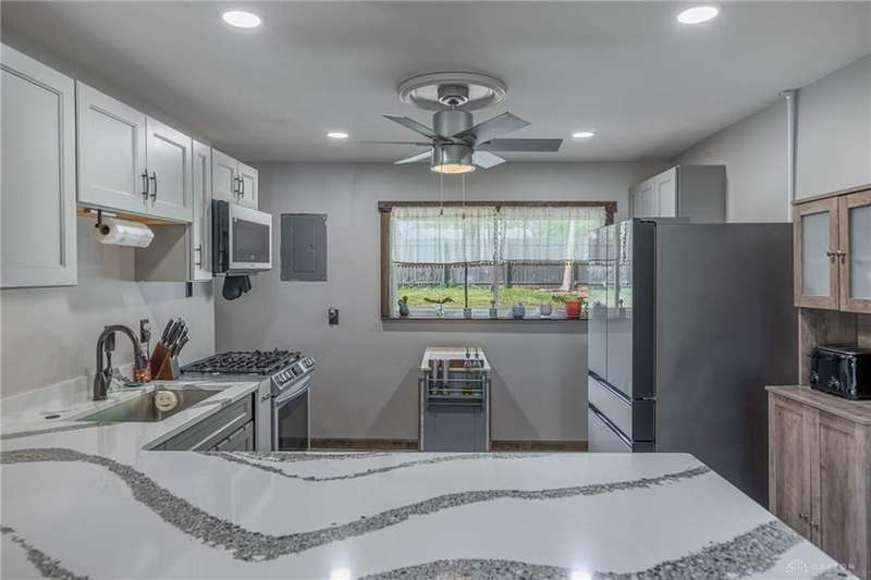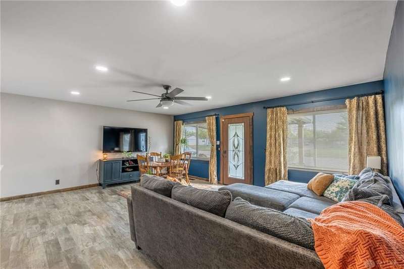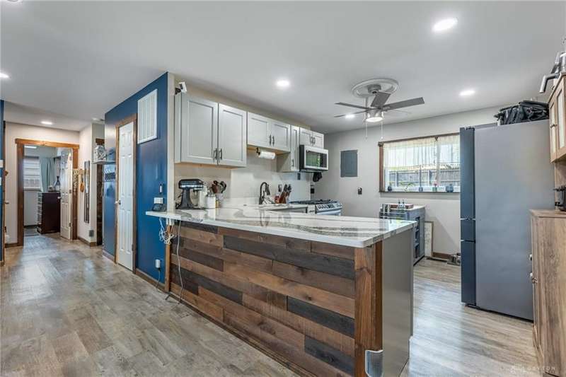 Welcome to 321 Stratmore Street, New Carlisle. This beautifully remodeled ranch, in the Tecumseh School District blends modern comfort and thoughtful details. From the moment you arrive, the inviting covered front porch, fresh landscaping with brick flower bed borders, and a fully fenced backyard set the tone for a home designed to be both stylish and functional. Step inside to an open floor plan filled with natural light and highlighted by luxury wood laminate flooring. The heart of the home shines with a beautifully remodeled kitchen featuring Cambria quartz counters (lifetime warranty), Samsung smart appliances, and ample storage. The spacious living area is perfect for gathering, while the fully renovated bathroom offers a modern, spa-like touch. This property is truly a homeowners dream for both relaxation and projects. Outside you'll find 4 new cedar raised garden beds, a generous yard enclosed by a new privacy fence, and a versatile outbuilding. The large 10x20 shed has lofted storage and electric, ideal for a workshop, hobby space, or the ultimate he/she shed. A wide driveway has been expanded w/gravel providing plenty of parking. Every major system has been thoughtfully updated for peace of mind: 2018 New furnace & A/C (tuned up this year) 2019 Water heater 2022 New insulation, energy-efficient windows, vinyl siding with waterproof underlay, roof with HD luxury shingles, quartz counters, bath remodel, smart appliances, smart washer/dryer, keyless entry, gutters & downspouts 2023 Water softener 2024 New window blinds 2025 Privacy fence, 10x20 shed with loft and electric, exterior lighting, and landscaping upgrades. This home is the perfect blend of modern upgrades and timeless comfort, offering a place where everything has already been done for you, just move in and enjoy. Whether you're entertaining in the open living space, working on hobbies in the powered outbuilding, or relaxing in the backyard oasis, 321 Stratmore Street is ready to welcome you home.