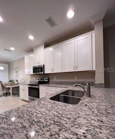 Make your RESERVATION NOW!! LAKEWOOD RANCH ESPLANADE GOLF and COUNTRY CLUB. This luxury furnished Condominium for RENT. OPEN FOR RESERVATIONS for the winter SEASON 2025. Beautifully furnished with everything you need to enjoy a quality stay. This first floor condo has exceptional views of the lake and 5th fairway of the Champion Esplanade Golf Course from the spacious screened Lanai. Two bedroom and Two baths with a King Bed in the main suite and a Queen Bed in the guest bedroom. The chef's Kitchen features a desk office area and breakfast bar. 1 car detached garage. Esplanade residents can enjoy the many amenities to include: golf, clubhouse, fitness center, spa, multiple dining options, the Bahama Bar, Outdoor BBQ space, firepits, tennis, pickle ball, bocce ball, dog park, and heated resort style lagoon pool. Gated and well designed community in the heart of Lakewood Ranch. Convenient location to access the nearby University Town Center Mall, Lakewood Ranch Main Street restaurants, shops, and activities. Longer stay rates available. Call Today!! Rates: $5500 month for December through April and $3000 month for May through November.