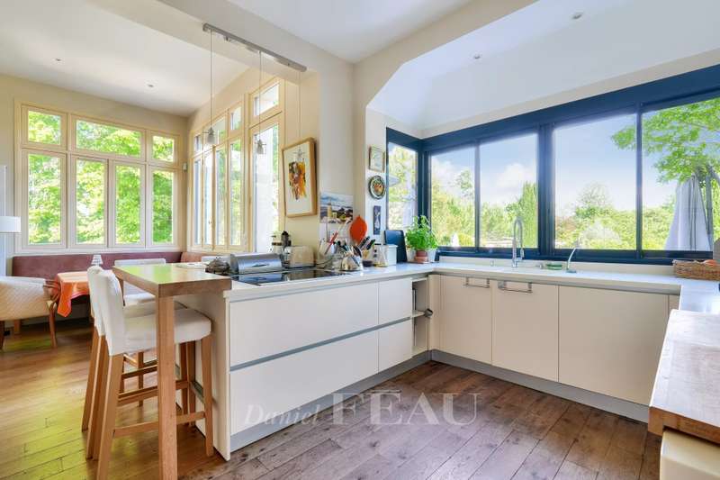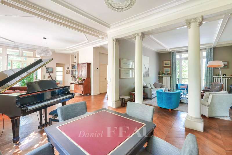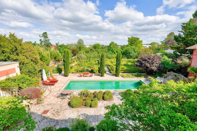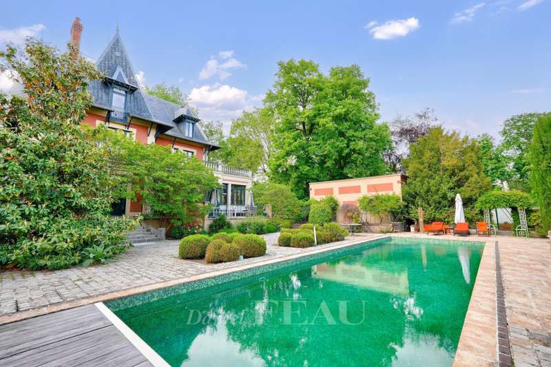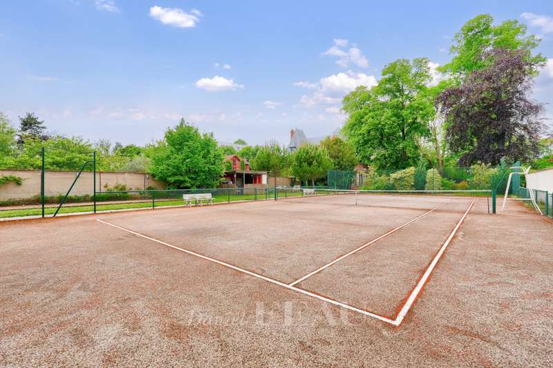 This historic late 19th century property benefiting from 21st century comfort is set in 6151 sqm of landscaped grounds planted with centennial trees and with a 15 x 4.5 metre swimming pool, a tennis court and a boules pitch. Renovated between 2010 and 2015, it offers a total of about 500 sqm of living space plus basements. The near 340 sqm main house includes a spacious “L” shaped living/reception room with a fireplace, a rotunda reading area, a dining room and a kitchen with dining facilities. All open onto a wide south-facing terrace. Upstairs are an air-conditioned master bedroom opening onto a terrace commanding a superb view of the formal French garden featuring a listed rose garden, a bathroom, a shower room, a dressing room and two studies (or two possible bedrooms). The top floor comprises an air-conditioned bedroom, a bathroom, and two further bedrooms with a shower room. The near 90 sqm basement comprises a utility room, a home cinema with a music area, an air-conditioned wine cellar and a storage room. In the garden, a near 120 sqm annex is currently divided into guest and caretaker’s accommodation. By the tennis court a near 35 sqm orangery comprises a living room with a kitchen area, a separate bedroom and a shower room. With several parking spaces. A unique opportunity in a convenient location near la Defense, the A86 and A14 motorways and 35 minutes from Orly and CDG airports.