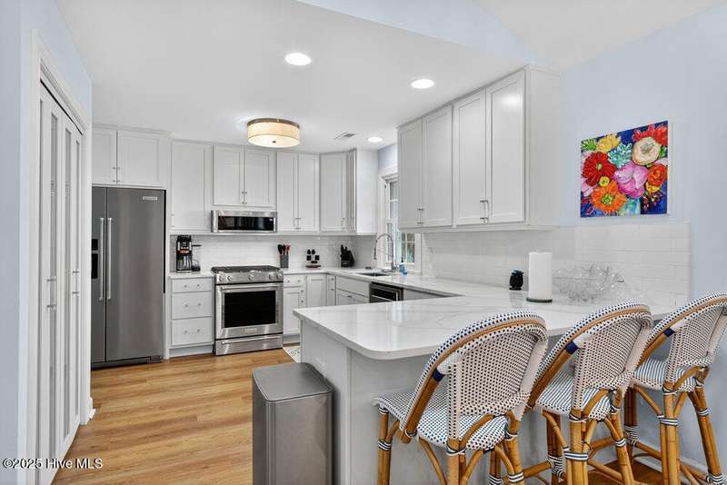 Coastal Charm Meets Modern Comfort- Your Beachside Escape Awaits. Just steps from the beach and marina, this furnished 3-bedroom, 2-bath home delivers the perfect balance of style, comfort, and seaside adventure.Sunlight pours through every room, highlighting the canal views and breezy coastal vibe.Relax on welcoming front porch or gather inside, where an open floor plan showcases luxury vinyl plank floors, a shiplap accented fireplace, and statement lighting.The chef's Kitchen is a showstopper with KitchenAid appliances ( gas cooktop, electric oven), dramatic viewed quartz counters, and thoughtful upgrades, including a new propane tankless water heater.Outside, the covered carport doubles as versatile entertaining space or play zone, with large storage room for beach gear and bikes. After a day on the sand, enjoy rinse in the outdoor shower- perfect for true beach living. There's even space for the ultimate backyard oasis.Whether you're boating from the nearby marina, cruising in your golf cart, or simply savoring a quiet evening at home, every day here feels like a vacation. Ideal as full-time residence or a high demand rental, this turn- key property is ready for its next chapter.