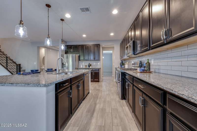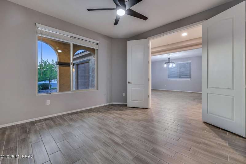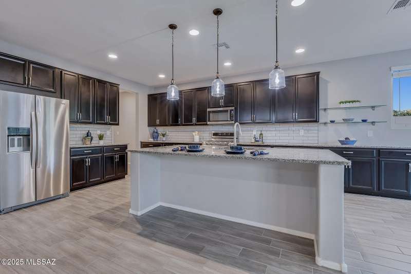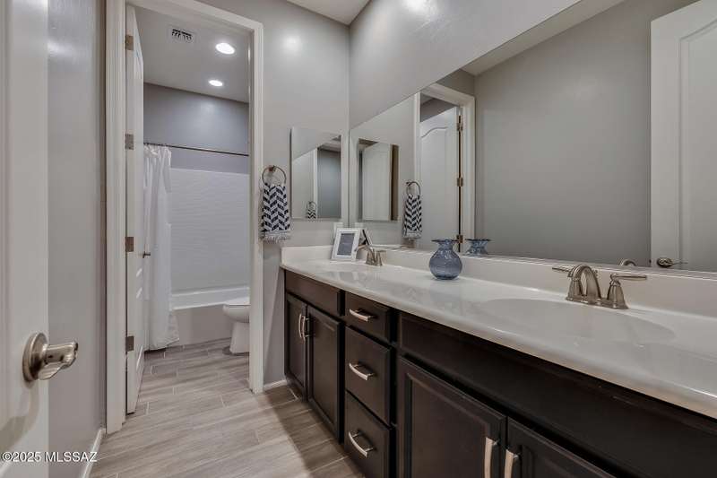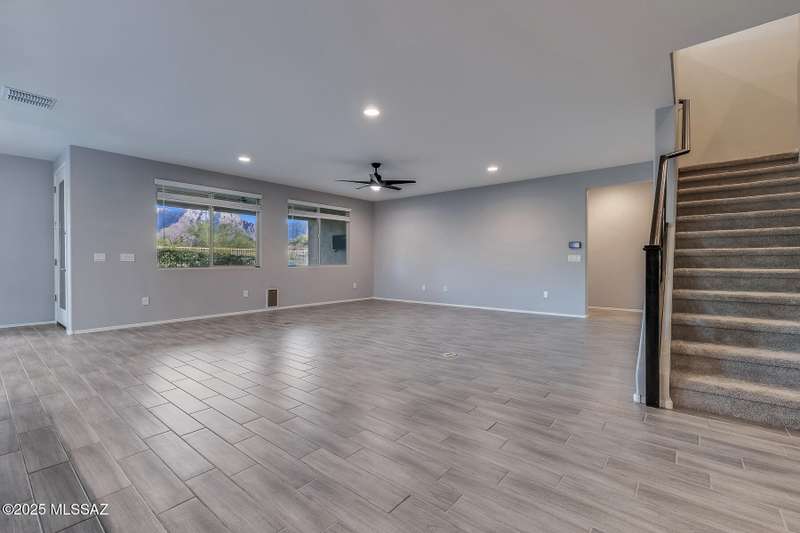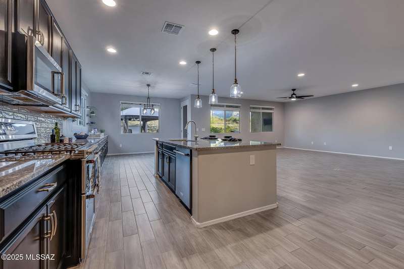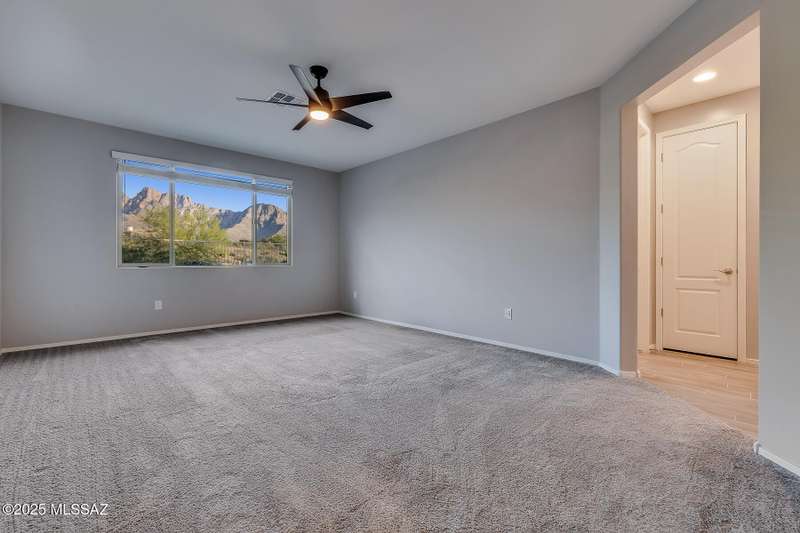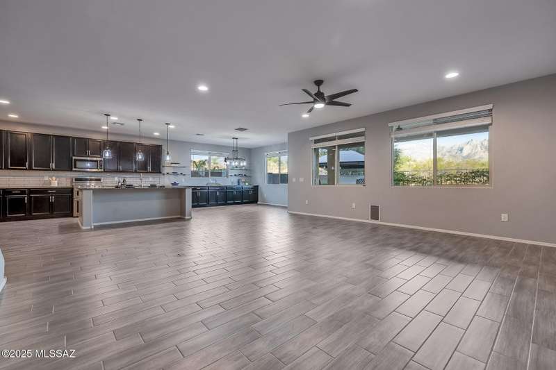 SWEEPING CATALINA MOUNTAIN VIEWS!!! Experience true Tucson living in this stunning 5 Bedroom, 3.5 Bath home tucked away on a private cul-de-sac in a gated Oro Valley community. With over 4,100 sq. ft. of living space, this home captures sweeping Catalina Mountain VIEWS & incredible Sunsets inside & out. Step into elegance with Great Room Downstairs & Loft/Family Room Upstairs, a spacious den/office, and an extended kitchen/dining area featuring a large island/breakfast bar, soft-close cabinets & drawers, pull-out shelves, granite countertops & stainless steel appliances. The downstairs primary suite offers mountain views, walk-in closet, and a spa-inspired bath with garden tub, walk-in shower, and dual vanities. Four additional bedrooms upstairs including three walk-in closets & two full