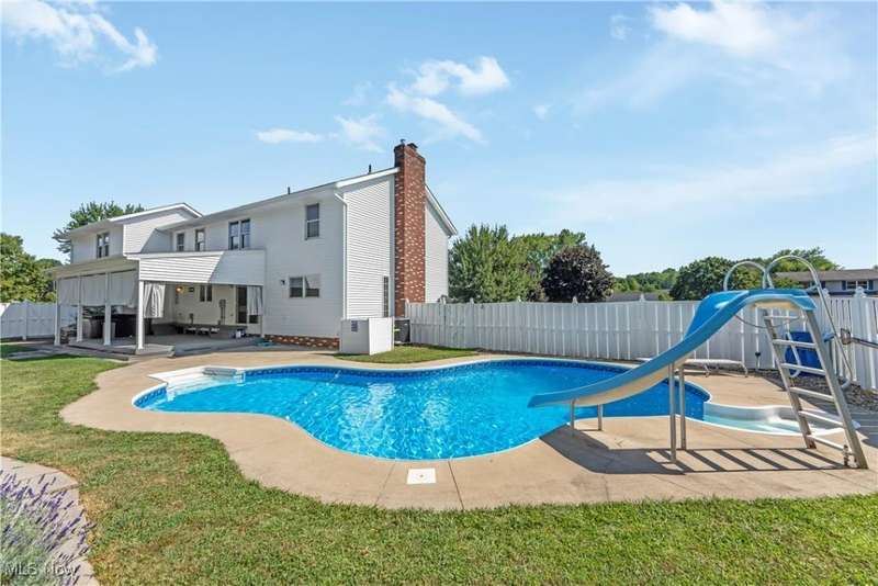Presenting a newly updated brick and vinyl Colonial 4-bedroom 4 bath home ideally located on a corner lot close to Green Local Schools, Akron Canton Airport & restaurants! Rare find with a beautiful gas and solar heated pool, a covered deck and a relaxing hot tub for your enjoyment in a private fenced in back yard!!! A perfect backyard oasis. Abundant natural and updated lighting throughout this beautiful over 3000 sq ft home. The newly remodeled kitchen has white soft close cabinetry, granite countertops and LVP flooring with eat in kitchen that opens to the private covered deck through the sliding glass doors and the pool! Appliances stay! The comfortable living room has the original brick fireplace with new fireplace doors, LVP, and windows providing the perfect blend of modern and comfort. Also on the main level is a formal dining room with a trayed ceiling, a 1/2 bath and a large laundry room centrally located and connected to the covered deck and hot tub. Two staircases lead you to the newly renovated upstairs, one to the master suite side through an upstairs foyer that could be used as an office. The Master suite has a cathedral ceiling and newly remodeled bathroom boasting white cabinetry, shiny new quartz countertops and a walk-in shower. Through the master bath is a walk-in custom closet. The foyer connects to bedrooms two and three, a full bathroom and walk-in linen closet. Adjacent to bedroom 3 is the bonus room and 4th bedroom suite with a decorative corner fireplace furnace and attached spacious bathroom! The second staircase leading from the main level garage entry and laundry room access the bonus room making this an unbelievably spacious area for a college student, teen suite, or guest area!!! The basement level is unfinished and ready to make into so much more!! Furnace and A/C are brand new. Roof 16 years old 30-year architectural shingles.