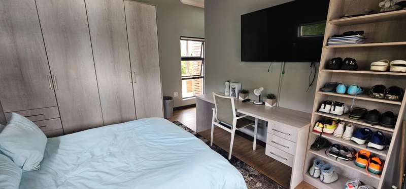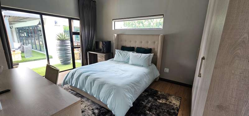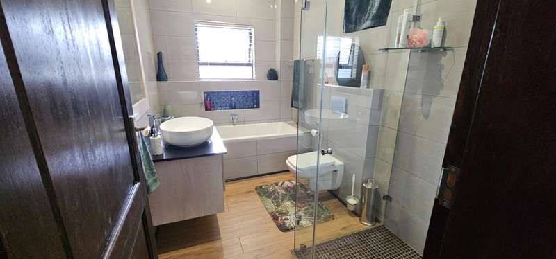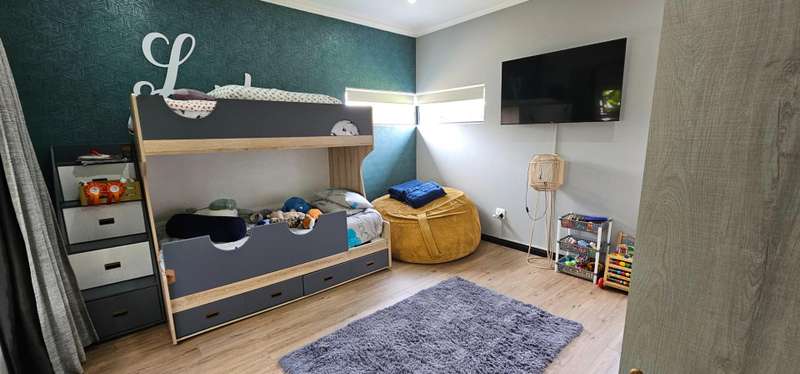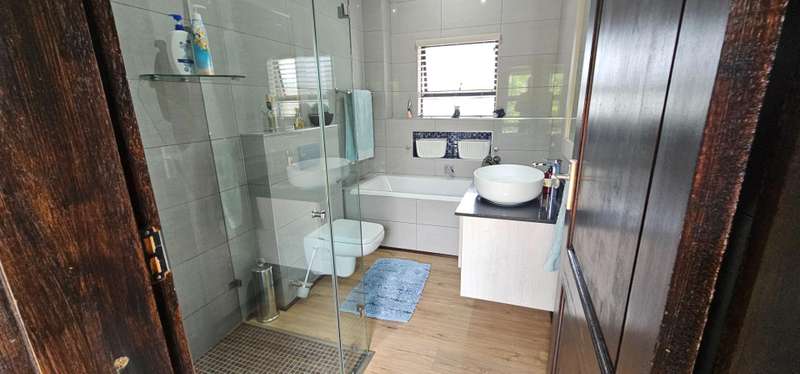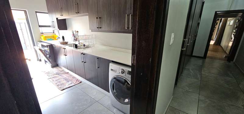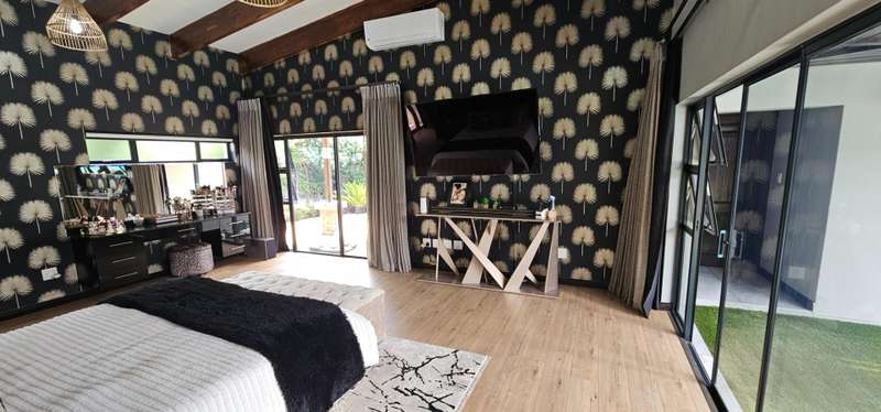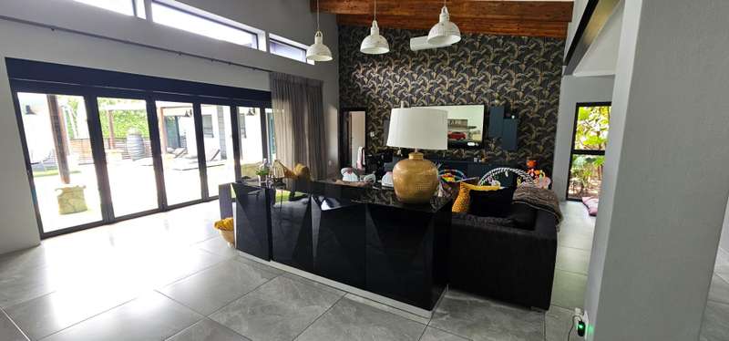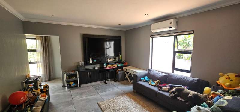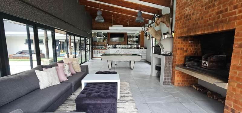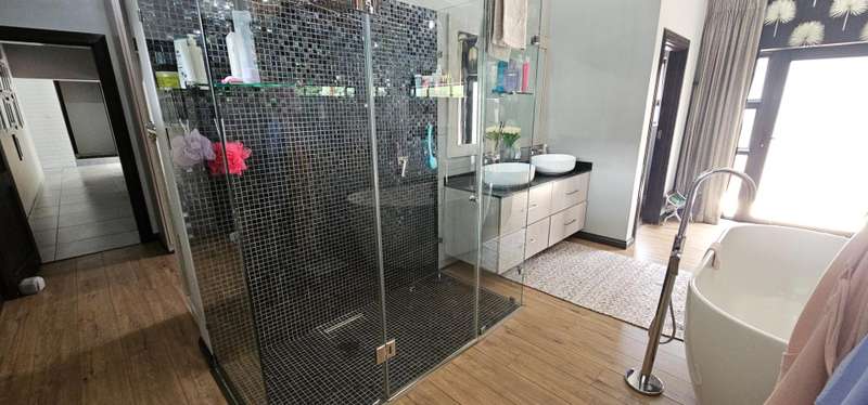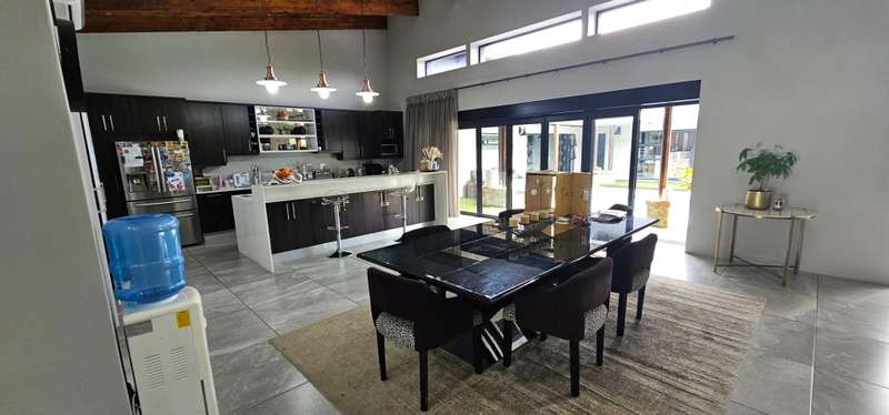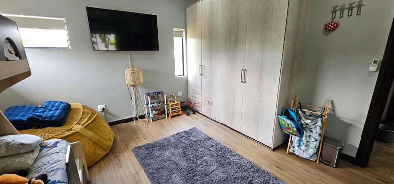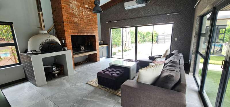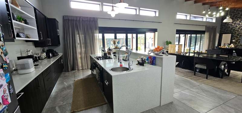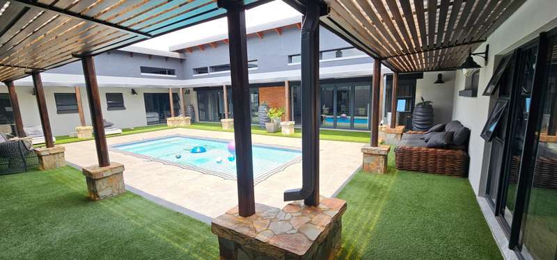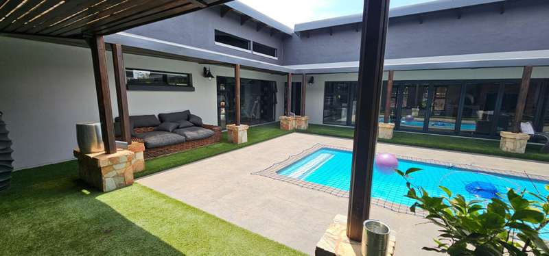 Modern Huge Full Title Property in the Prestigious Secure ZCE Offering: Open plan Kitchen, Dining Room and Lounge with a separate Scullery and Laundry. 5 Bedrooms (Main Bedroom and Bathroom is en-suite with Outside Shower). 2 Bedrooms are also en-suite with Full Bathroom and 2 Bedrooms share 1 Full Bathrooms with TV and Play Room. Entertainment Area with Bar, Built-in Braai and Pizza Oven next to the Pool. Easy Lawn around the Pool. Study & Guest Toilet. Modern Finishes, Air Conditioning, and lots of Extras to be seen. Aluminium Windows and Stacked Doors. Solar system (18 panels, 8kW Inverter, 3 x 3.1kWh Lithium batteries). Gas Geysers. Lovely Garden and walkways with Irrigation System and Security Beams and Ligting. Check the photos and call me for a private viewing. Qualified Buyers only please!