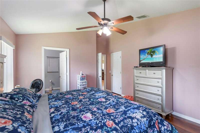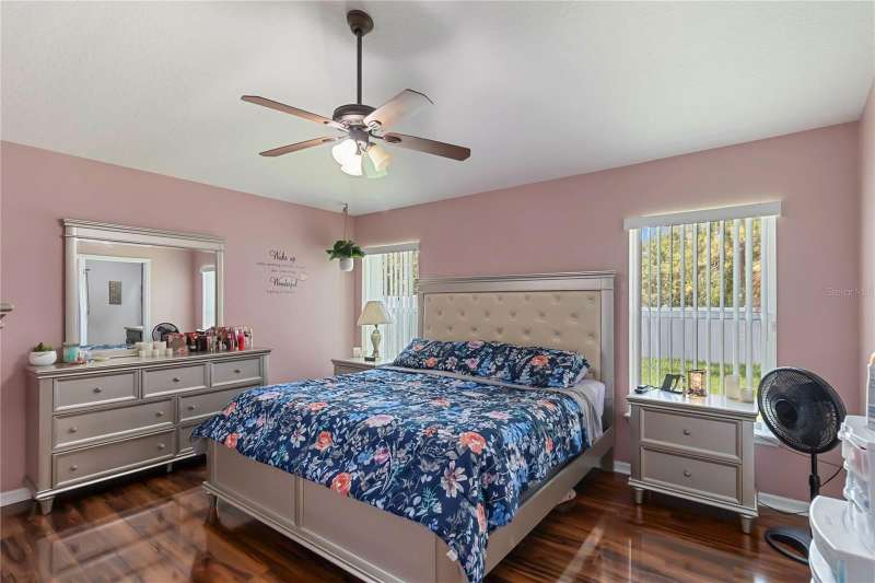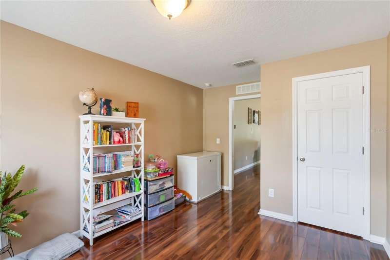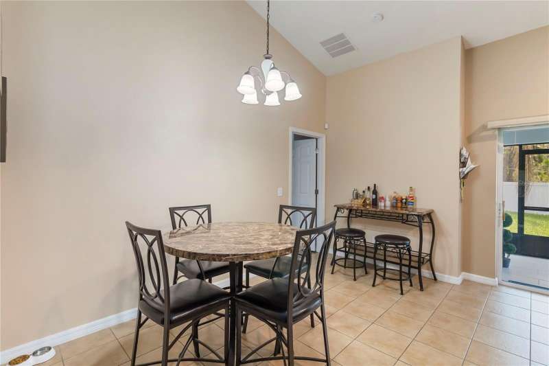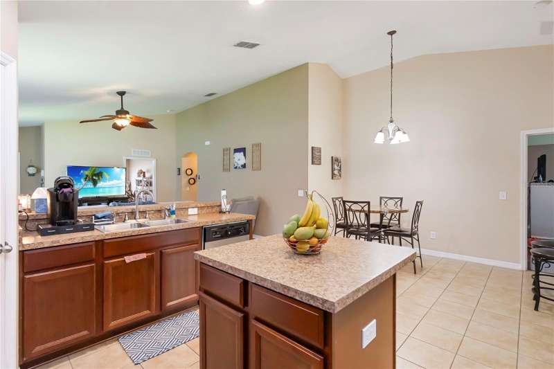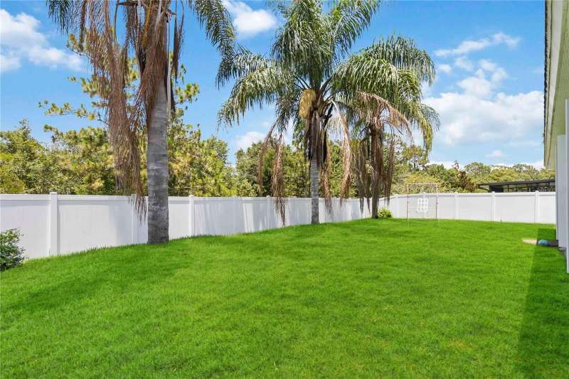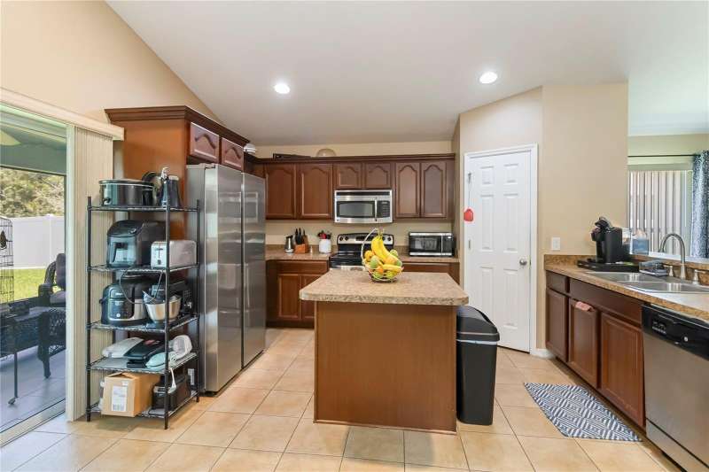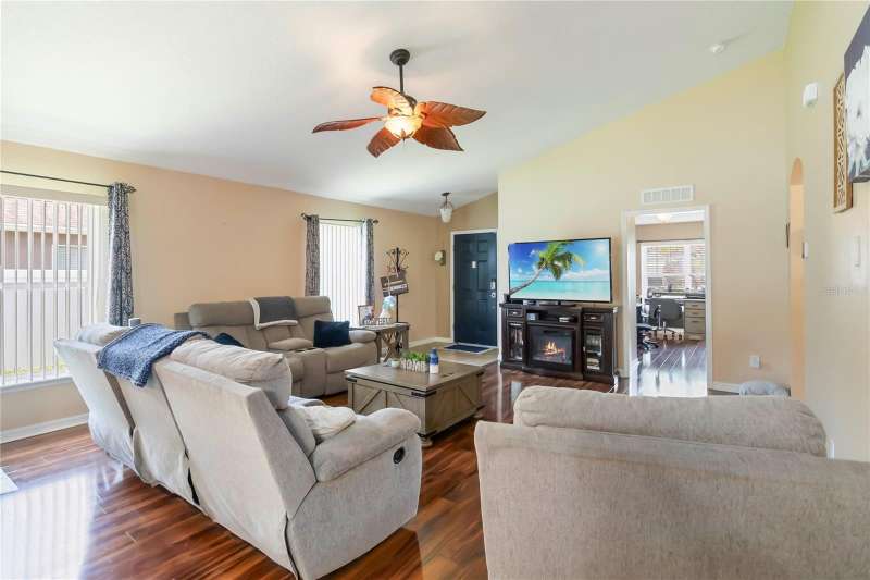 NO REAR NEIGHBORS | SOLAR PANELS PAID AT CLOSING | 2024 A/C | FLEX SPACE CAN BE USED AS A 5TH BEDROOM! Enjoy peace, privacy, and energy efficiency in this beautifully maintained 4-bedroom, 2-bath home featuring a NEW A/C (2024), FULLY PAID solar panels, and no rear neighbors! Located in a desirable community with low HOA and no CDD, this home offers the perfect blend of comfort and convenience. Step inside to an open floor plan with laminate and ceramic tile flooring throughout —no carpet here! The spacious kitchen boasts a center island, stainless steel appliances, and ample cabinet space, ideal for home chefs and entertainers alike. The large laundry room includes plenty of storage plus a washer and dryer. Relax year-round in the screened lanai, overlooking the fully fenced backyard, perfect for pets, play, or gardening. Home also includes whole-house hurricane shutters for peace of mind during storm season. Community amenities include a sparkling pool, tennis courts, and playground. All just minutes from the Turnpike, shopping, dining, grocery stores, the hospital & much more! This one checks all the boxes—schedule your private showing today!