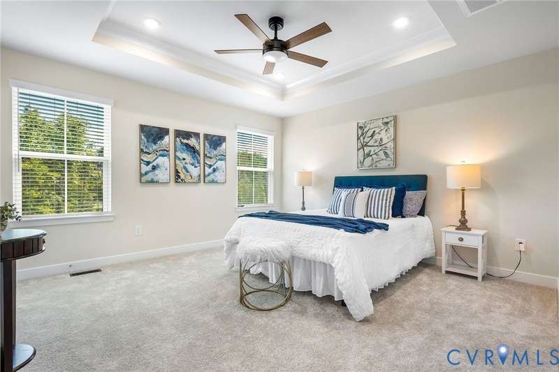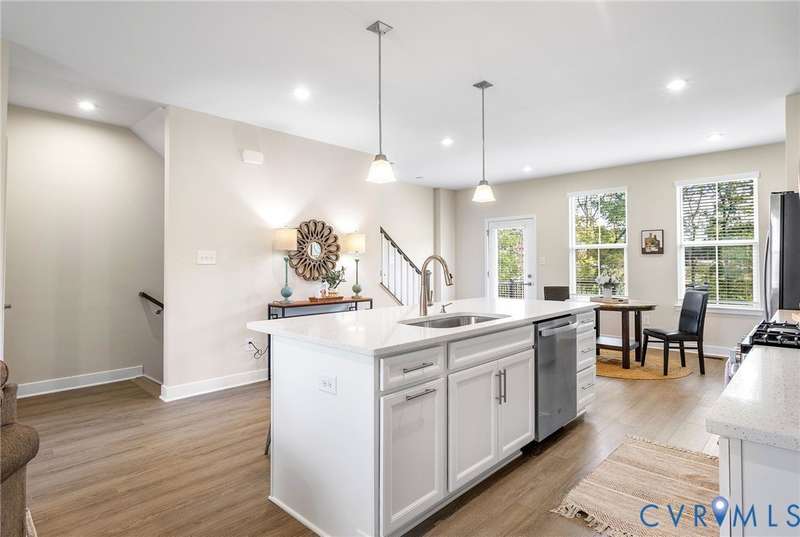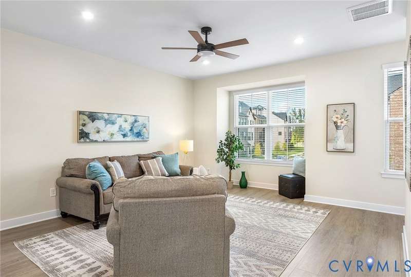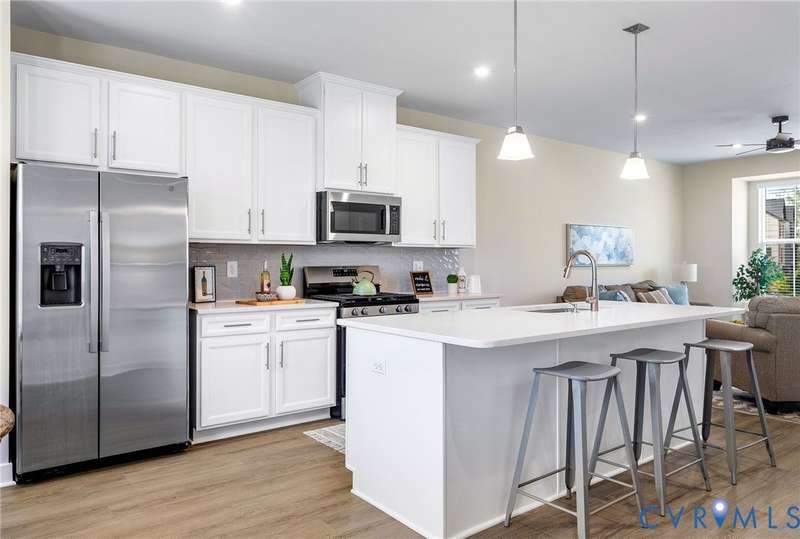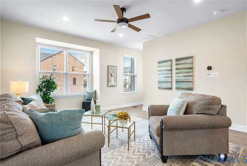 Welcome to 1255 Lazy River Road, a newly constructed 4-bedroom, 3.5-bath Ballad Model townhome in Centerpointe Townes-where upscale design meets unbeatable convenience in the sought-after Midlothian High School district. **Special Financing Offer**-Seller is offering a lump sum contribution to reduce the buyers' mortgage payment over the first 2 years of the loan through Prosperity Home Mortgage. Buyers' mortgage rate will be reduced by 2% in the 1st year and 1% reduction in year two. The exterior features a partial brick front for curb appeal, floodlights for security, and a freshly painted one-car garage with driveway parking. Inside, the foyer welcomes you with new flooring, nickel finishes, and fresh paint. The first floor includes a full bath and a versatile bedroom/office/guest space with ceiling fan and blinds, plus access to a 12x10 patio-ideal for casual entertaining. Upstairs, oak stair accents lead to the heart of the home: an open-concept great room, kitchen, and dining area. The kitchen shines with a large island, stainless-steel appliances including a gas stove, pantry, tile backsplash, under-cabinet lighting, crown molding, and satin nickel hardware. The great room is bright with windows, ceiling fan, and blinds, while the dining room opens to a freshly stained balcony overlooking a quiet oasis. On the third floor, two bedrooms with ceiling fans and blinds share a full bath with ceramic surround. A nearby laundry room adds convenience. The rear owner's suite features a walk-in closet, storage nook, tray ceiling, ceiling fan, and private bath with double vanity and upgraded roman shower-your perfect retreat. Energy-efficient systems provide year-round comfort, and the HOA maintains the yard for low-maintenance living. Just minutes from St. Francis Medical Center, Westchester Commons, Rt. 288, and Powhite Parkway, Centerpointe Townes offers the perfect blend of city access and suburban charm. Don't miss this rare opportunity to own a move-in ready, modern townhome in the heart of Midlothian.