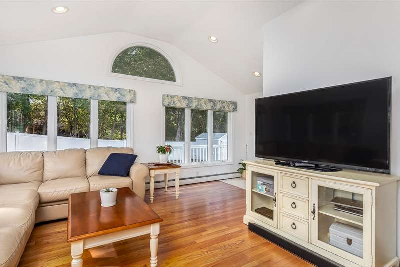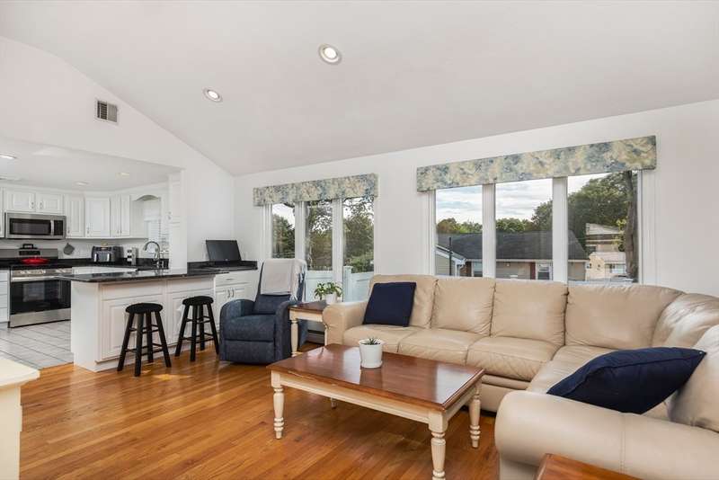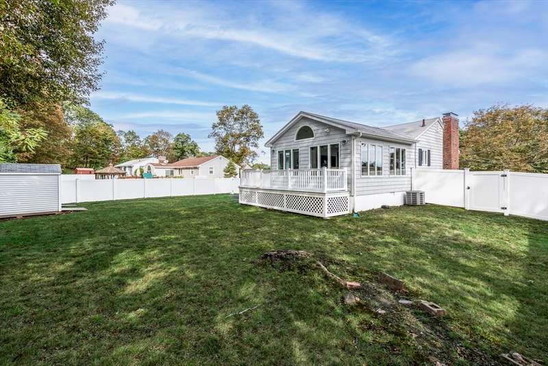Pristine and move-in ready, this 3-bedroom, 2-bath home offers the perfect blend of comfort, style and space. A formal living room with a wood burning fireplace provides a warm and inviting setting for entertaining. The kitchen, with a designated dining area as well as counter space for a quick meal, opens to a sun-filled family room with a cathedral ceiling and an abundance of windows that help create a bright and airy gathering space. A renovated bathroom, with shower stall, is tucked away. The lower level is partially finished, with additional space that's ready to be customized to your needs. Enjoy outdoor living in the fenced yard or entertain family and friends on your composite deck. Conveniently located near shopping, schools, and commuter routes, this is the home you've been waiting for!