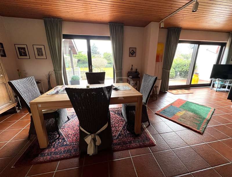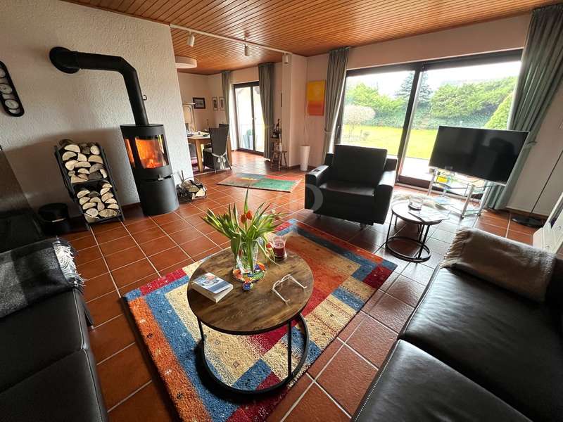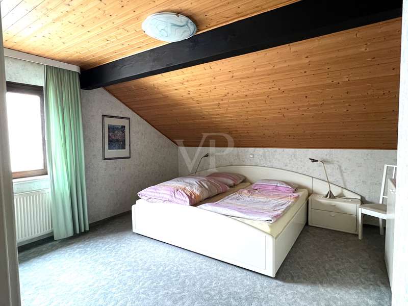 Welcome to this spacious, high-quality detached house, which is situated on a plot of approx. 505 m². The property, which is attached on one side and has a living area of approx. 150 m², also offers enough space for a family of several people. Built in 1987, the house is in a very well-kept condition. In 2018, the heating system was replaced with a modern gas central heating system, which, in combination with underfloor heating in parts of the house, ensures a pleasant indoor climate. The house has a total of five rooms, including a spacious, light-flooded living and dining area of approx. 46 m² with access to the large south-facing terrace. The terrace, with an area of around 28 m², is equipped with an electric awning and offers a beautiful view of the spacious garden, which is also south-facing. The existing irrigation system is fed by a well. A garden shed offers additional storage space for garden tools and furniture. The very spacious daylight bathroom on the upper floor has a double washbasin, a bathtub and a separate shower. The basement with access to the garden offers a sauna and a further shower and WC in addition to the usual functional rooms. Parking is available in the garage next to the house and the parking spaces in front. Thanks to its quiet location, this detached house is ideal as a retreat away from the hustle and bustle with the amenities of city life within easy reach. The Main metropolis of Frankfurt, the airport, the cities of Mainz, Wiesbaden and Darmstadt are all within easy reach by car. See the advantages of this property for yourself during a viewing.