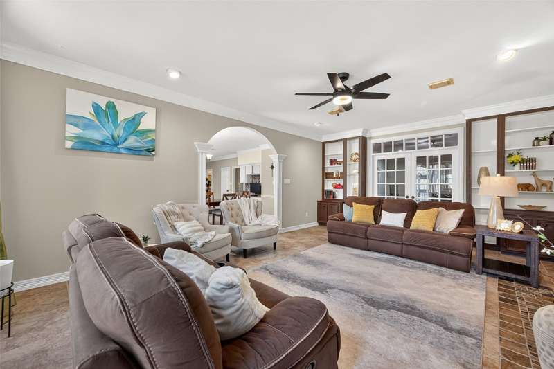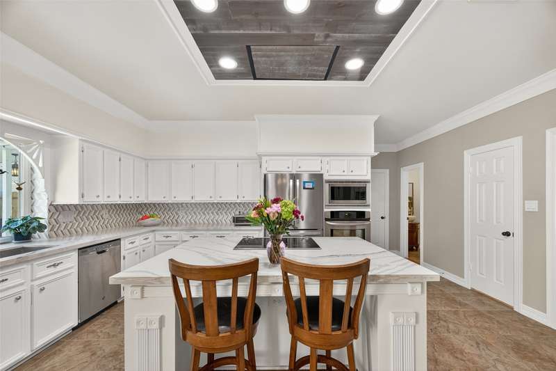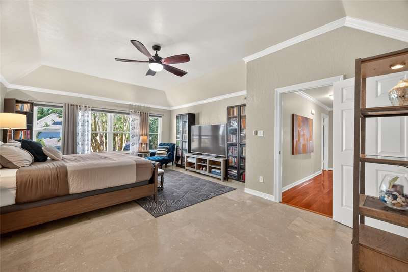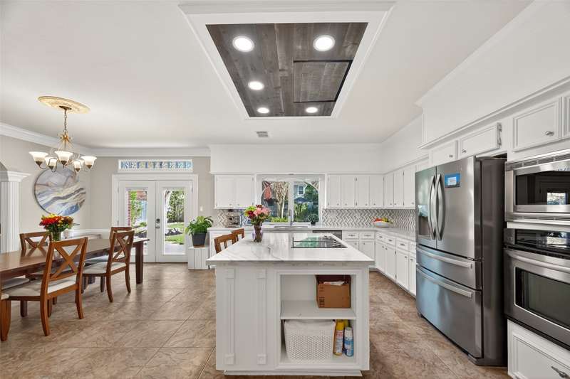 Nestled under the shade of towering oaks on a peaceful street, this magnificent Brookwood home invites you into the heart of Clear Lake. Discover a stunning chef’s kitchen featuring luxurious quartz countertops, a stylish island with an electric cooktop and a welcoming breakfast bar—perfect for morning coffee or entertaining guests. Enjoy an abundance of both counter/cabinet space, a massive walk-in pantry that caters to all your storage needs. The elegant family room is bathed in natural light & warmed by a charming gas log fireplace. The super-sized primary bedroom is a private retreat, highlighted by a roomy en-suite bath complete with his-and-her vanities, a relaxing jetted tub, separate shower, & generous walk-in closets. Beautifully landscaped backyard paradise fully fenced, includes a bonus pad ideal for storing kayaks & canoes. 5yr old roof and 7yr old HVAC provide efficiency & reliability for years to come. Located in the highly sought-after Clear Creek School District.