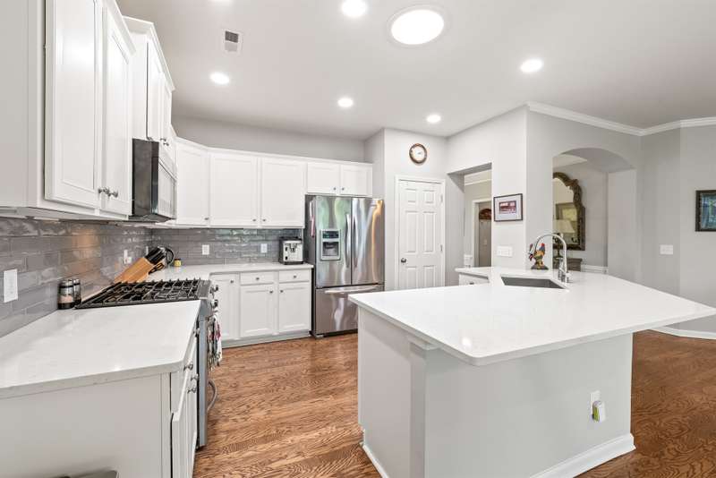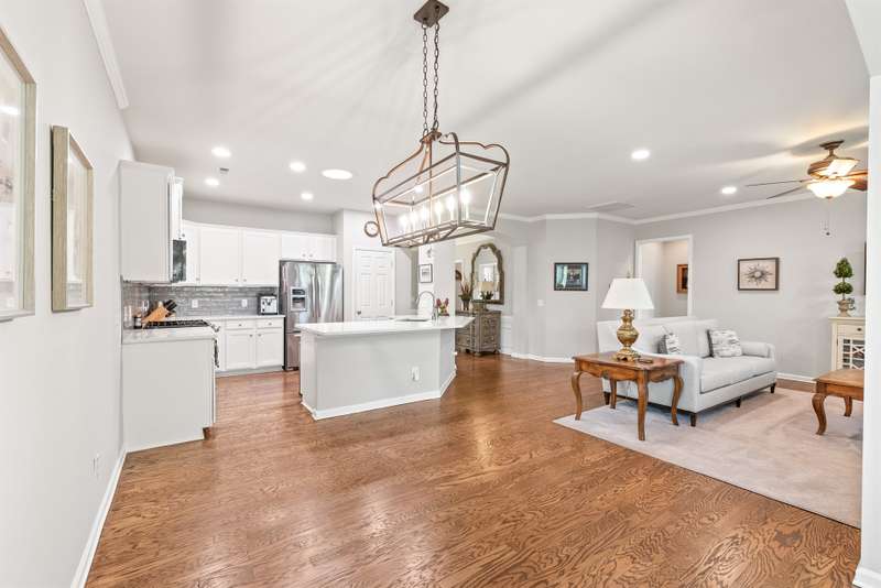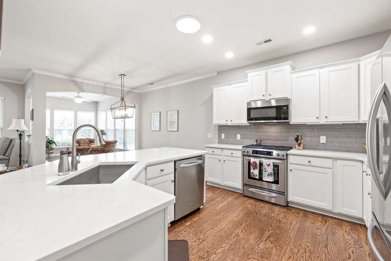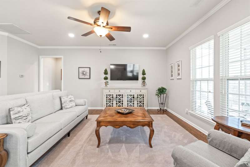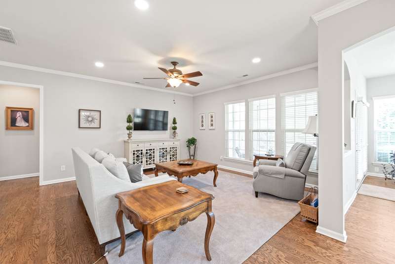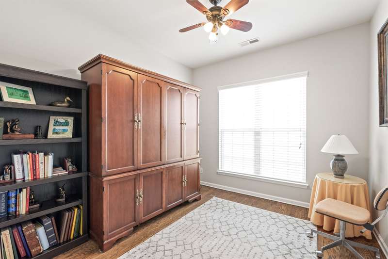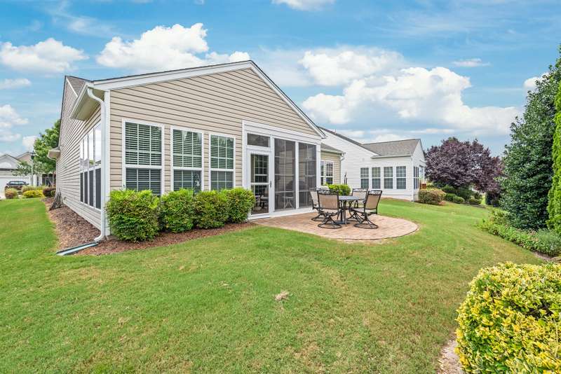 No updating needed! Just back up the moving truck and unload! Immaculate neighborhood favorite Copper Ridge floor plan. The Kitchen features freshly painted cabinetry, stylish counter tops, under cabinet lighting and stainless appliances all open to the rest of the main living areas. The Den, Dining and Sunroom features abundant windows to allow the sunshine in. The Primary Suite is most spacious and you will love the walk-in closet with it's custom designed storage system. Home office plus a Secondary Bedroom. Enjoy the outdoors? Here you have several options. The covered Eze Breeze patio provides year round enjoyment plus there is open air paver patio. If you are worried about storage, you will appreciate the walk up attic with flooring. 2022 HVAC system that has been on a regular service plan. The home is located in a quieter part of the neighborhood, but you do have quick access to all the amenities which make Carolina Lakes so attractive. Don't wait until it is too late!