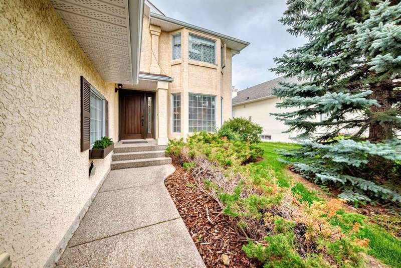 Welcome to this beautifully finished and meticulously maintained two-storey home in the highly desirable community of GlenEagles. Situated on a quiet street with no back neighbours, this property offers exceptional privacy and a stunning landscaped yard that serves as your own private retreat. From the moment you arrive, you’ll appreciate the pride of ownership and thoughtful design that make this home truly stand out. A welcoming entry greets you, flowing seamlessly into a spacious living room complete with a cozy gas fireplace. The bright kitchen is ideal for preparing meals while visiting and entertaining, offering ample cabinetry and a bright breakfast nook that opens directly onto a tiered deck overlooking the peaceful backyard. A formal dining room adds elegance and flexibility for hosting dinners or special occasions and a welcoming front sitting room that overlooks the beautiful front yard. Upstairs, you'll find three generously sized bedrooms and a four-piece bathroom. The primary suite is a true sanctuary, offering a walk-in closet and a full ensuite, creating the perfect space to unwind at the end of the day. The fully finished lower level adds incredible value and versatility, featuring a large family room with a second fireplace, a spacious fourth bedroom, a private office or den, a laundry room, and abundant storage throughout. The privacy and nature inspired yard will invite you to spend countless hours enjoying your choice of sun or shade at any time of the day, while giving your kids or dogs plenty of room to play. Additional highlights include a double attached garage, gorgeous front door and garage door, central air conditioning, a newer asphalt roof, and a layout that blends comfort, function, and style. Located in one of Cochrane’s most sought-after neighbourhoods, this home offers the best of both worlds—peaceful suburban living with easy access to amenities, schools, golf, and the Rocky Mountains. This is a rare opportunity to own a truly exceptional home in GlenEagles. Don’t miss your chance to make it yours.