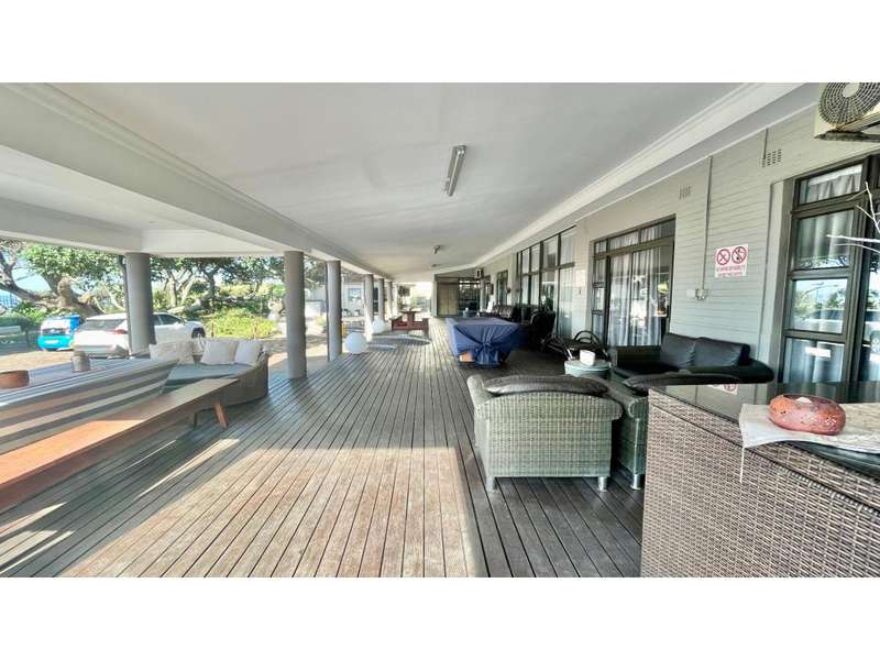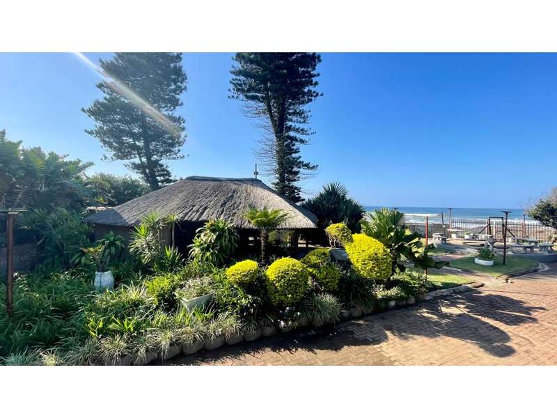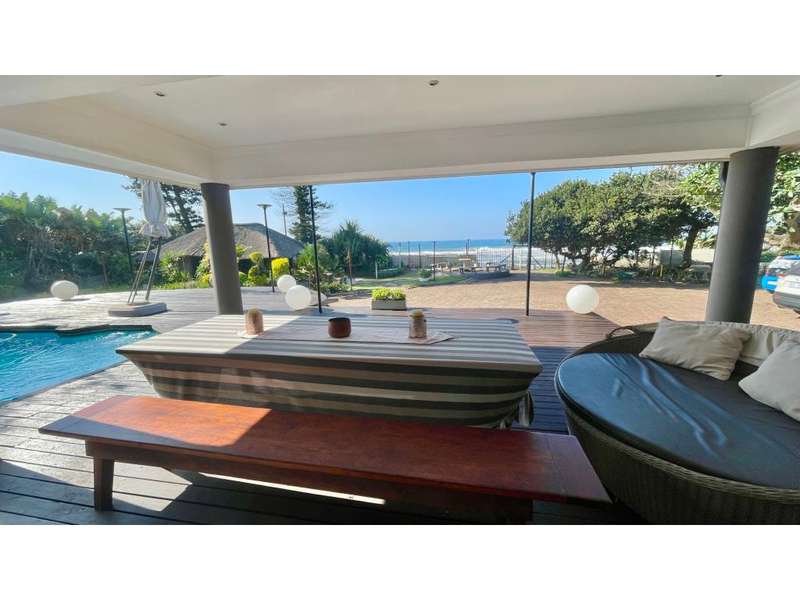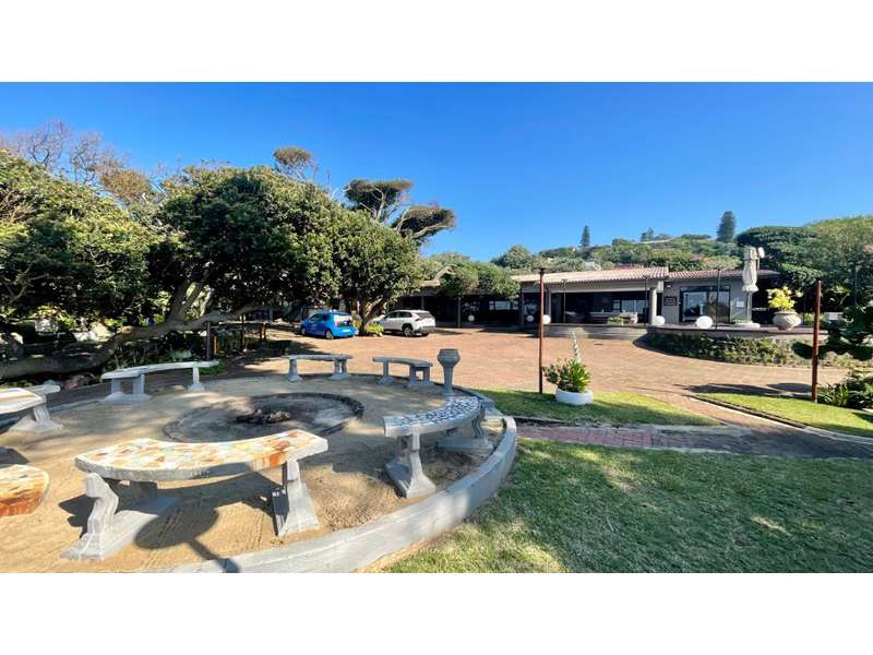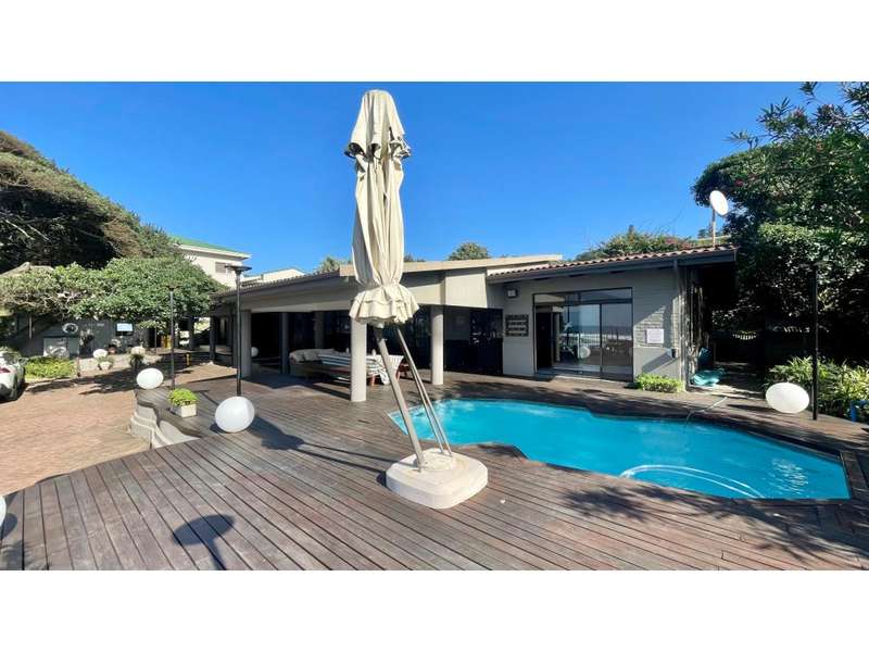 Luxury accommodation at this upmarket complex. Each unit a separate sectional title with a share of the common property. Exquisite ocean views and direct access to the golden beach - in a bay formation with lots of rock pools and scattered shells along the shoreline. There are 3 beautifully furnished units. Extra buildings include a Manager's house and an enclosed lapa with a bar and dining area. Enjoy the built in boma with a centre firepit. The gardens are manicured and the security is excellent. Unit 1 is113sqm and consists of 3 bedrooms, 2 bathrooms, a lounge and dining area, a kitchen and decking with a heated swimming pool. Unit 2 is 56sqm and is a self contained unit with a bedroom, luxury bathroom and a kitchen. Unit 3 is 94sqm and has 2 bedrooms and a bathroom, lounge and dining area and a kitchen. The large patio stretches from one side of the building to the other and consists of places to relax, dine and enjoy the view. There is ample parking and the property is well lit up in the evenings. Back up water aplenty. Excellent property for AirBnb.