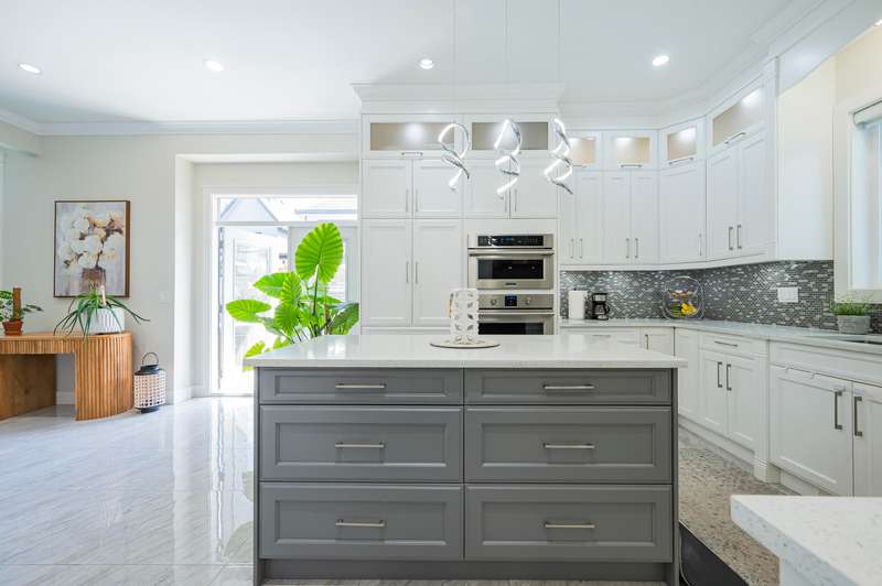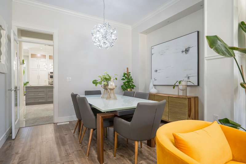 This beautifully kept, high-end home offers 8 spacious bedrooms and 8 bathrooms, with soaring ceilings and luxury finishes throughout. The main floor features a formal living + dining area, central A/C, a chef-inspired kitchen with quartz counters, a full spice kitchen, cozy family room, and a bedroom with ensuite – perfect for guests or in-laws. Upstairs, enjoy a grand primary suite with a spa-like 5-piece ensuite and walk-in closet, plus three more generously sized bedrooms. The fully finished basement offers incredible flexibility with a 2-bedroom legal suite (1.5 baths), a separate 1-bedroom suite, and extra storage – ideal for extended family or mortgage helpers. Located in a prime neighbourhood, this home blends comfort, style, and income potential. An unmissable opportunity!