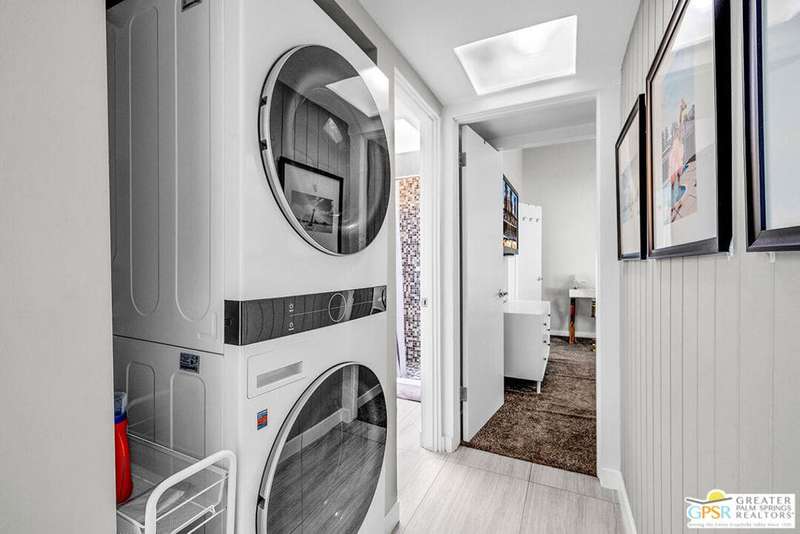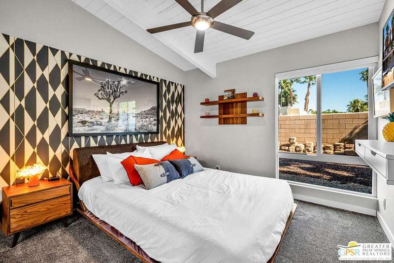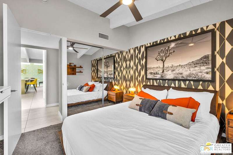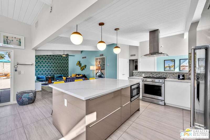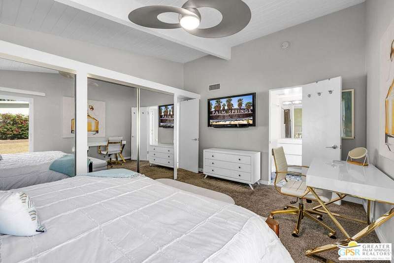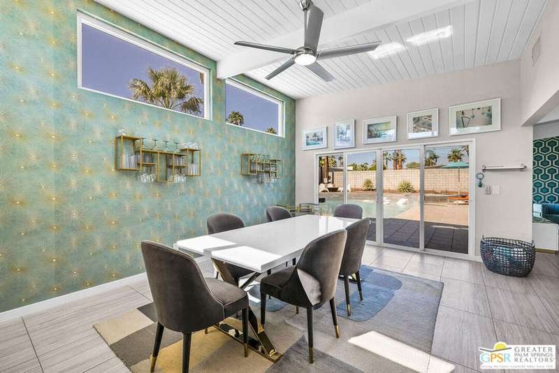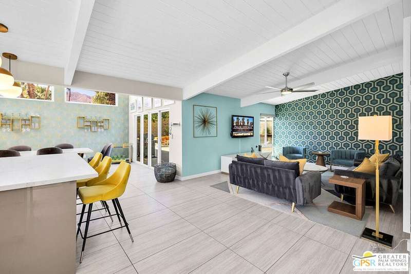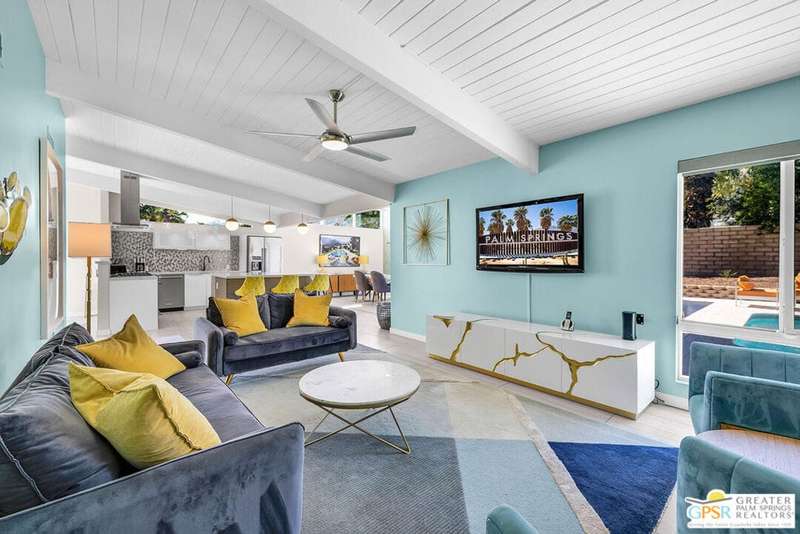 This truly exceptional midcentury modern home, located in the Racquet Club Estates in Palm Springs, was designed by famed architects Palmer and Krisel and built in 1959, by the Alexander Construction Company. This post and beam home, renovated as of 2020, offers 3 bedrooms and 2 baths, all showcasing its original tongue and groove ceilings and post and beam construction. Extra square footage was added to create a large dining area which is open to the kitchen and overlooks the pool and spa. Look up and you will love the views of the mountains through the large clerestory windows. The spacious chef's kitchen, which features a large center island with beautiful quartz counters, custom cabinetry and backsplash, as well as Kitchen-Aid stainless steel appliances, is perfect to unleash the chef in you. Step outside onto the expansive 1/4 acre lot and admire the recently renovated and re-imagined oversized pool and spa with its inviting tanning shelf. The lot is large enough for RV parking. This home is perfect as a primary residence, a part time getaway, or a vacation rental (Junior permits only). Contact agent for more info.
