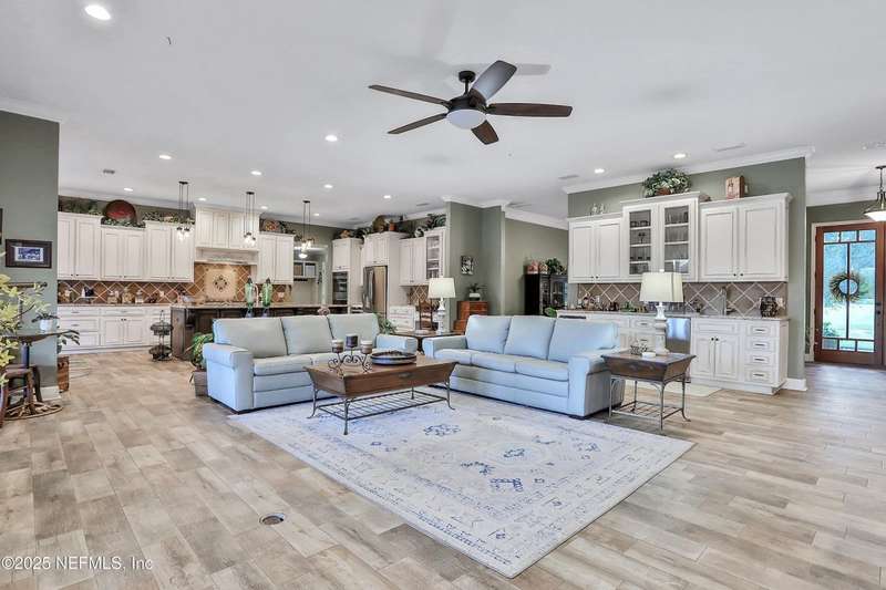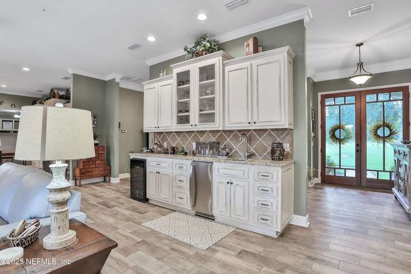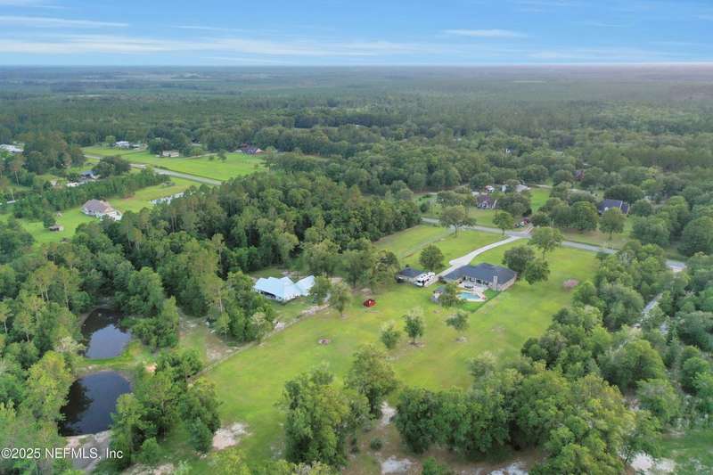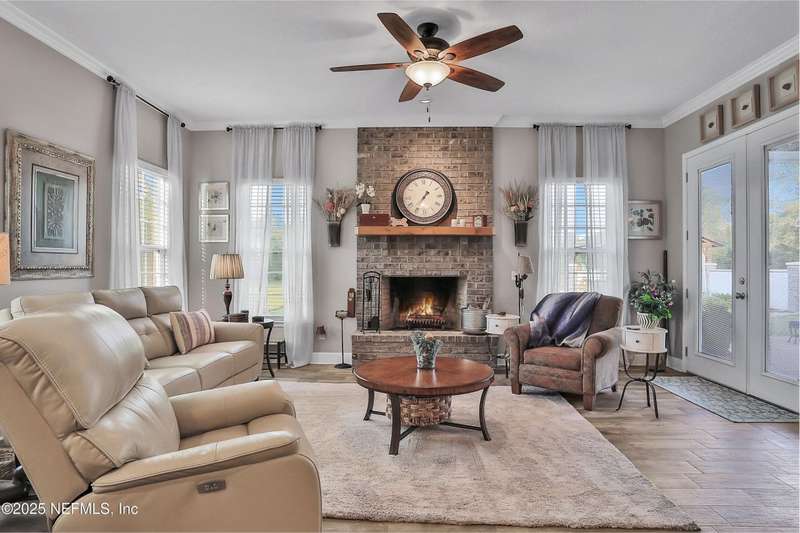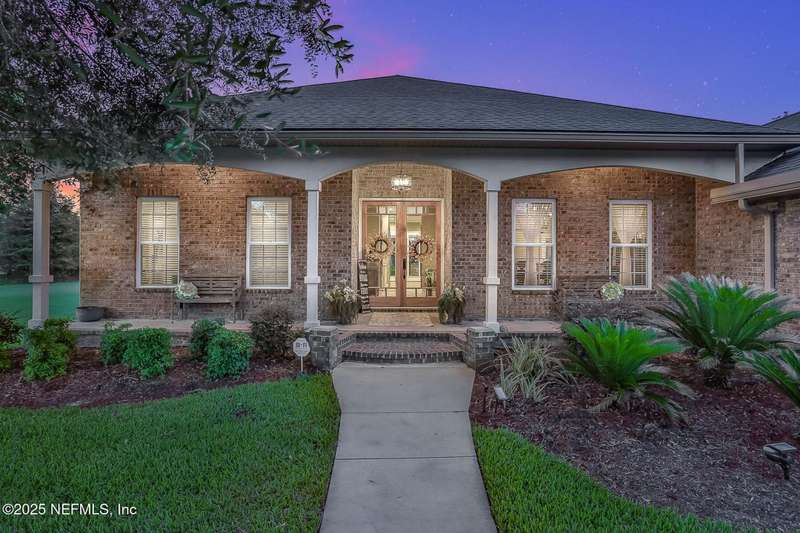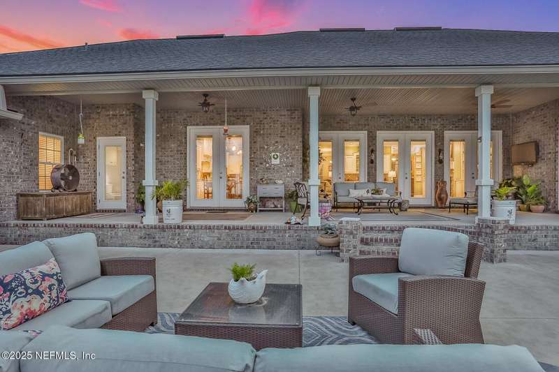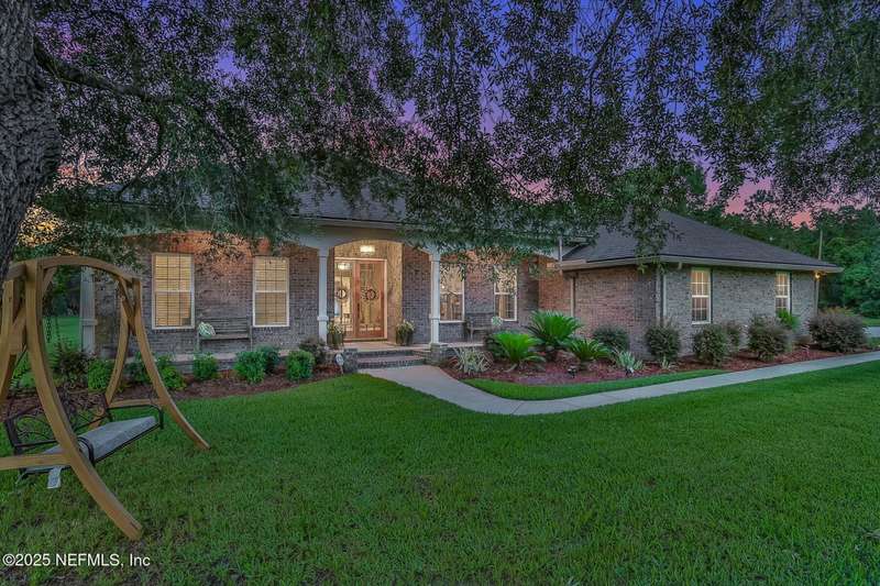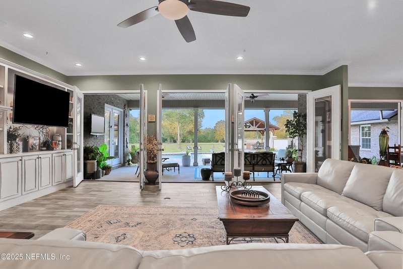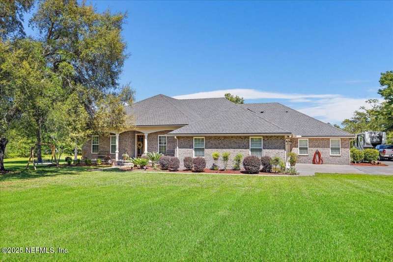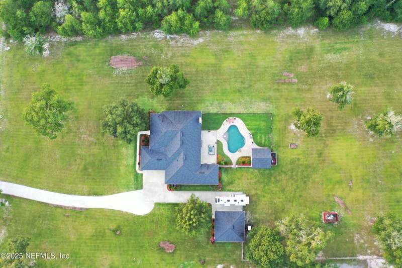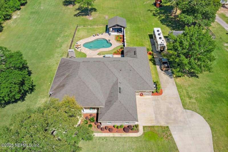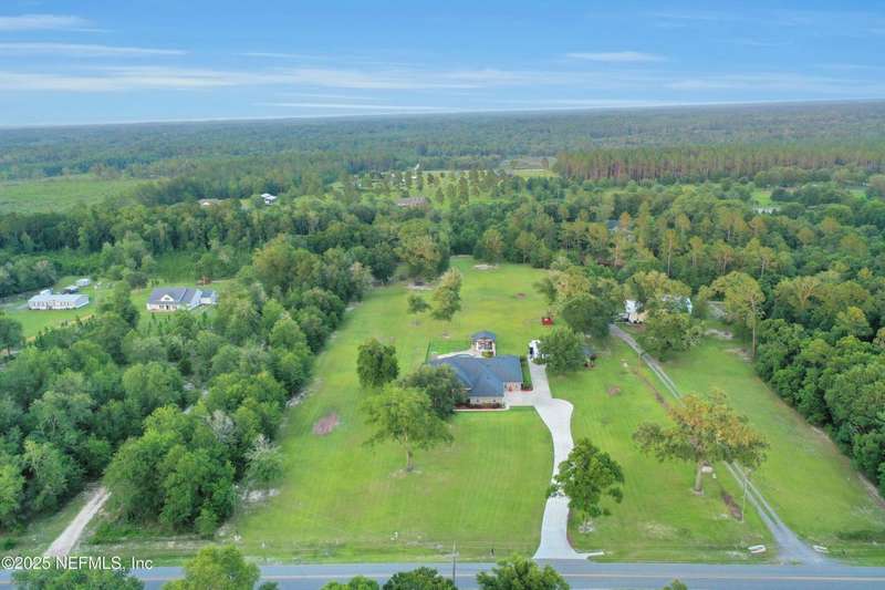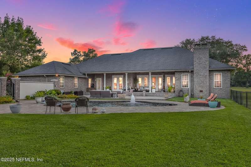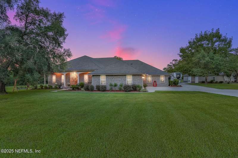 Luxurious 4BR/3.5BA pool home on 5+ acres, chef's kitchen, detached workshop. A luxurious oasis awaits on 5+ private acres with this stunning 4-bedroom, 3.5-bath custom pool home designed for both everyday comfort and high-end entertaining. Step through double mahogany doors into an open-concept living space with panoramic views of the saltwater pool, summer kitchen, and expansive property. The chef's kitchen is the heart of the home, featuring a 10-foot island with built-in cabinets, high-end appliances, stone backsplash, pull-out cabinetry, and a large walk-in pantry. Enjoy a dedicated butler's bar and seamless indoor-outdoor flow through oversized doors opening to the covered patio and pool. The spacious primary suite offers a sitting area with brick wood-burning fireplace, private patio access, and a luxurious en-suite bath with a custom walk-in closet. A split floor plan includes a private guest suite with en-suite bath and two additional bedrooms connected by a Jack-and-Jill bath. Outdoor living is elevated with a custom timber-framed summer kitchen featuring granite counters, gas burners, wood grill, refrigerator, and sink. Relax in the tranquil saltwater pool with soft lighting and water features. Additional highlights include a 5-car garage, detached insulated workshop with a mini split, cabinets, and ample space for tools, toys, or projects. Property includes a separate well and septic system ideal for homesteading or a garden. Located just minutes from I-10 for an easy commute to Jacksonville or Lake City