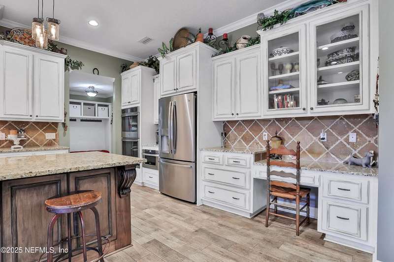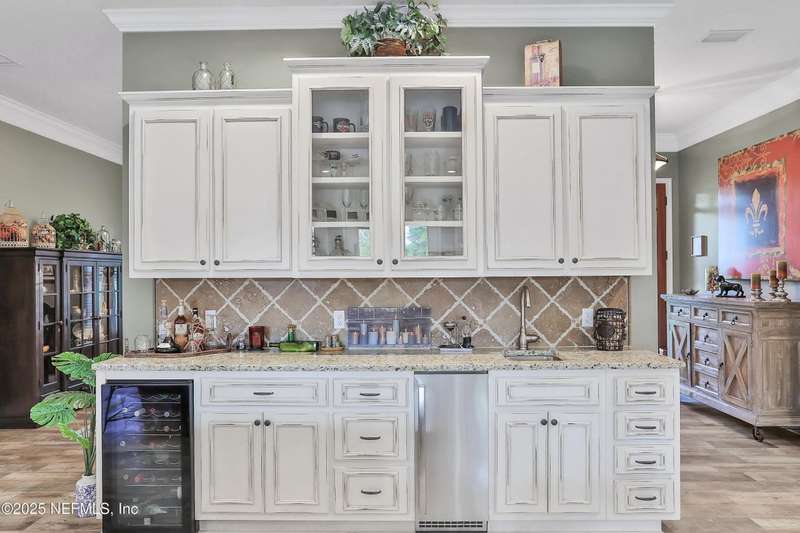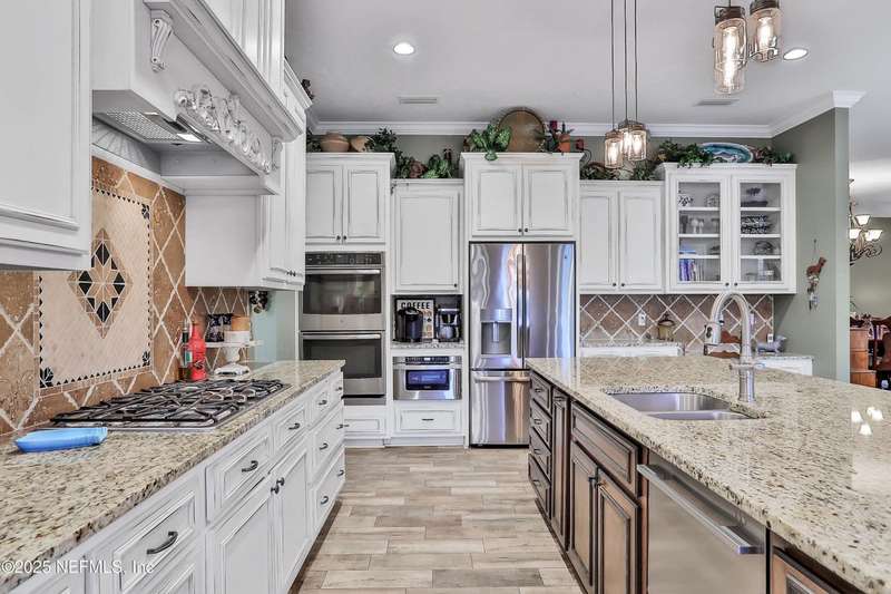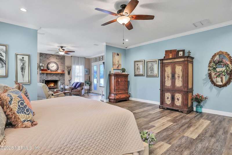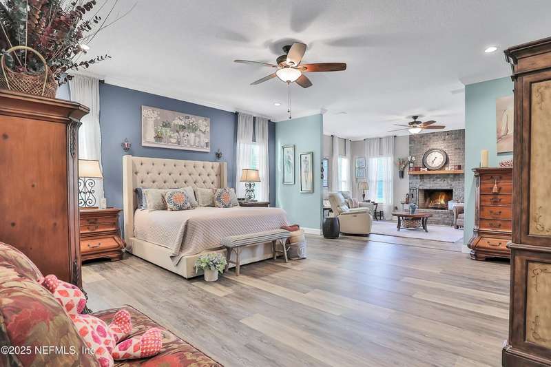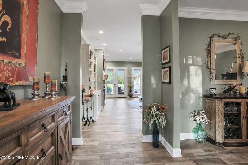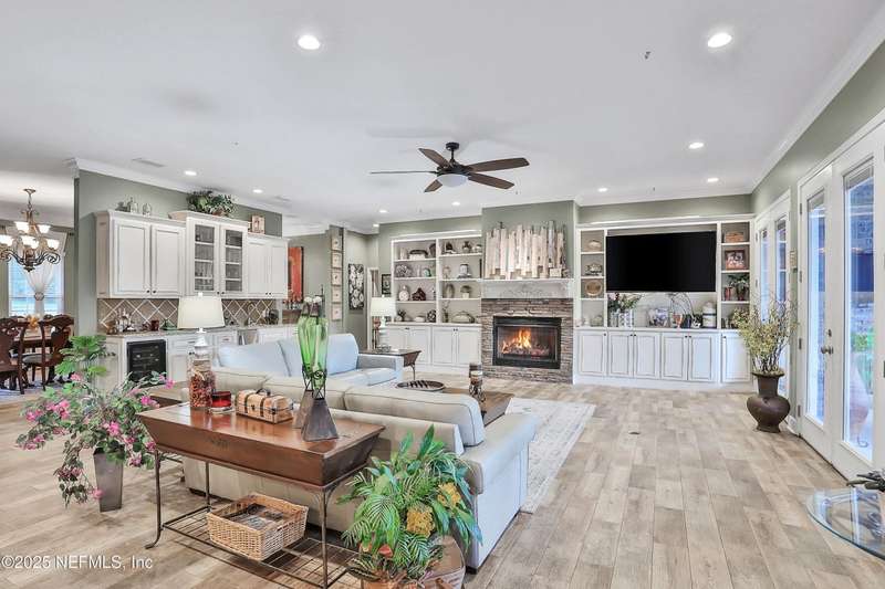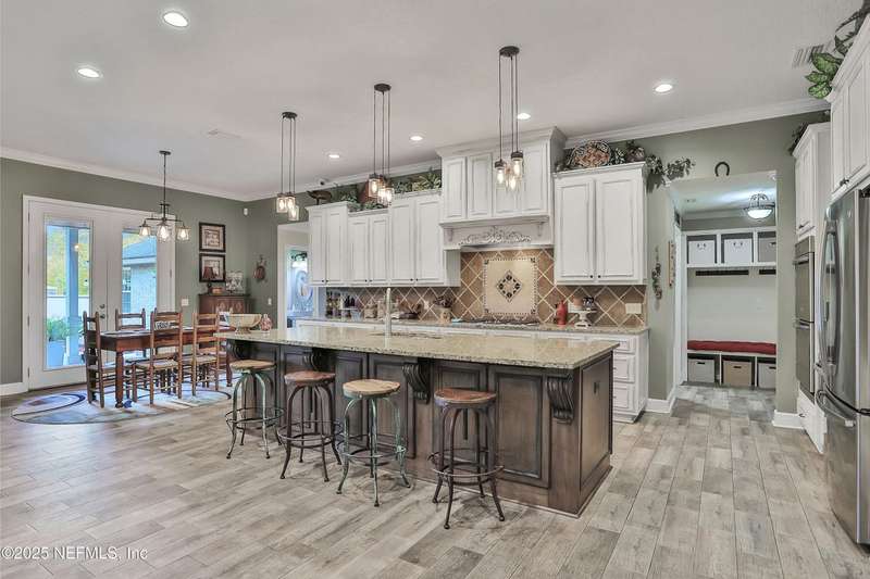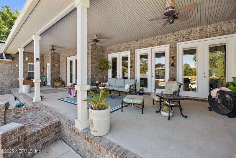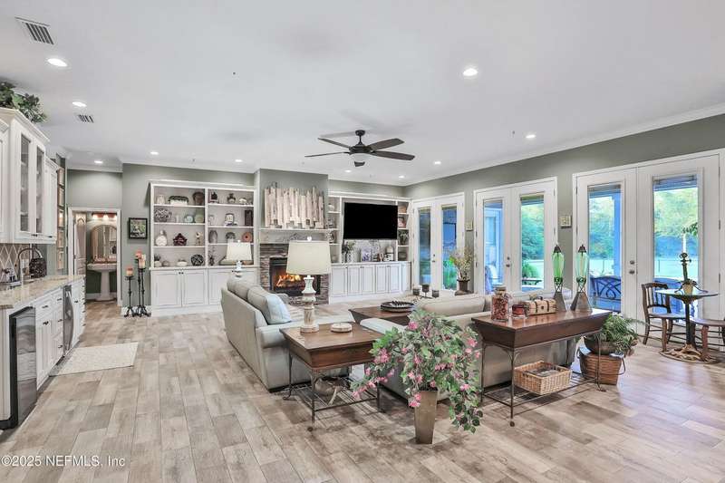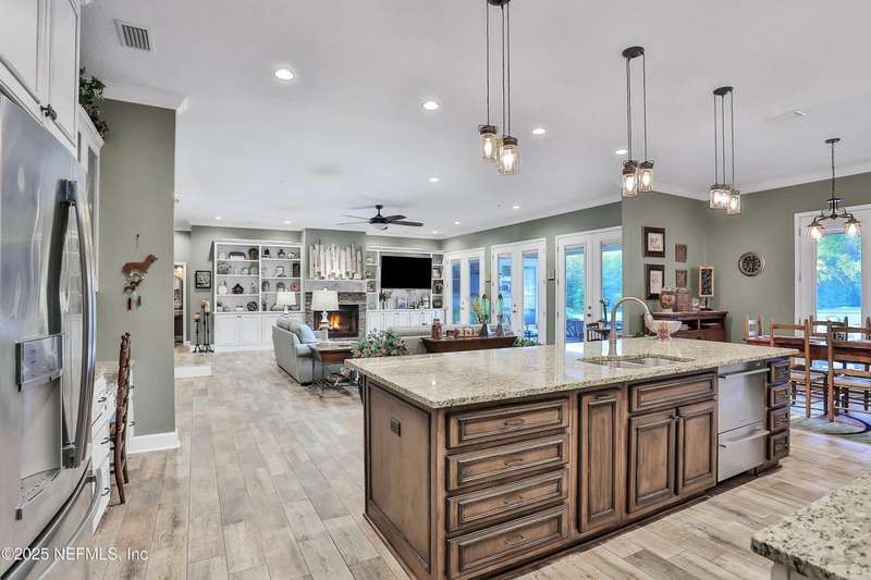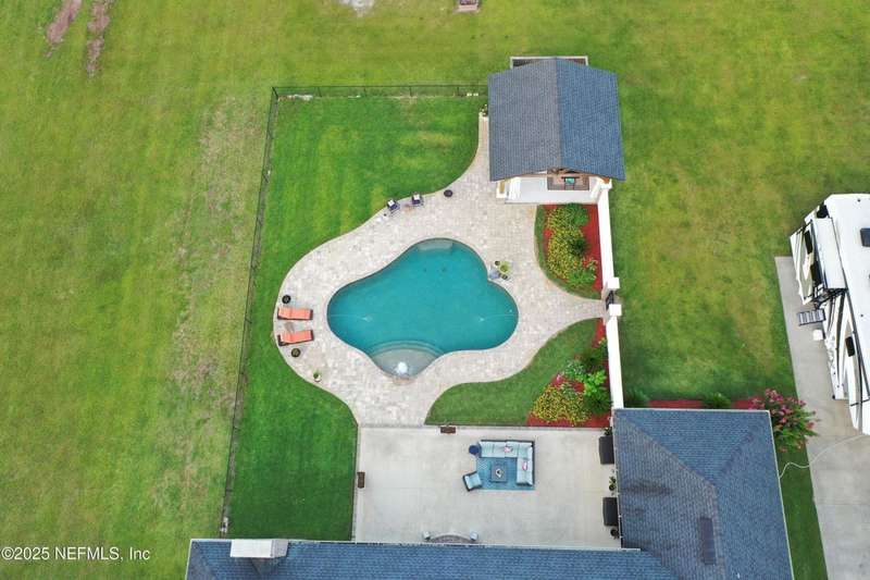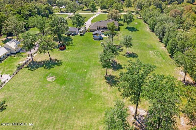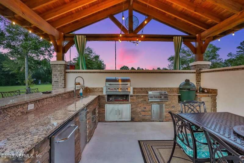 Luxurious 4BR/3.5BA pool home on 5+ acres, chef's kitchen, detached workshop. A luxurious oasis awaits on 5+ private acres with this stunning 4-bedroom, 3.5-bath custom pool home designed for both everyday comfort and high-end entertaining. Step through double mahogany doors into an open-concept living space with panoramic views of the saltwater pool, summer kitchen, and expansive property. The chef's kitchen is the heart of the home, featuring a 10-foot island with built-in cabinets, high-end appliances, stone backsplash, pull-out cabinetry, and a large walk-in pantry. Enjoy a dedicated butler's bar and seamless indoor-outdoor flow through oversized doors opening to the covered patio and pool. The spacious primary suite offers a sitting area with brick wood-burning fireplace, private patio access, and a luxurious en-suite bath with a custom walk-in closet. A split floor plan includes a private guest suite with en-suite bath and two additional bedrooms connected by a Jack-and-Jill bath. Outdoor living is elevated with a custom timber-framed summer kitchen featuring granite counters, gas burners, wood grill, refrigerator, and sink. Relax in the tranquil saltwater pool with soft lighting and water features. Additional highlights include a 5-car garage, detached insulated workshop with a mini split, cabinets, and ample space for tools, toys, or projects. Property includes a separate well and septic system ideal for homesteading or a garden. Located just minutes from I-10 for an easy commute to Jacksonville or Lake City