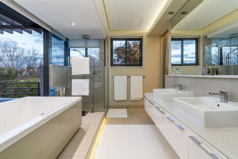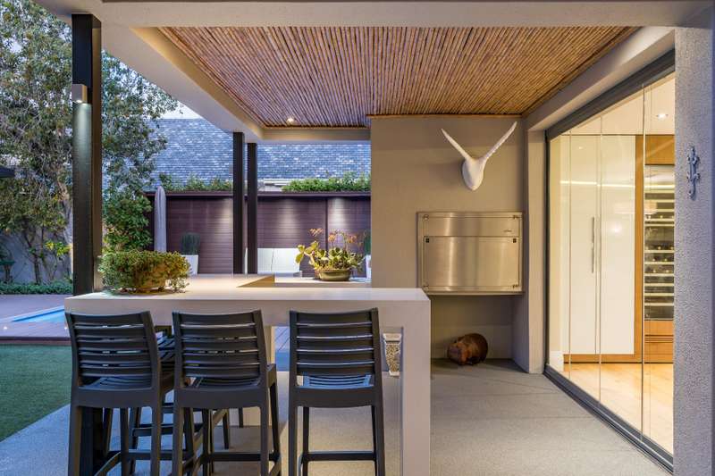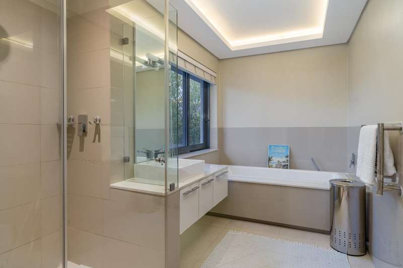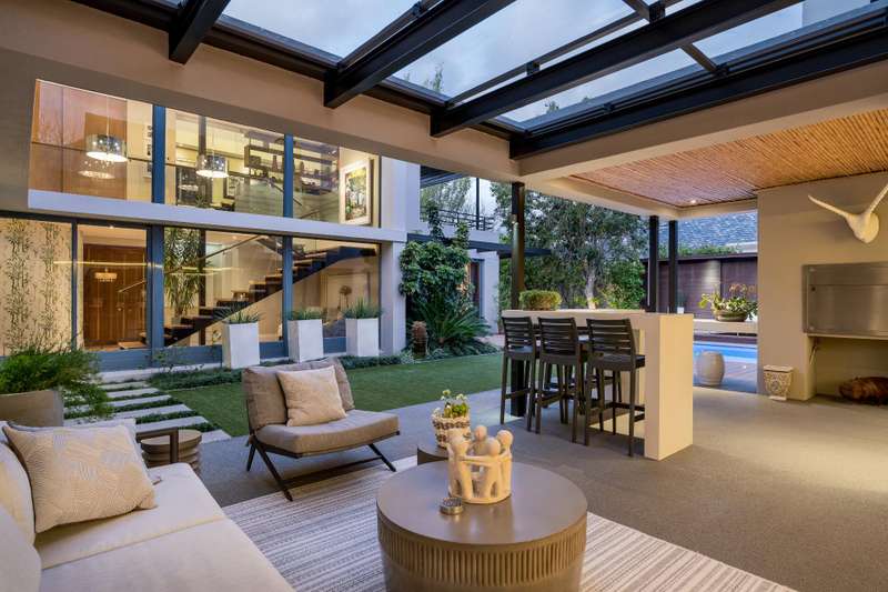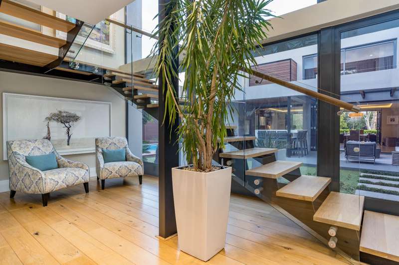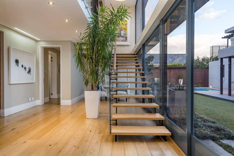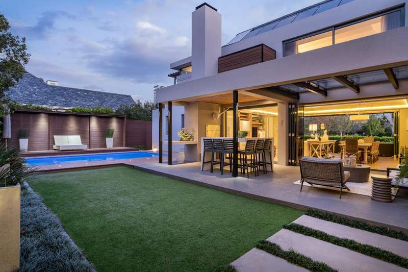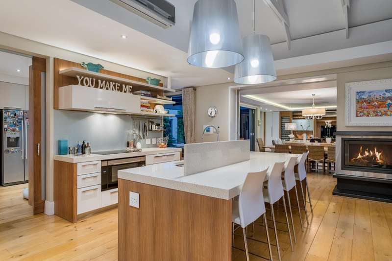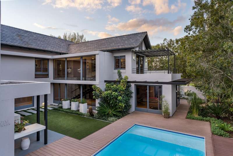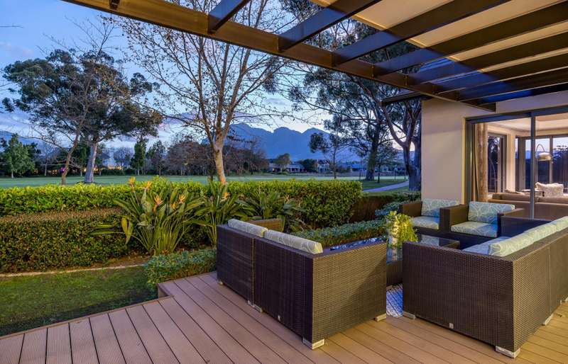 This impeccable property sets the bar for a home on Pearl Valley Golf and Country Estate. The superb location, on the 14th fairway of the award winning Jack Nicklaus Pearl Valley Golf Course, gave the architect an opportunity to work with a great stand and to match the homeowners requirements with the natural beauty of the golf course and surrounding mountain ranges with impressive results. The views from this property are magical. From the homes threshold there are views through floor to ceiling glass across the central garden area and beyond making the unique layout truly captivating on entering the property. The living spaces are crafted by a refined and highly practical floor plan with an open plan custom designed kitchen, with integrated Gaggenau appliances, that connects with a number of interior living spaces as well as offering direct access to the stunning outdoor areas including a covered patio, scenic garden, heated pool and sundecks - all that invites for amazing entertaining. Located on the ground floor there is a luxurious guest suite, for undisturbed privacy, as well as a gym / studio / library / study room, guest cloakroom, a utility room as well as a separate laundry room with a laundry shoot from the first floor, staff accommodation, a storage room and 3 garages. The first floor comprises 3 spacious bedroom suites, including the master, as well as a sleek home office sited at the entrance to the landing of the floor. The master suite is beautiful - all that one would expect from a home of this caliber. There are many added features to this meticulous home that includes energy efficient systems of heat pump underfloor heating, solar panels with an inverter battery backup system and LED lighting, engineered wooden flooring, a smart home automation system, a Hergam combustion fireplace, air conditioning throughout, direct access for a golf cart to the golf course and so much more. Custom Features Golf cart garage and car port Underfloor heating system Engineerd wooden flooring Integrated Gaggenau Fridge freezer and wine cooler Home Automation system LED lights through out home Laundry shoot in scullery Full staff accomodation with en-suite and store room Heated pool Caesar stone in kitchen Wood fireplace Portico Entrance Water tank Engineered komposit