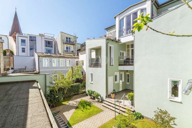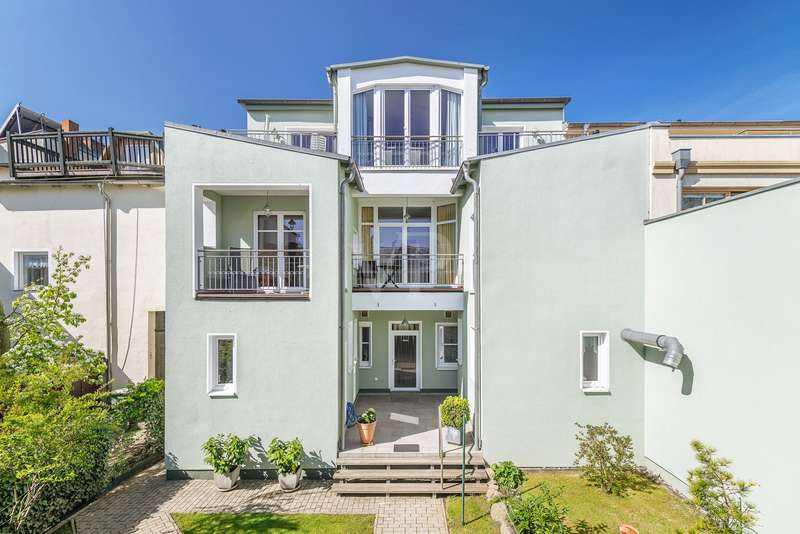 TOP INVESTMENT IN THE BALTIC SEA RESORT OF WARNEMÜNDE For sale is a well-kept residential and commercial building in top condition and top location in Warnemünde! Last modernized in 2020, the extremely well-kept, three-storey property with approx. 400 m² of usable space has two commercial units and four residential units as well as valuable ancillary property and is located in one of the most famous streets in the immediate vicinity of the church square - the economic center of Warnemünde - and the river and beach/promenade. The street - lined with trees and houses with exclusive residential and vacation use - leads along the city park to the promenade and the wide, white Baltic Sea beach. The adjoining Kirchenplatz is a diverse, highly frequented and inviting square in the center, which offers individual and fine retail spaces, high-quality restaurants and service areas. Here you will find everything your heart desires! The residential and commercial building, which was extensively renovated in 2020, offers two commercial spaces on the first floor, which have large window fronts including door systems on the street side. At 70 m² and 65 m², these commercial spaces are of a profitable size and have been let for years. The stylish and modern 2-room apartments above have ideal living areas of 50 m² to 75 m², each with fantastic balconies of different sizes. 3 of the 4 apartments are fully furnished vacation apartments with a high occupancy rate. The house has a partial basement. The renovated basement houses the house connections, the heating system and storage facilities. The property is perfectly complemented by a practical outbuilding on the beautifully landscaped, green plot, which is used for storage purposes and for storing bicycles. A TOP investment for capital investors. The location, the catchment area and the wide range of possible uses speak for themselves! The location guarantees high demand at high-yield rents. An attractive and sustainable investment is possible here! Don't miss out on this offer and contact us! We would be happy to present the property to you in full. Please understand that we can only provide the exposé of the property and further information after we have been contacted personally.