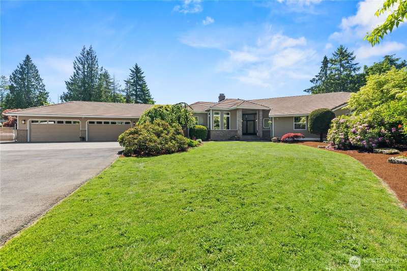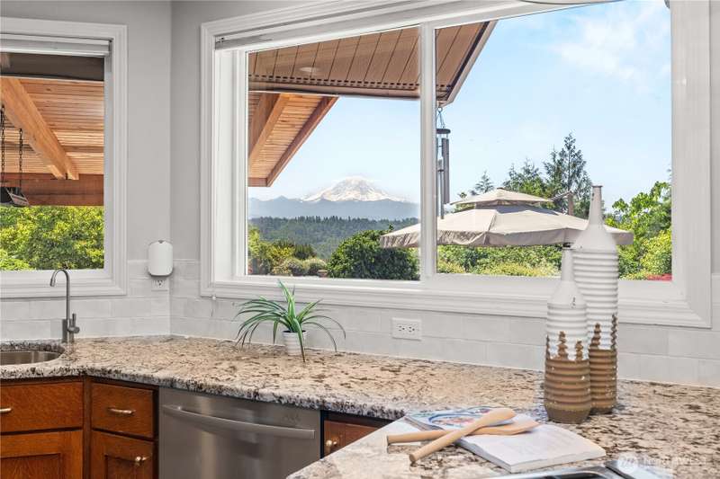 Incredible custom 4-bed, 2.75 bath home on 4.6 serene acres! From breathtaking views of Mt. Rainier to the thoughtful design, every detail has been crafted for comfort & enjoyment. The primary bedroom is a retreat of its own w/spacious 5-piece en suite & large walk-in closet. The home offers dual living spaces, giving everyone room to relax or entertain w/ease. The expansive kitchen will inspire culinary creativity w/its double ovens, wine fridge, & ample space for preparing & hosting. Don’t forget the dedicated office, ideal for WFH or pursuing your passions. Step outside to your oversized backyard w/outdoor kitchen where you can take in uninterrupted views of Mt. Rainier then head to your 36x40 detached shop! Pre Inspected. Generator. A/C