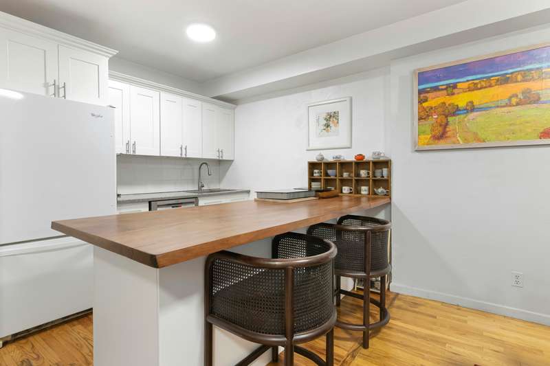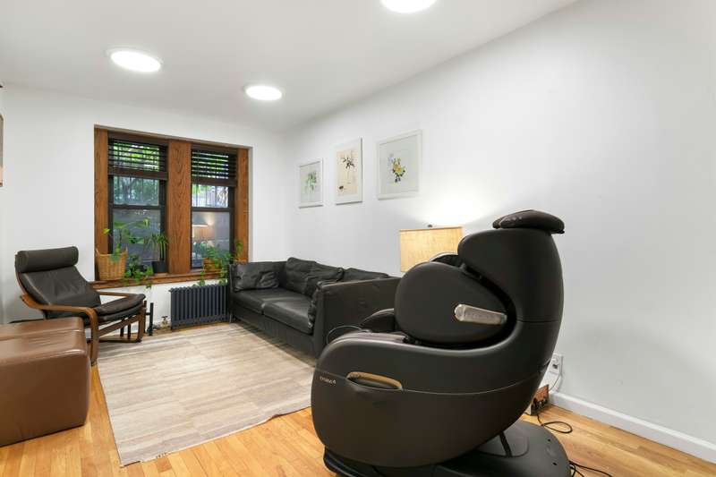 The garden level is arranged as a versatile commercial suite with direct access to a 48-foot backyard garden. It includes a bathroom, a spacious front room that works well as a reception or waiting area, and a large rear office space that opens to the garden. With parquet floors in excellent condition and a flexible layout, this level is ready to serve as professional space, a wellness studio, community hub, or recreation area.