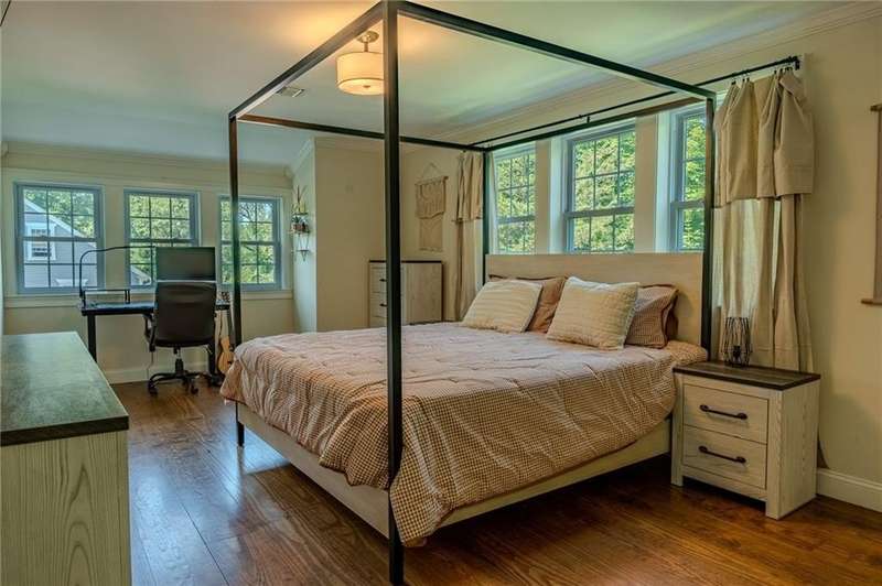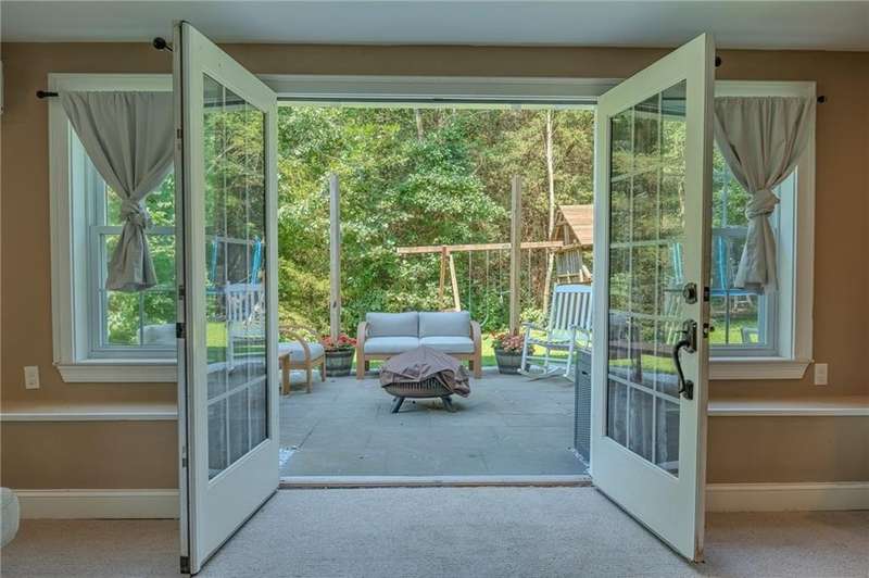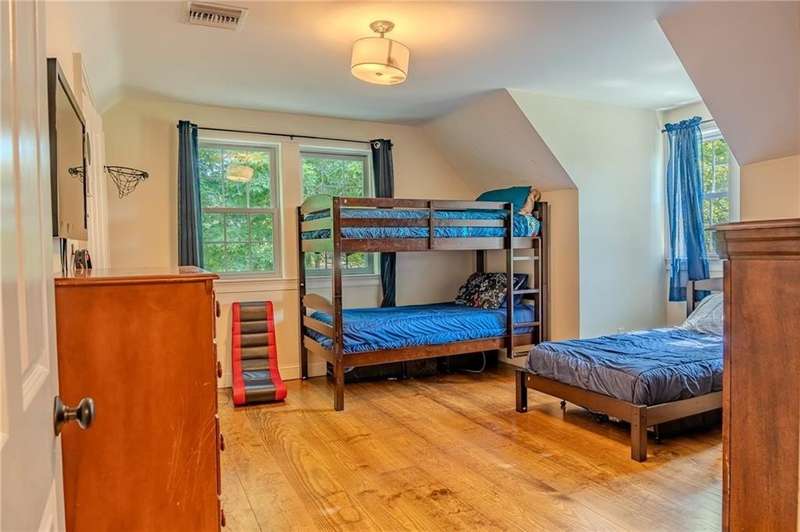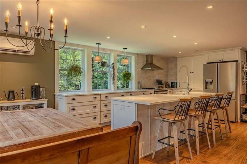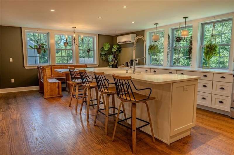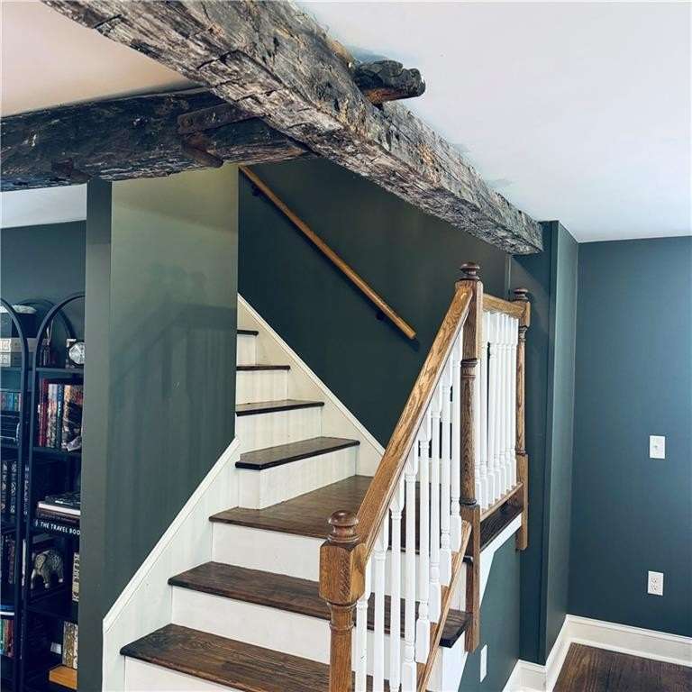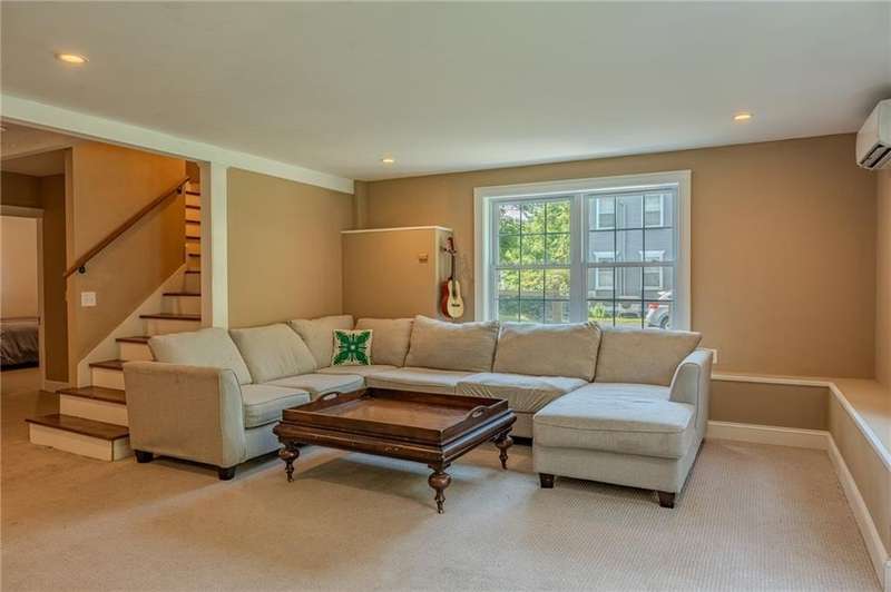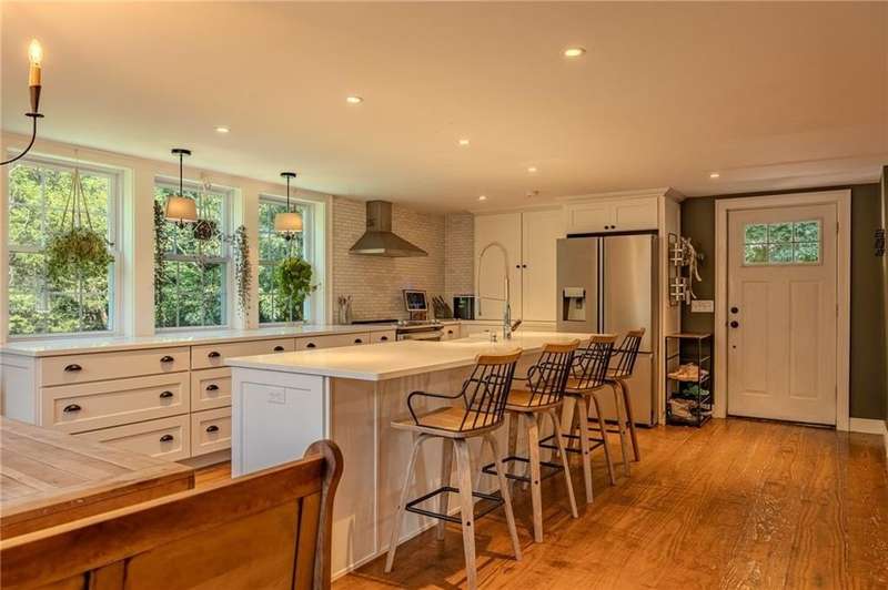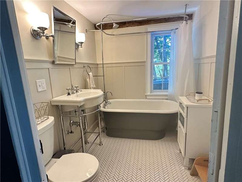 Modern Living Meets Historic Charm in Sought-After Smithfield! Once the historic Updyke Lawton home, this unique property was carefully moved and thoughtfully rebuilt into the stunning residence it is today. From the front, it presents as a classic Cape, but inside, this deceptively large property blends timeless character with modern updates in a uniquely inviting way. Featuring 4 generous bedrooms and 4 full baths, the home includes original wide plank wood flooring, exposed wood beams, and three working stone fireplaces. The modern kitchen is a stand-out, bright and airy, complete with a large center island, farmhouse sink, and adjacent dining area. The first floor also offers a formal dining room or lounge, a spacious living room, and a small dedicated office space. Upstairs, the expansive primary suite includes a private full bath and laundry area. Two additional bedrooms and another full bath complete the second floor. The finished lower level is bright and airy, offering incredible flexibility, with French doors, wall-to-wall carpeting, and walkout access to a serene patio and wooded backdrop. In addition to the large open space ? ideal for a family room, playroom, studio, gym - there is also a fourth bedroom, another full bath, and ample storage. Nestled in a serene setting conveniently located near Rt. 295, top-rated schools, recreation, shopping, and dining, this property offers historic beauty with modern functionality. Subject to seller finding suitable housing.