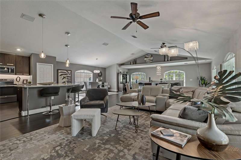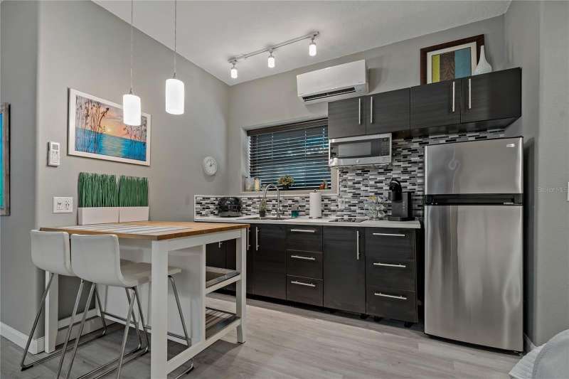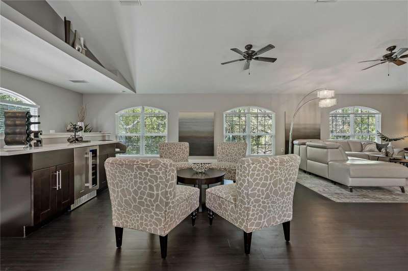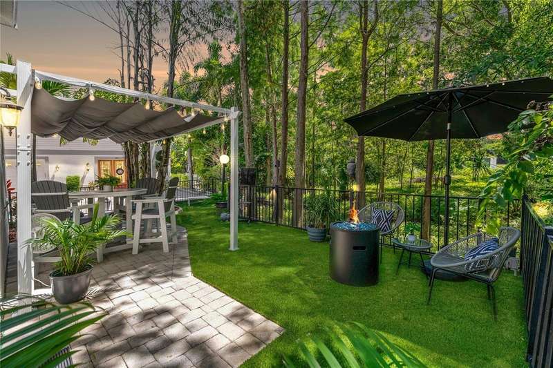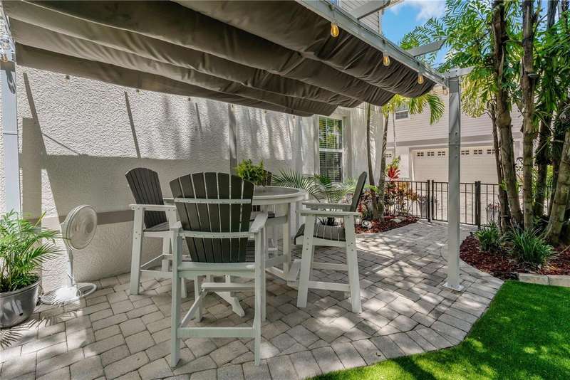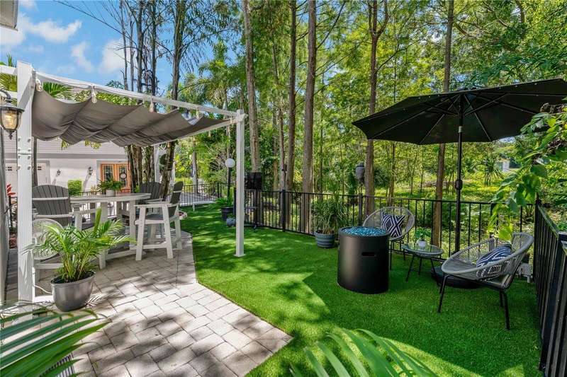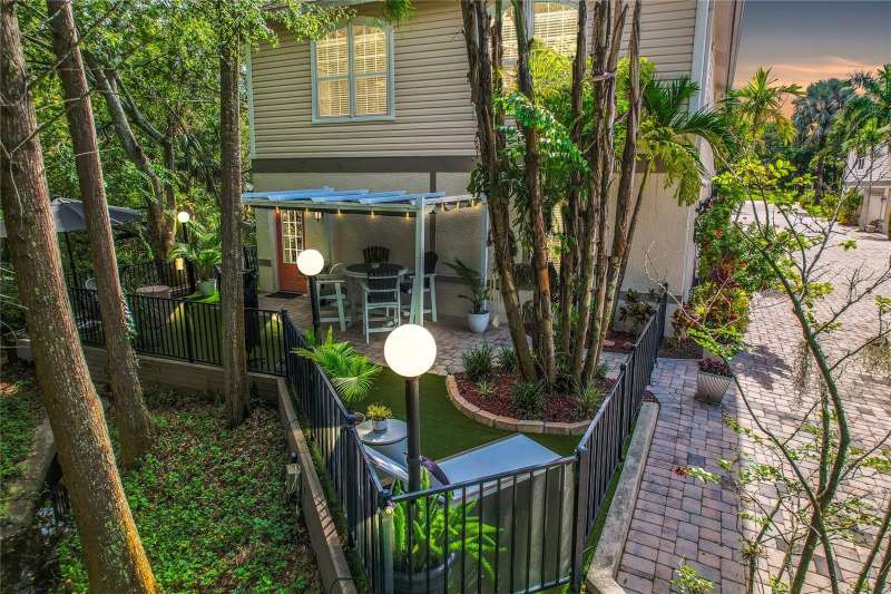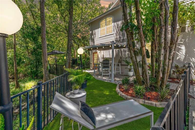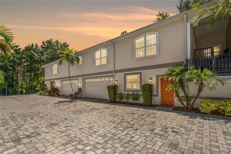 Under contract-accepting backup offers. Welcome to a one-of-a-kind residence, offered fully furnished and decorated in the charming coastal town of Ozona, Florida. This 3-bedroom, 2-bathroom, 2,974 sq. ft. (not including the ground level Mother-in-law suite) modern glam townhome delivers both style and function. All while surrounding you with the natural beauty of endless conservation views and complete backyard privacy. From the moment you arrive, you’ll notice the unique setting ~ just four townhomes on this quiet street, giving it the feel of a single-family home. Step inside, and you’ll be greeted by thoughtful upgrades and elegant design touches throughout. The expansive 4+ car garage is a dream for those who need extra storage or a workshop space, complete with built-in cabinetry. A convenient dumbwaiter carries groceries and supplies from the garage straight to the laundry room ~ no more heavy hauls up the stairs! On the lower level, you’ll find a private and spacious mother-in-law suite with its own entrance, perfect for guests or long-term stays. There’s also a downstairs office and wet bar, with direct access to your private, fully fenced backyard featuring low-maintenance and pet-friendly artificial turf. Upstairs, the heart of the home is a stunning kitchen with a custom curved island illuminated by pendant lighting. Quartz countertops, stainless steel appliances and a glass tile backsplash make it as functional as it is beautiful. The kitchen flows effortlessly into the grand great room, which offers a “treehouse” feel with abundant natural light and lush greenery views. This space is designed for entertaining, complete with an LED fireplace, custom built-in bar with wine fridge and room for both dining and lounging. The primary suite is a true retreat, with an oversized walk-in closet and a luxurious bathroom featuring a dual sink vanity, a walk-in shower and a soaking tub. From here, step out to a private upstairs patio with stairs leading down to the garage and mother-in-law suite. Notable updates include a brand-new roof and new mini split in the mother-in-law suite in 2025, ensuring peace of mind for years to come. Living here means embracing the laid-back Ozona lifestyle ~ golf cart to local restaurants, shops, live music and taverns. The 47-mile Pinellas Trail is around the corner for biking or walking and marinas are just minutes away for boating adventures. Downtown Palm Harbor, Dunedin and Tarpon Springs are all within easy reach. If you’ve been searching for a maintenance-free home that offers privacy, style and a vibrant coastal location ~ this Ozona treasure delivers it all.