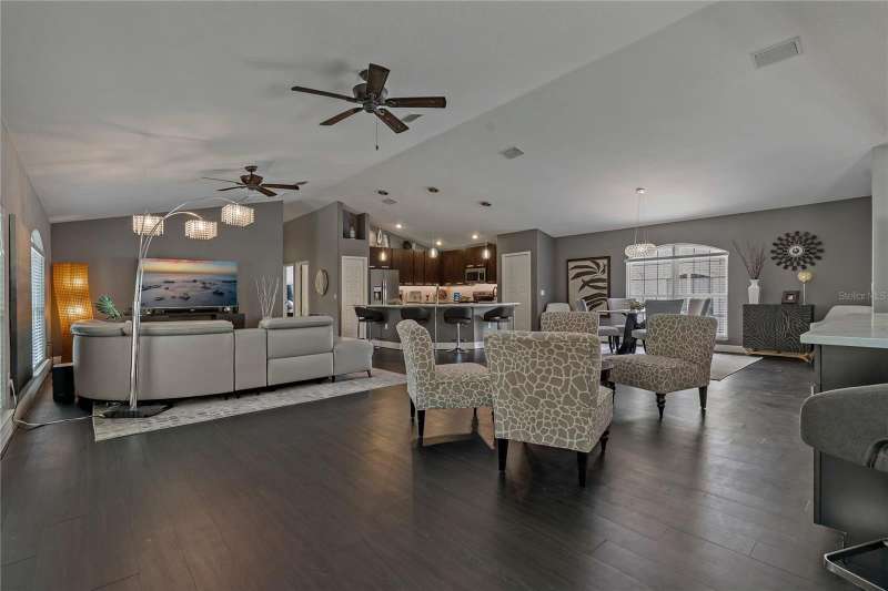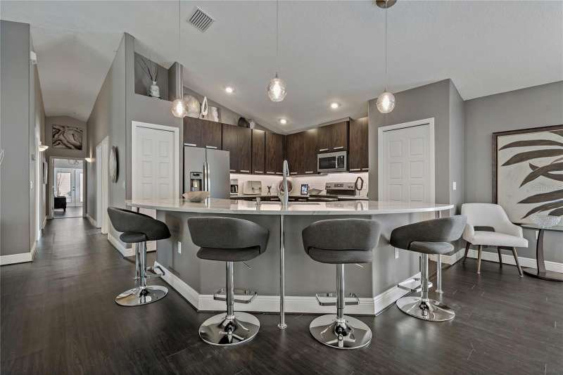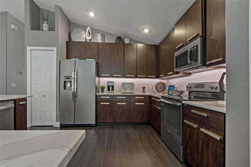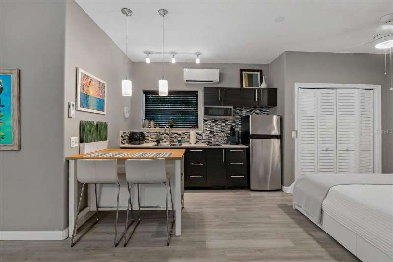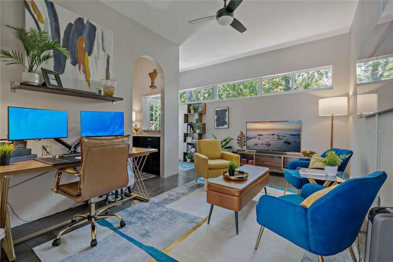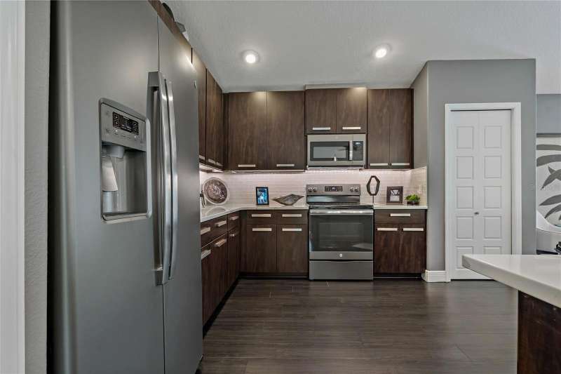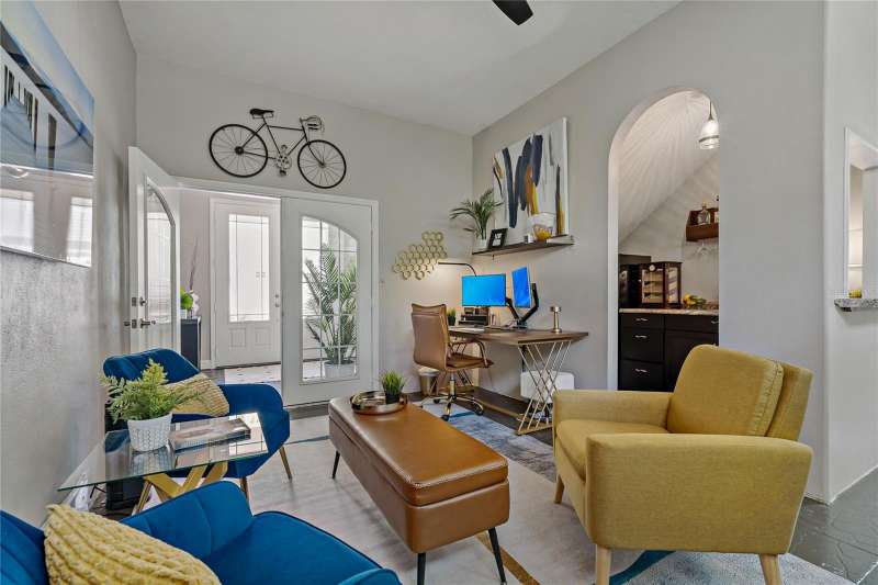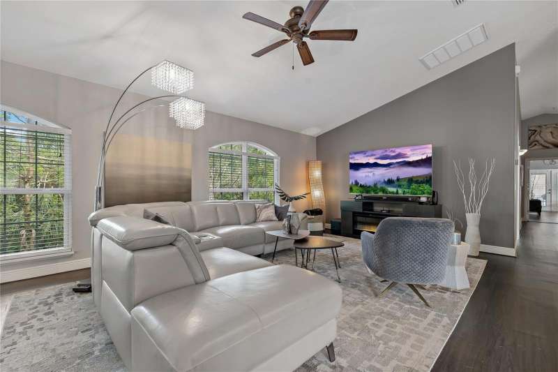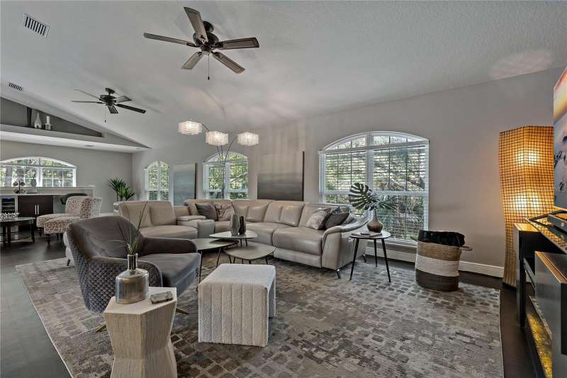 Under contract-accepting backup offers. Welcome to a one-of-a-kind residence, offered fully furnished and decorated in the charming coastal town of Ozona, Florida. This 3-bedroom, 2-bathroom, 2,974 sq. ft. (not including the ground level Mother-in-law suite) modern glam townhome delivers both style and function. All while surrounding you with the natural beauty of endless conservation views and complete backyard privacy. From the moment you arrive, you’ll notice the unique setting ~ just four townhomes on this quiet street, giving it the feel of a single-family home. Step inside, and you’ll be greeted by thoughtful upgrades and elegant design touches throughout. The expansive 4+ car garage is a dream for those who need extra storage or a workshop space, complete with built-in cabinetry. A convenient dumbwaiter carries groceries and supplies from the garage straight to the laundry room ~ no more heavy hauls up the stairs! On the lower level, you’ll find a private and spacious mother-in-law suite with its own entrance, perfect for guests or long-term stays. There’s also a downstairs office and wet bar, with direct access to your private, fully fenced backyard featuring low-maintenance and pet-friendly artificial turf. Upstairs, the heart of the home is a stunning kitchen with a custom curved island illuminated by pendant lighting. Quartz countertops, stainless steel appliances and a glass tile backsplash make it as functional as it is beautiful. The kitchen flows effortlessly into the grand great room, which offers a “treehouse” feel with abundant natural light and lush greenery views. This space is designed for entertaining, complete with an LED fireplace, custom built-in bar with wine fridge and room for both dining and lounging. The primary suite is a true retreat, with an oversized walk-in closet and a luxurious bathroom featuring a dual sink vanity, a walk-in shower and a soaking tub. From here, step out to a private upstairs patio with stairs leading down to the garage and mother-in-law suite. Notable updates include a brand-new roof and new mini split in the mother-in-law suite in 2025, ensuring peace of mind for years to come. Living here means embracing the laid-back Ozona lifestyle ~ golf cart to local restaurants, shops, live music and taverns. The 47-mile Pinellas Trail is around the corner for biking or walking and marinas are just minutes away for boating adventures. Downtown Palm Harbor, Dunedin and Tarpon Springs are all within easy reach. If you’ve been searching for a maintenance-free home that offers privacy, style and a vibrant coastal location ~ this Ozona treasure delivers it all.