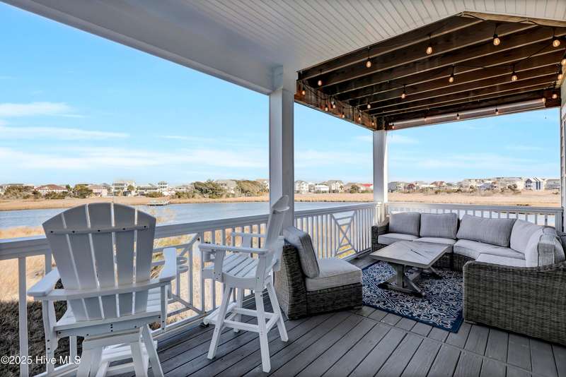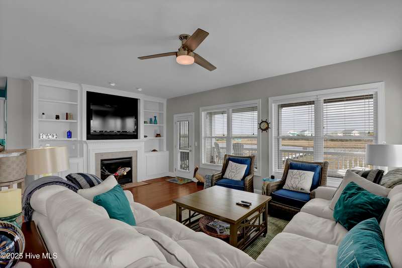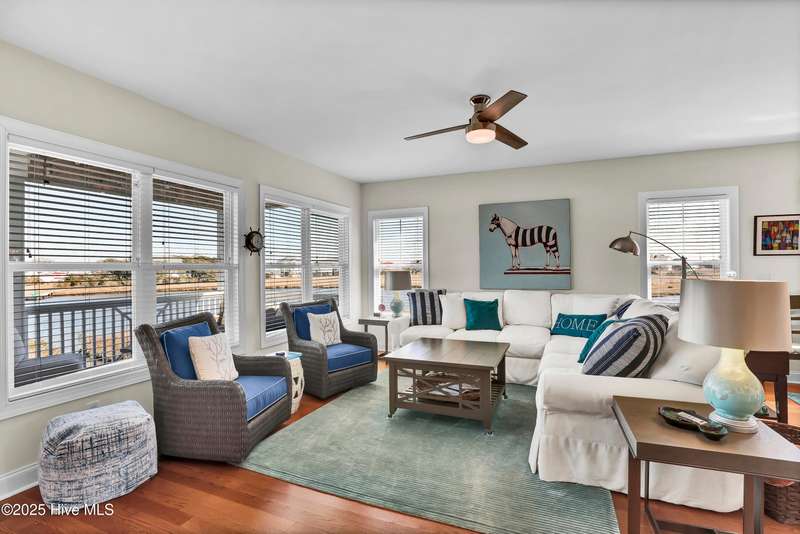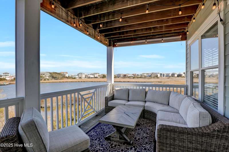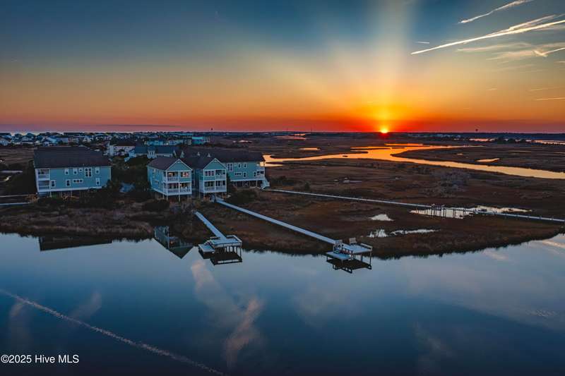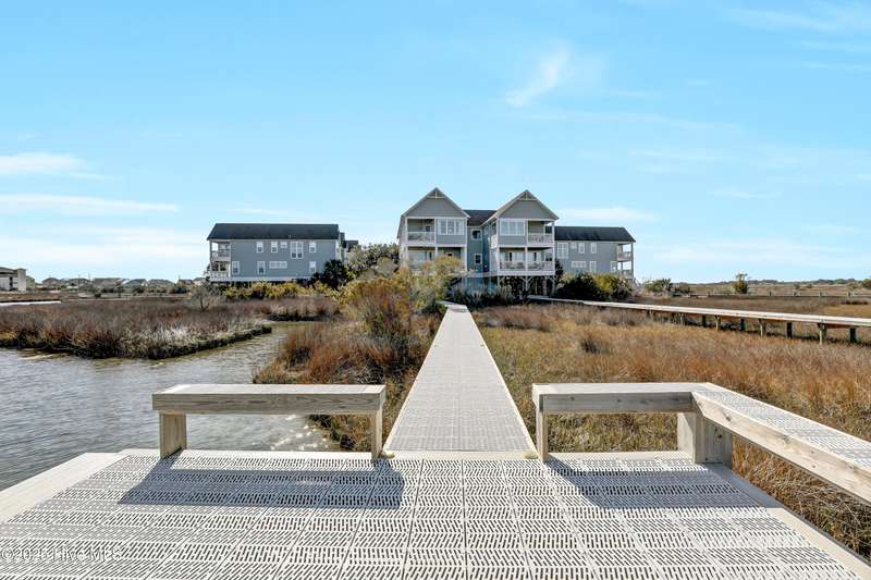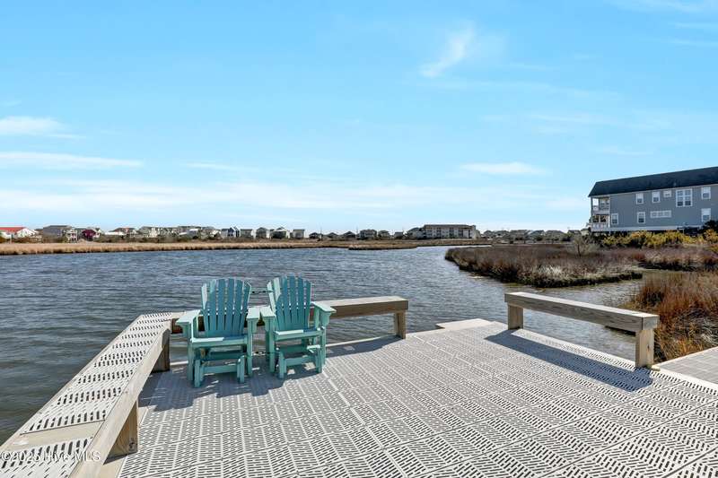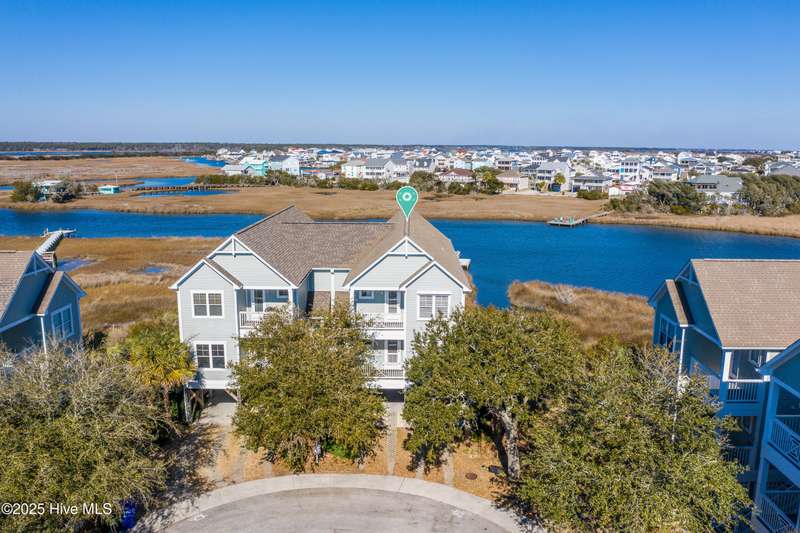 Stunning 4-bedroom, 4-bathroom Sound side waterfront townhome with 2,656 square feet of open living space. Standout features of this home are the incredible views from multiple decks and every room throughout the home, along with the expansive private dock with a spacious sun deck ideal for enjoying sunsets & hosting gatherings by the water. Inside, you'll find luxurious details such as custom living area built-in cabinetry installed in March 2025, 9-ft ceilings, wood flooring, a gas fireplace, and large windows that enhance the natural light. The gourmet kitchen area features granite countertops & bar with seating, stainless steel appliances, and a pantry. The living room and dining room are blended into one, and a large table makes it the perfect place to host. The primary suite is a true sanctuary, with amazing water views from inside & the private balcony. With a walk-in closet and an updated bath complete with a stand-alone tub, tiled shower, and dual vanity, this room is truly exquisite. The additional two upstairs bedrooms include an en-suite bathroom, and the first-floor bedroom/office offers additional versatility.Designed with coastal living in mind, there are new custom hurricane shutters providing peace of mind and protection throughout the year. The home also includes an outdoor shower, and access to a community pool/clubhouse with more fantastic marsh and water views. Located in a cul-de-sac setting, the property is close to public beach accesses, local dining, and shopping, which offers both privacy and convenience. Sold furnished with some exceptions. No short-term rentals allowed.