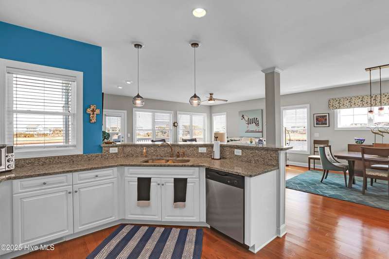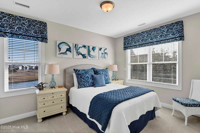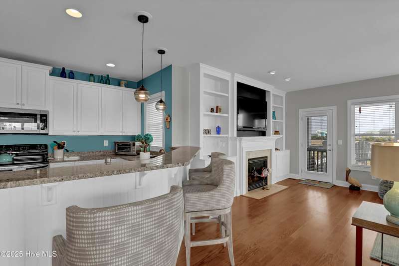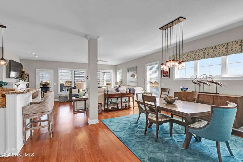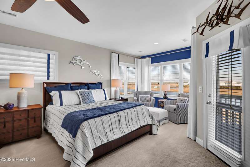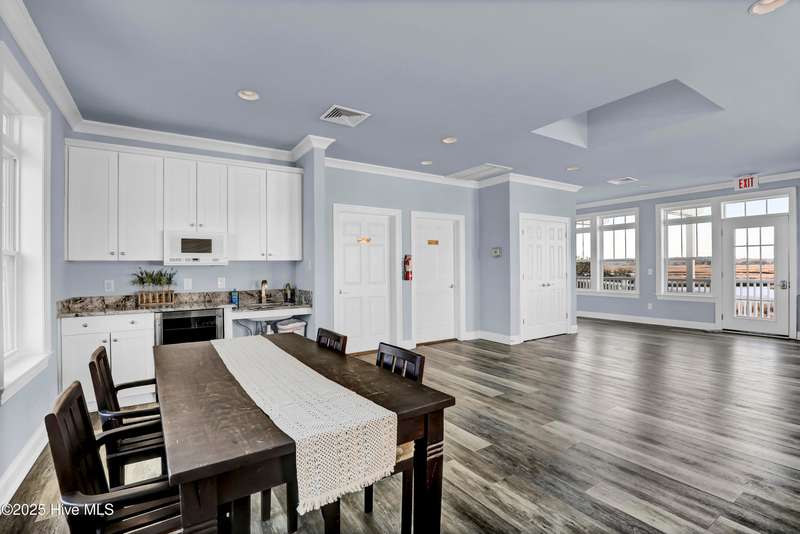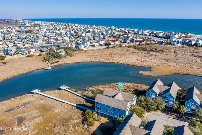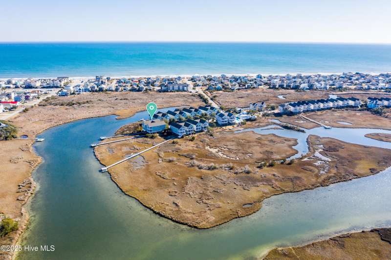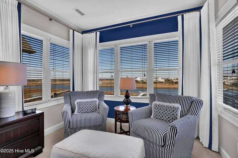 Stunning 4-bedroom, 4-bathroom Sound side waterfront townhome with 2,656 square feet of open living space. Standout features of this home are the incredible views from multiple decks and every room throughout the home, along with the expansive private dock with a spacious sun deck ideal for enjoying sunsets & hosting gatherings by the water. Inside, you'll find luxurious details such as custom living area built-in cabinetry installed in March 2025, 9-ft ceilings, wood flooring, a gas fireplace, and large windows that enhance the natural light. The gourmet kitchen area features granite countertops & bar with seating, stainless steel appliances, and a pantry. The living room and dining room are blended into one, and a large table makes it the perfect place to host. The primary suite is a true sanctuary, with amazing water views from inside & the private balcony. With a walk-in closet and an updated bath complete with a stand-alone tub, tiled shower, and dual vanity, this room is truly exquisite. The additional two upstairs bedrooms include an en-suite bathroom, and the first-floor bedroom/office offers additional versatility.Designed with coastal living in mind, there are new custom hurricane shutters providing peace of mind and protection throughout the year. The home also includes an outdoor shower, and access to a community pool/clubhouse with more fantastic marsh and water views. Located in a cul-de-sac setting, the property is close to public beach accesses, local dining, and shopping, which offers both privacy and convenience. Sold furnished with some exceptions. No short-term rentals allowed.