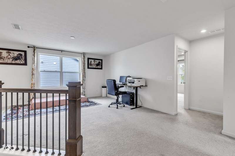 Living in Fishers is a dream. This spacious 4BR/3BA is located in a most desirable Hunters Run subdivision. Main level is a open floor plan with a Den and Fireplace. Small computer/office space next to kitchen with a storage cabinets and a window for beautiful backyard yard view. Kitchen is lavished with quartz counters, gas cook-top, center island, luxury built in appliances with a over-sized pantry and a formal dining room. Upper level is beautifully designed with a loft for extra living space. Primary suite has a tiled shower, granite counters/double sinks and walk in closet. Secondary bedrooms all have walk in closets. Extended two car garage for extra storage. Hunter run has great community amenities which included Playground, Tennis court and Pool. This House is located in HSE School District and has easy access to I-69, shopping, dining, cyntheanne park, ruoff music center and much more.