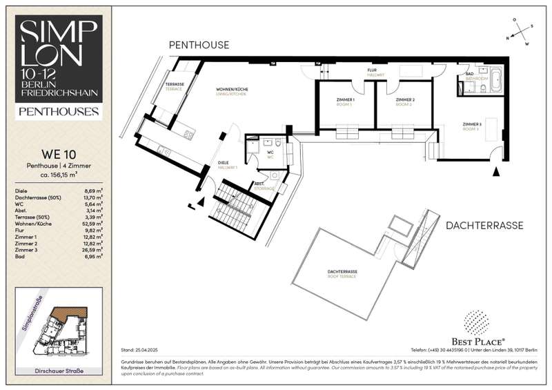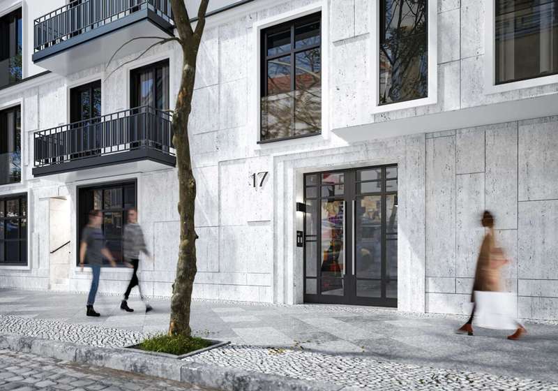 With Simplon 10-12, fashion designer Patrick Hellmann is bringing the concept of branded residences to Berlin. The striking corner building from the Wilhelminian era is being given a new look with sophisticated façades, elegant windows and fine details. Townhouses are being created on the first floor. There are apartments and studios above. Almost every apartment has an outdoor area, in some cases several. To top it all off, the top floor will be completely rebuilt for 4 penthouses including a roof terrace. There is a choice of three furnishing lines, which are presented in the three show apartments. On the top floor, the completely rebuilt top floor, you can enjoy the view over Friedrichshain from the roof terrace, receive guests in the open-plan living, cooking and dining area and greet the new day with the morning sun on the terrace. The master bedroom with en suite bathroom and two further rooms round off the first-class ambience.