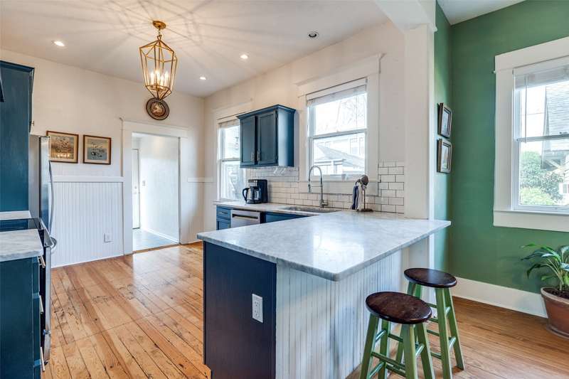 THIS HOME CAN BE LEASED FULLY FURNISHED - OR UNFURNISHED. Beautiful Craftsman home located in the highly coveted Historic Munger Place. Original hardwoods throughout the house. Gorgeous chandeliers hang in the dining room & kitchen. The remodeled kitchen boasts marble countertops, Frigidaire Induction range, breakfast bar, pantry & stunning blue cabinetry. There are two spacious bedrooms - each bedroom has a Queen size bed. The primary bedroom features an attached bathroom and office. The office has lots of windows and natural light. The utility room has built-in cabinets and a full-size washer and dryer. The backyard is a peaceful retreat with a large deck and plenty of space to enjoy the outdoors. The owner maintains the landscaping. Located minutes from Downtown, White Rock Lake, Lakewood Center, Deep Elm, Santa Fe Trail, Restaurants and Schools. NOTE: The rental price is the same for furnished and unfurnished leases.